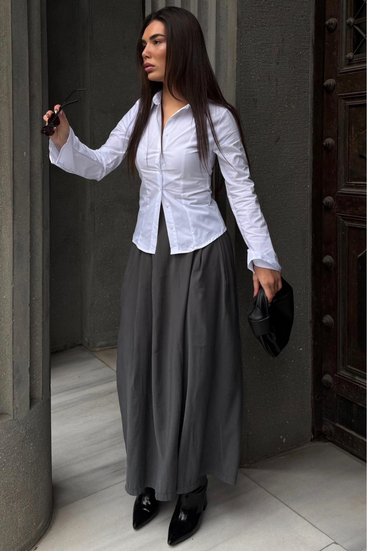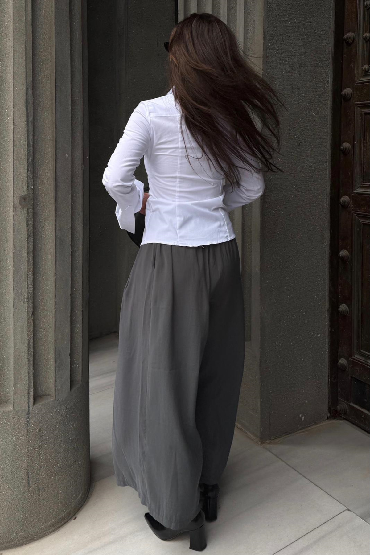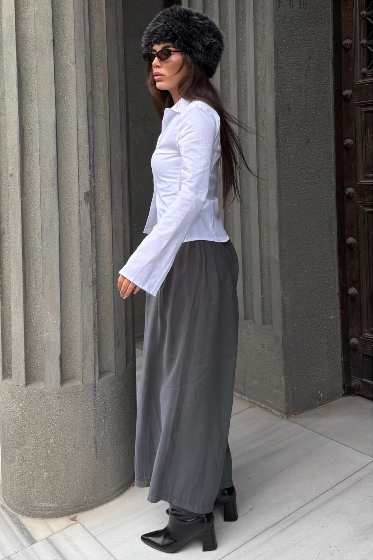 Antrasit Rahat Kesim Pileli Cepli Kadın Etek Pantolon MG2693, tesettür modasının en sevilen parçalarından. Vücut hatlarını gizleyen rahat kesimi, yumuşak dokusu ve özenli dikişleriyle konfor ve şıklığı bir arada sunar. Düğün, nişan, bayram veya günlük kullanım için ideal. Madmext güvencesiyle sunulmaktadır.