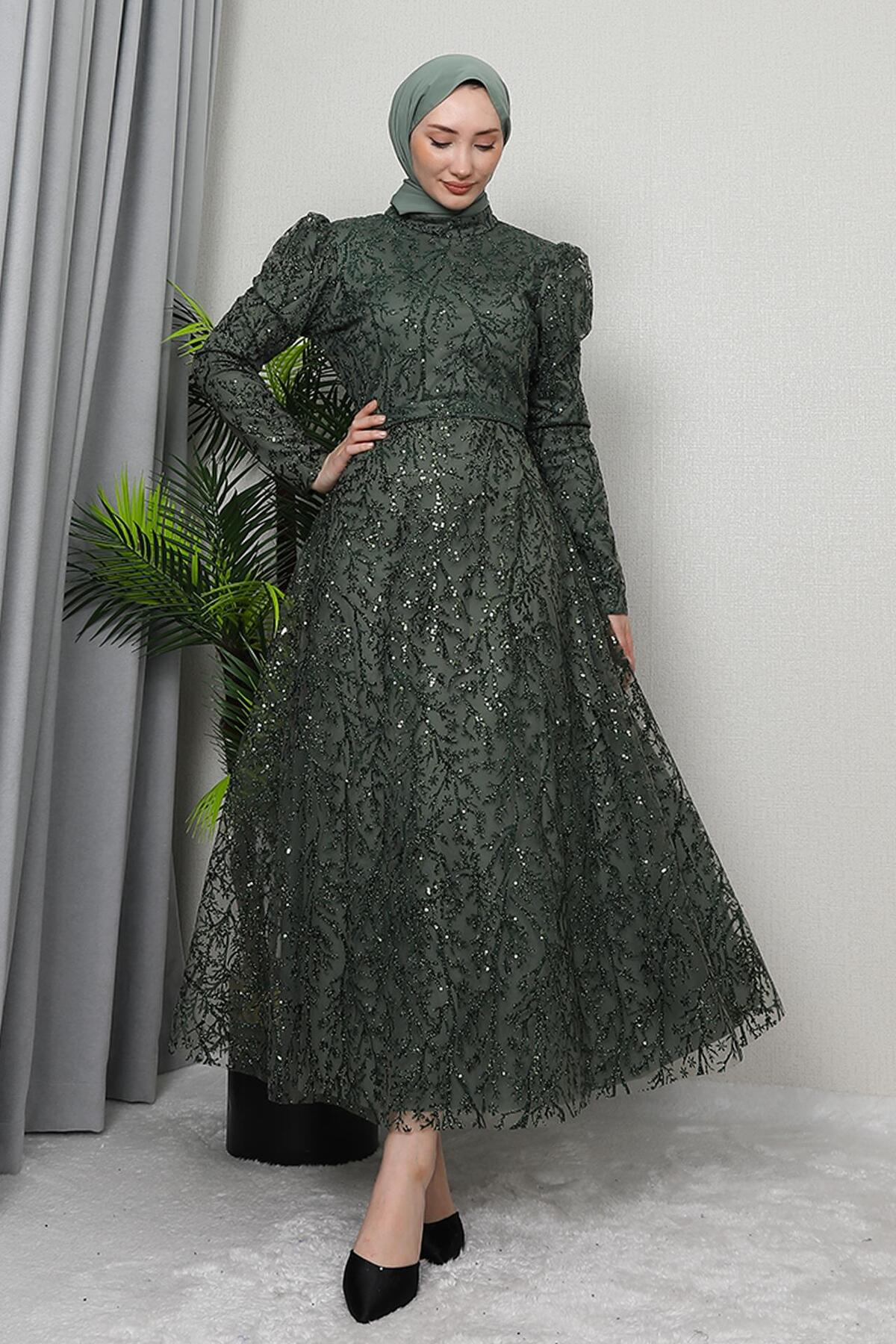 Ayperi Tesettür Abiye Haki, özel dikim teknikleriyle üretilmiş, kalitesini her detayda hissedebileceğiniz bir tasarım. Nefes alan kumaş yapısıyla mevsim geçişlerinde ideal bir tercih. Zarif silueti ve ince işçiliğiyle fark yaratacaksınız. giz astore güvencesiyle sunulmaktadır.