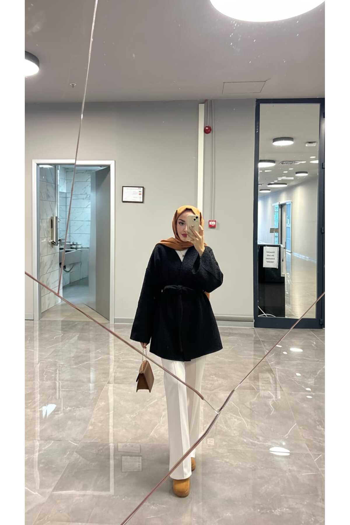 bağlama detaylı rahat kalıp kaşmir hırka, zarif tasarımı ve kaliteli kumaşıyla günlük ve özel günlerinizde şıklığınızı tamamlayacak bir parça. Rahat kalıbı sayesinde gün boyu konforlu bir kullanım sunar. Tesettüre uygun kesimi ile her yaştan kadının tercih edebileceği şık bir model. Bluezade güvencesiyle sunulmaktadır.