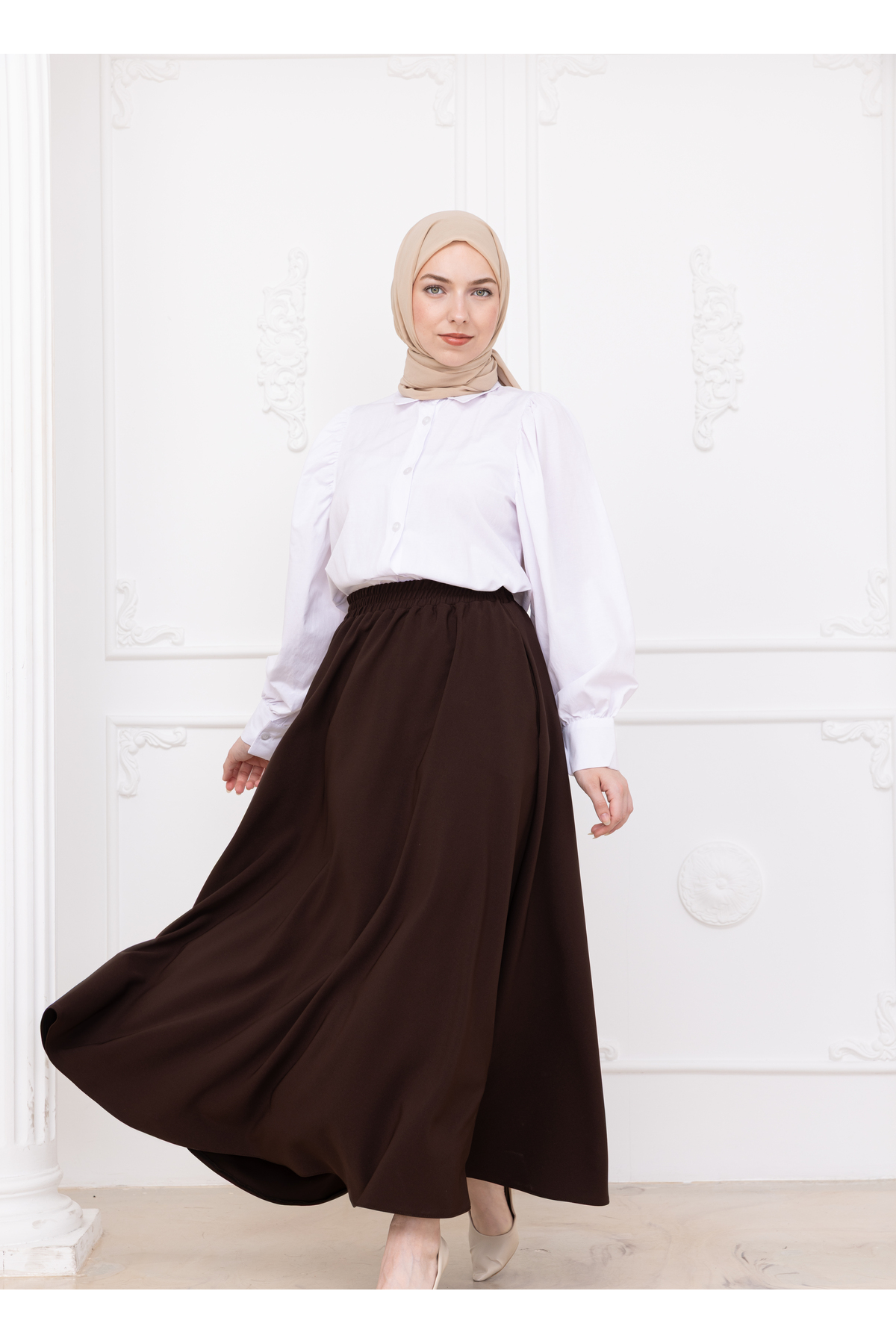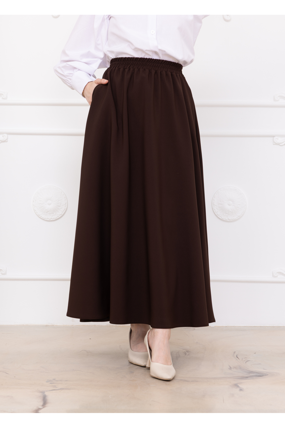 BELİ LASTİKLİ CEPLİ KAHVERENGİ DOUBLE ETEK, modern çizgileri ve şık detaylarıyla gardırobunuzun vazgeçilmezi olacak. Mevsimin en trend renklerinde sunulan bu ürün, farklı kombinlerle kullanılabilir. Kaliteli dikimi ve dayanıklı kumaşıyla uzun süre yeni görünümünü korur. Arinrada kalite güvencesiyle sizlere sunulmaktadır.