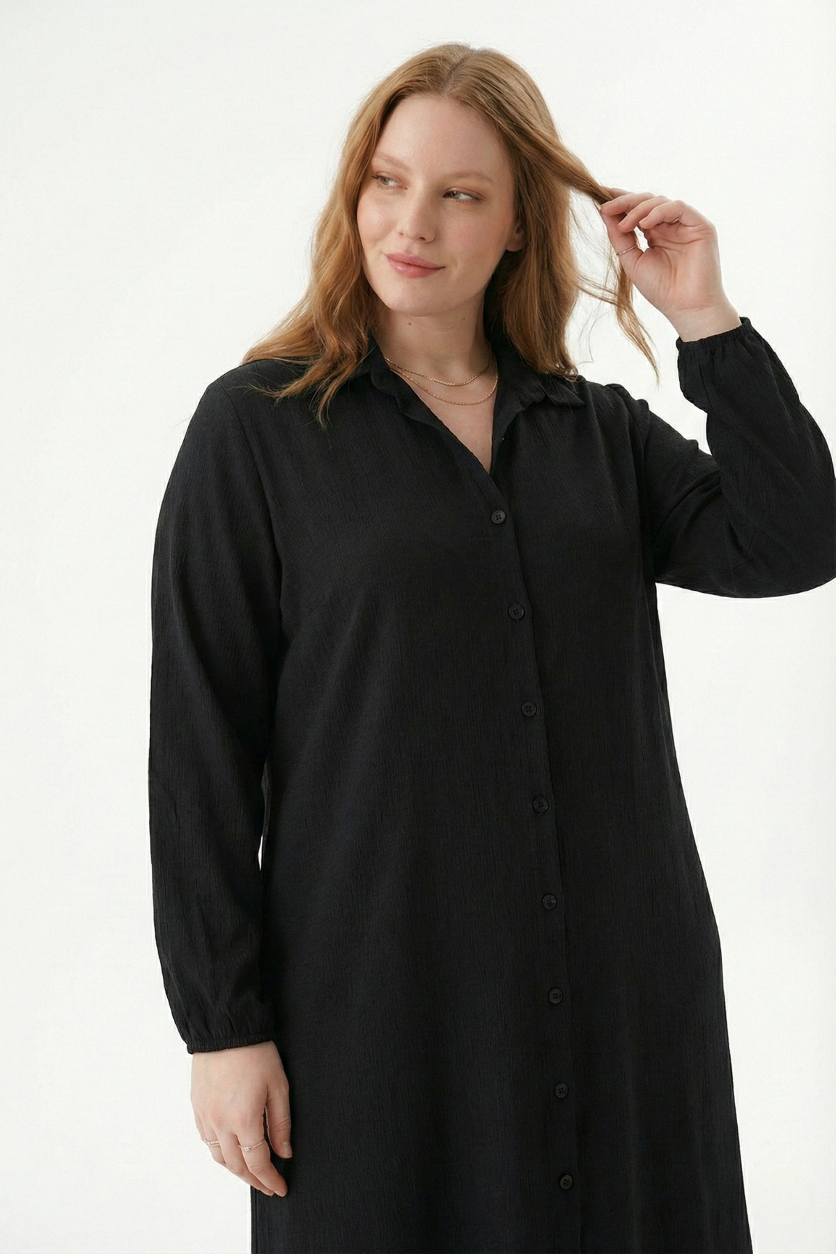 Büyük Beden Bürümcük Kumaş Uzun Elbise – Gömlek Yaka, Boydan Düğmeli, tesettür modasının en sevilen parçalarından. Vücut hatlarını gizleyen rahat kesimi, yumuşak dokusu ve özenli dikişleriyle konfor ve şıklığı bir arada sunar. Düğün, nişan, bayram veya günlük kullanım için ideal. Talvien güvencesiyle sunulmaktadır.