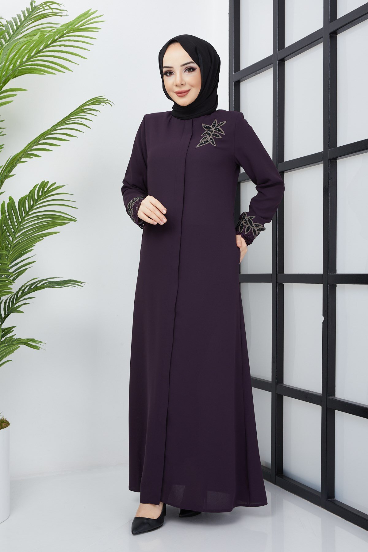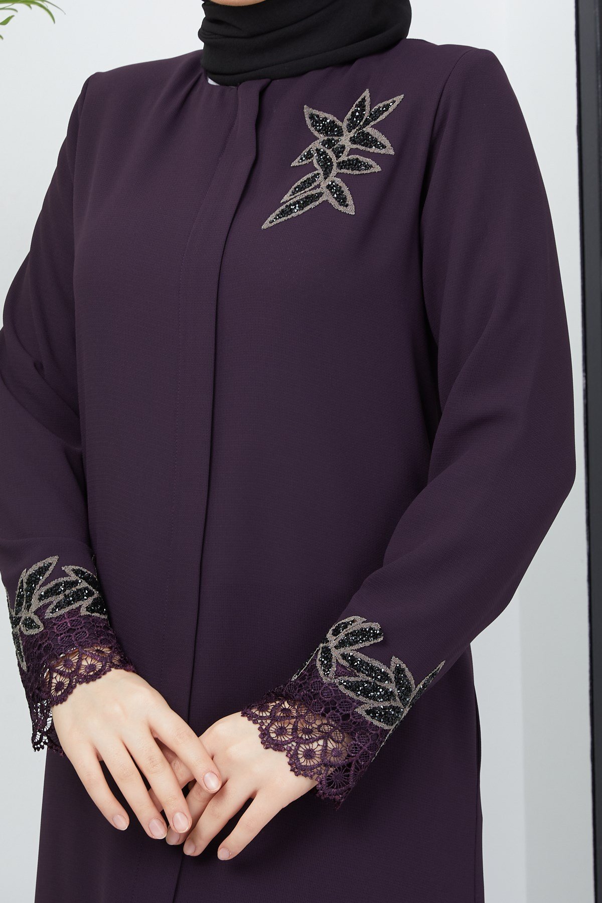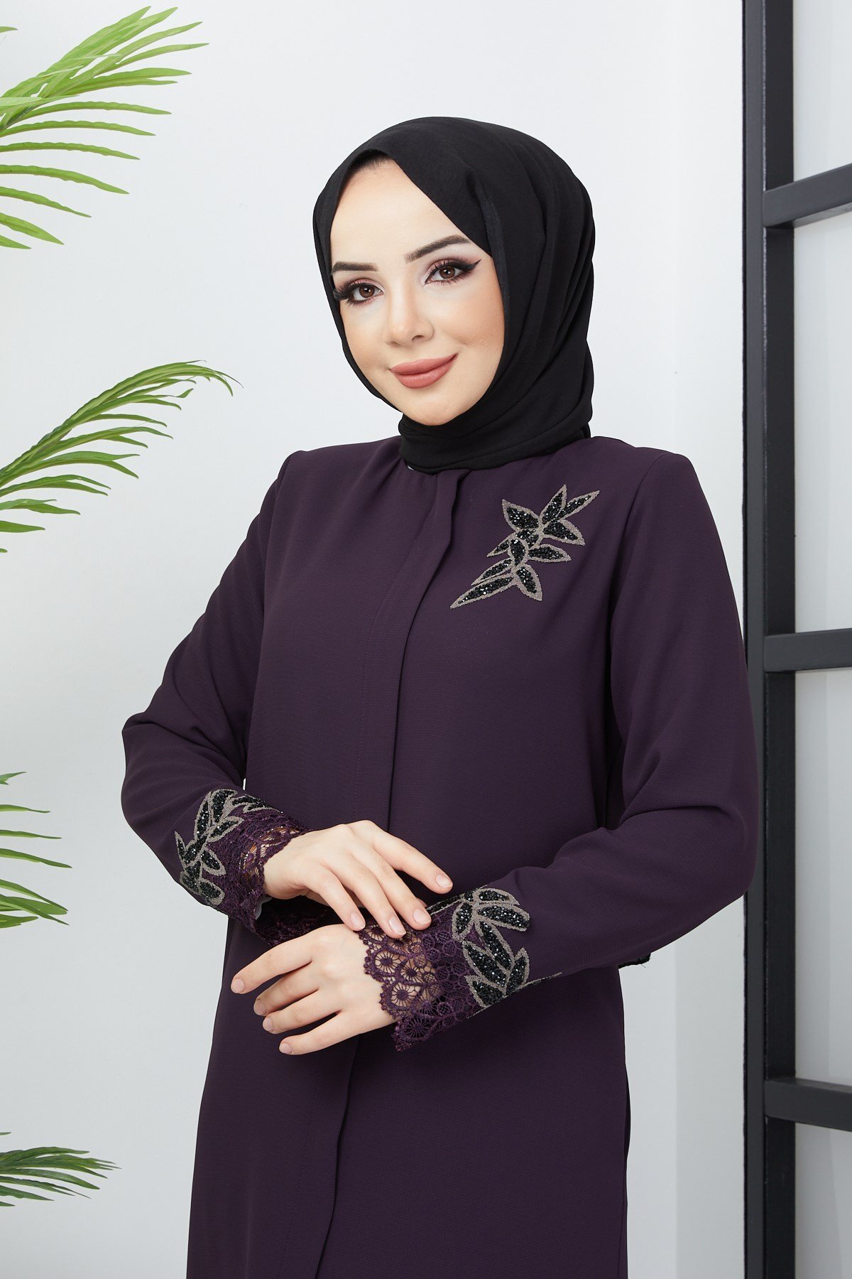 Büyük Beden Dantel Taş İşleme Detaylı Mürdüm Ferace, özel dikim teknikleriyle üretilmiş, kalitesini her detayda hissedebileceğiniz bir tasarım. Nefes alan kumaş yapısıyla mevsim geçişlerinde ideal bir tercih. Zarif silueti ve ince işçiliğiyle fark yaratacaksınız. hafsamina güvencesiyle sunulmaktadır.