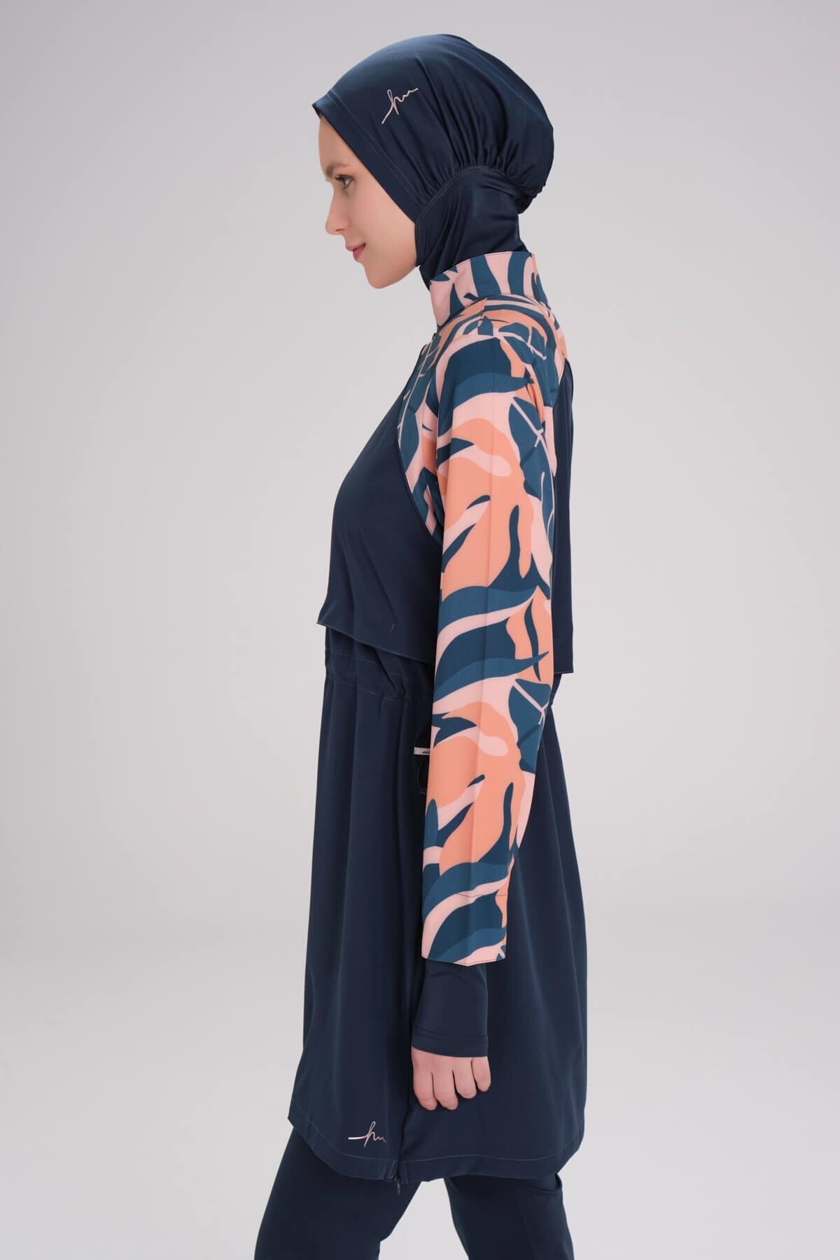 Esila Kolu Desenli Jileli 5 Parça Tesettür Mayo Takımı, tesettür modasının en beğenilen parçalarından biri. Vücut hatlarını gizleyen rahat kesimi, nefes alan kumaşı ve özenli dikişleriyle fark yaratıyor. Günlük kullanımdan özel davetlere kadar her ortamda giyebilirsiniz. Haşema kalite güvencesiyle sizlere sunulmaktadır.