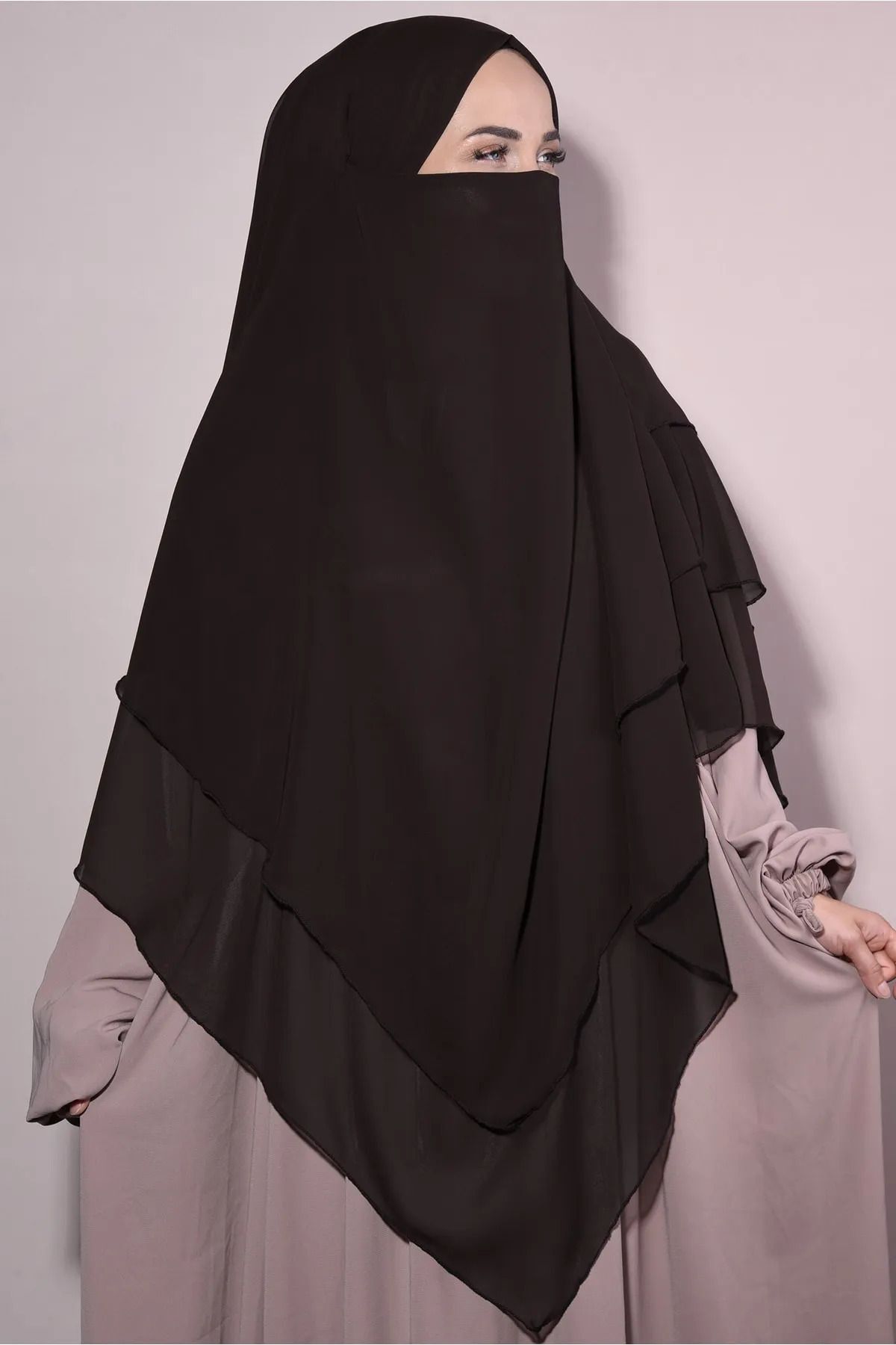 Hazır Bağlama Üç Katlı Şifon Hac Umre Şalı Sufle Khimar Hijab Kahverengi, zengin renk paleti ve şık deseniyle stilinizi yansıtmanın en kolay yolu. İster klasik ister modern tarza sahip olun, bu şal her kıyafetinizle uyum sağlar. Hediye olarak da mükemmel bir tercih. Luna Nueva güvencesiyle sunulmaktadır.