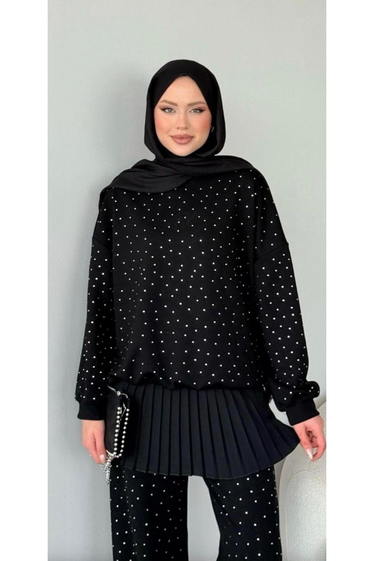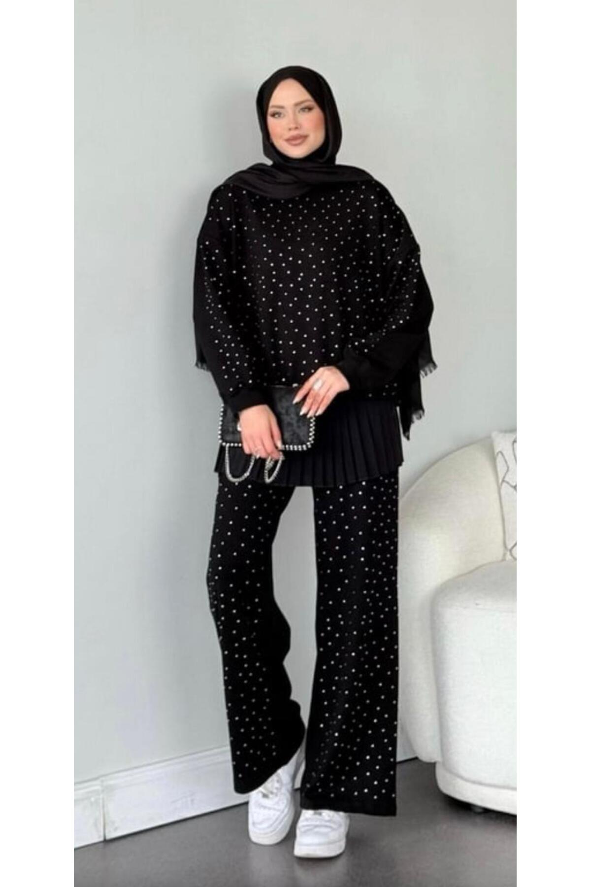 İKİ İPLİK TAŞLI MODAL TAKIM, zarif tasarımı ve kaliteli kumaşıyla günlük ve özel günlerinizde şıklığınızı tamamlayacak bir parça. Rahat kalıbı sayesinde gün boyu konforlu bir kullanım sunar. Tesettüre uygun kesimi ile her yaştan kadının tercih edebileceği şık bir model. RMG BUTİK güvencesiyle sunulmaktadır.