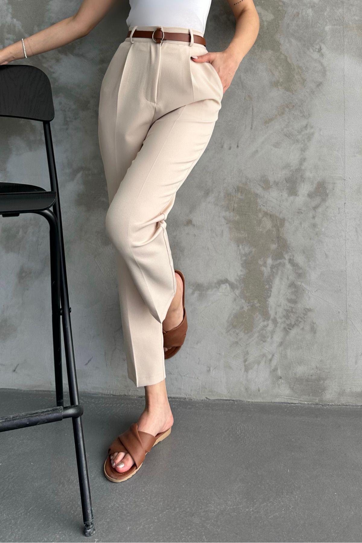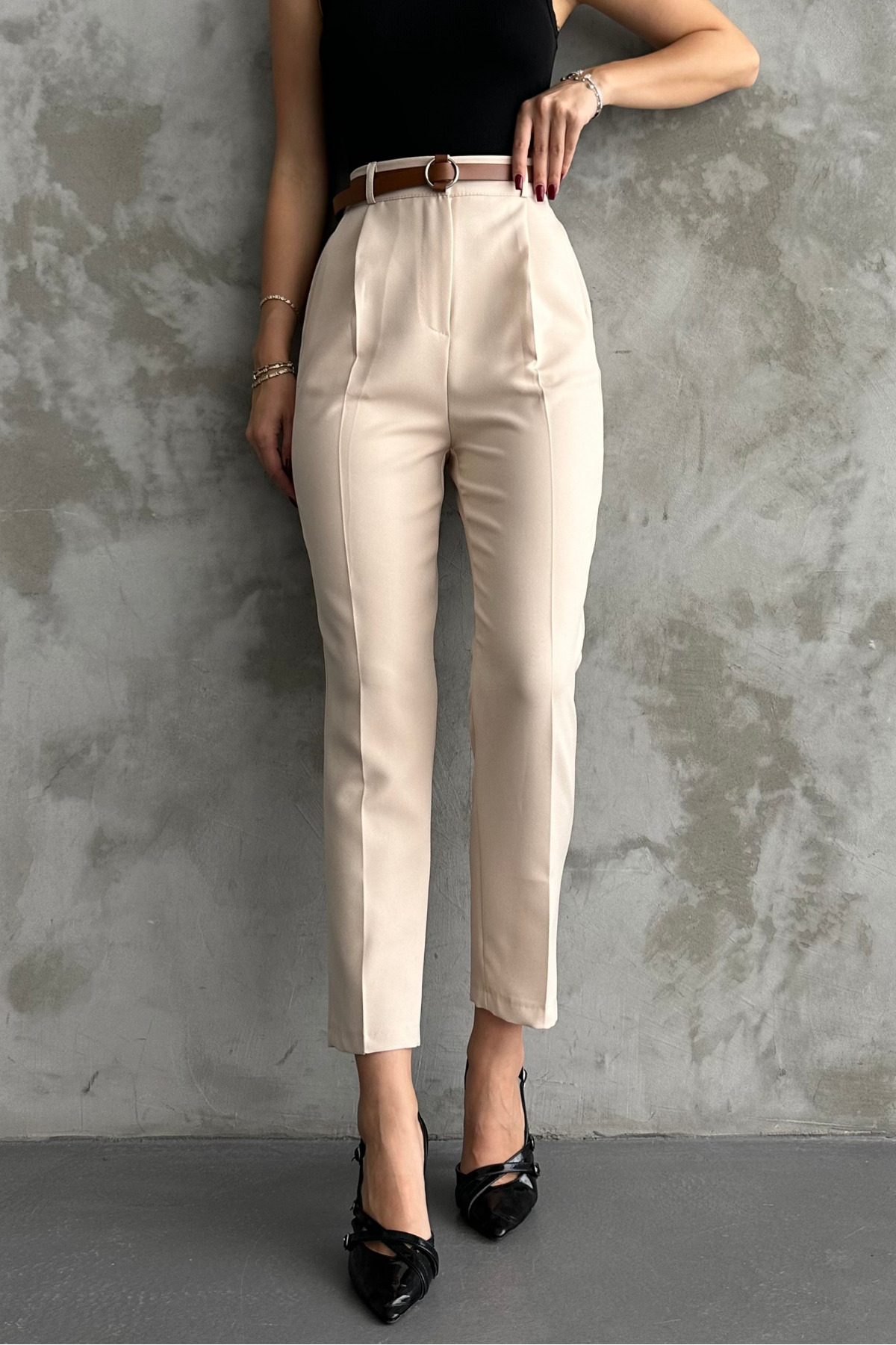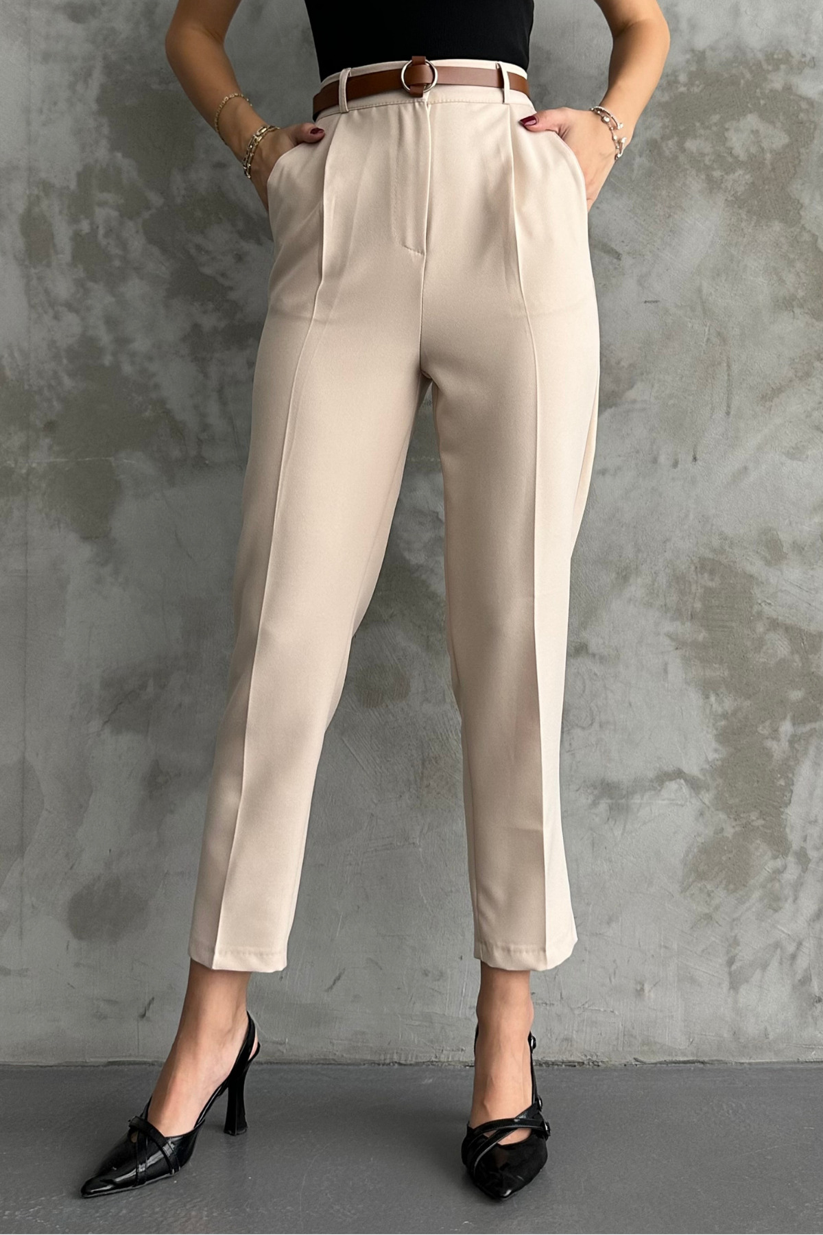Kadın Dar Paça Pileli Kemerli Mevsimlik Kumaş Pantolon Krem, şık tasarımı ve dayanıklı malzemesiyle günlük kullanımdan özel günlere kadar her anınıza eşlik edecek. Detaylı işçiliği ve modern çizgileriyle tarzınızı tamamlayan bir aksesuar. macharel jeans güvencesiyle sunulmaktadır.