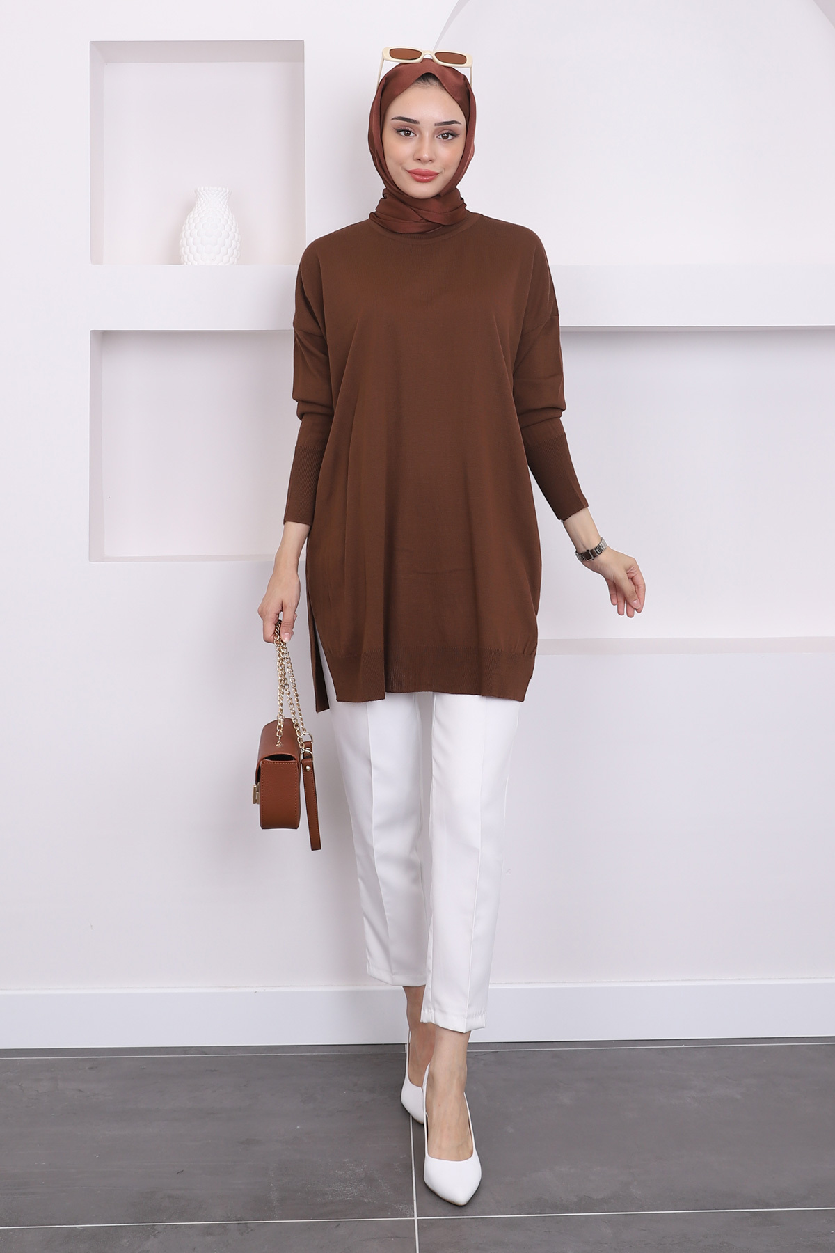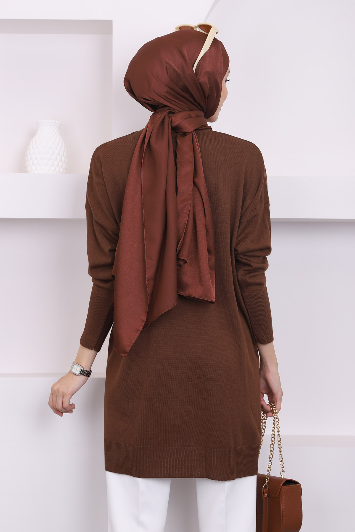 Kahverengi Bisiklet Yaka Merserize Salaş Triko Tunik, modern çizgileri ve sofistike detaylarıyla gardırobunuzun vazgeçilmezi olacak. Özenle seçilmiş kumaşı vücutta rahat durur ve hareket özgürlüğü sağlar. Farklı kombinlerle hem günlük hem de davet stilinizi oluşturabilirsiniz. İmajButik güvencesiyle sunulmaktadır.