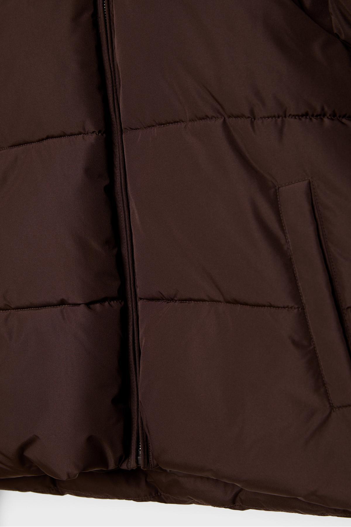 Kapüşonlu kapitone mont, modern çizgileri ve sofistike detaylarıyla gardırobunuzun vazgeçilmezi olacak. Özenle seçilmiş kumaşı vücutta rahat durur ve hareket özgürlüğü sağlar. Farklı kombinlerle hem günlük hem de davet stilinizi oluşturabilirsiniz. Stradivarius güvencesiyle sunulmaktadır.