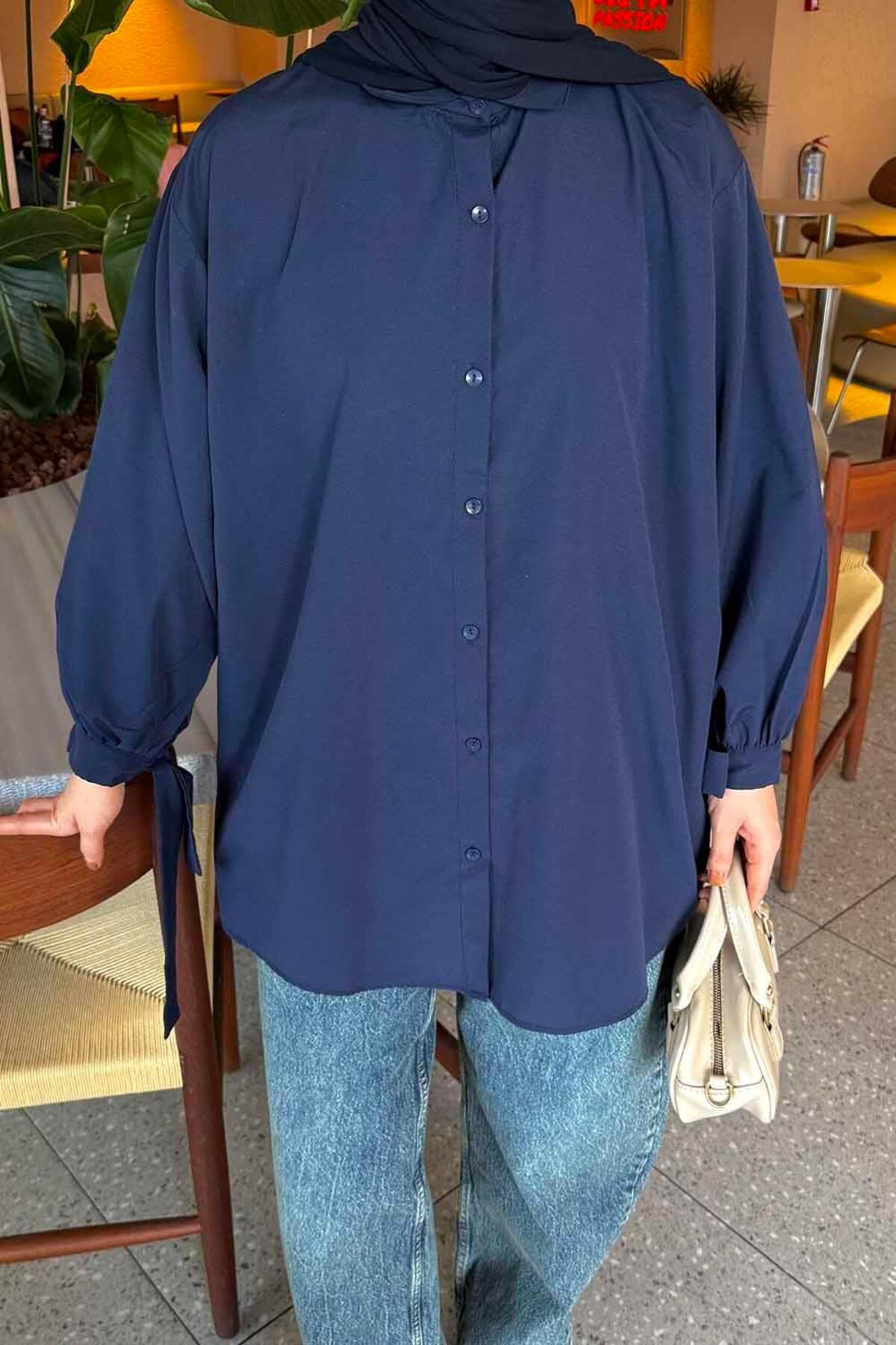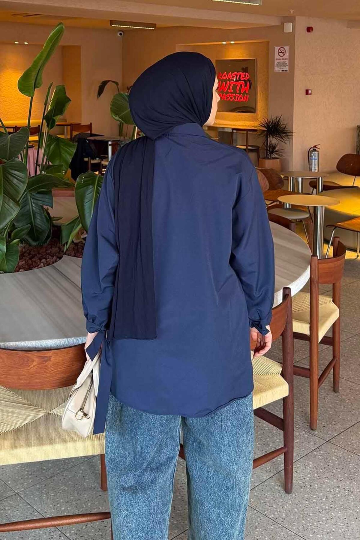 Kol Detaylı Gömlek Oversize Gömlek Lacivert, modern çizgileri ve sofistike detaylarıyla gardırobunuzun vazgeçilmezi olacak. Özenle seçilmiş kumaşı vücutta rahat durur ve hareket özgürlüğü sağlar. Farklı kombinlerle hem günlük hem de davet stilinizi oluşturabilirsiniz. Lamelif güvencesiyle sunulmaktadır.