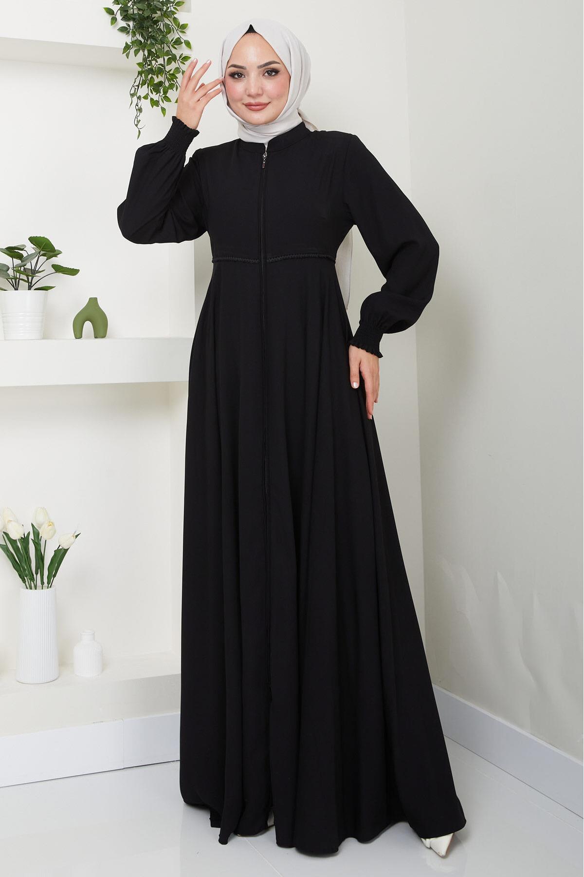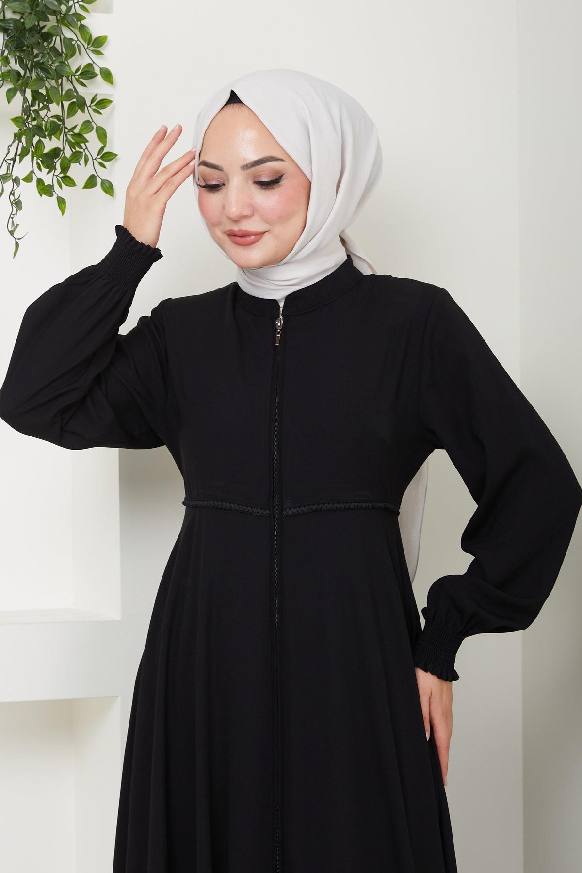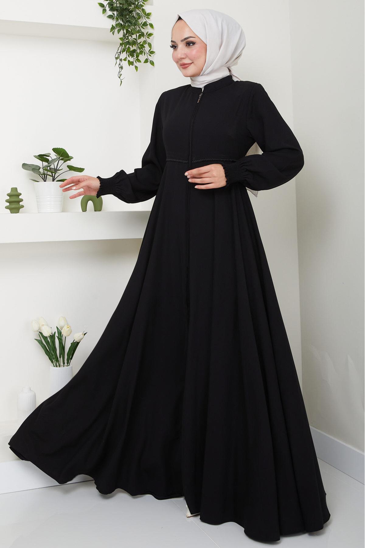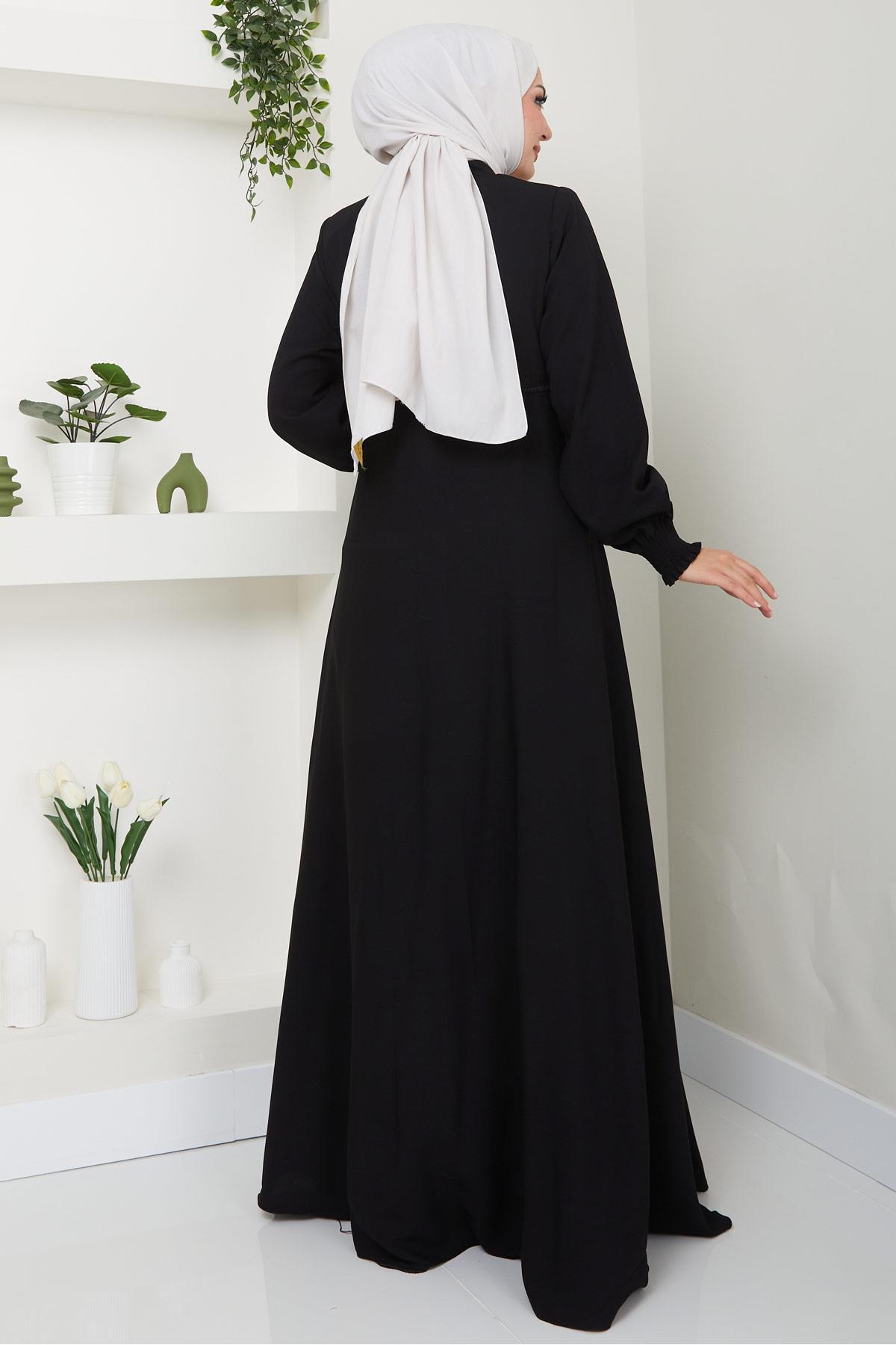 Kolu Gipeli Nakış Detaylı Mevlana Ferace Siyah HM2484