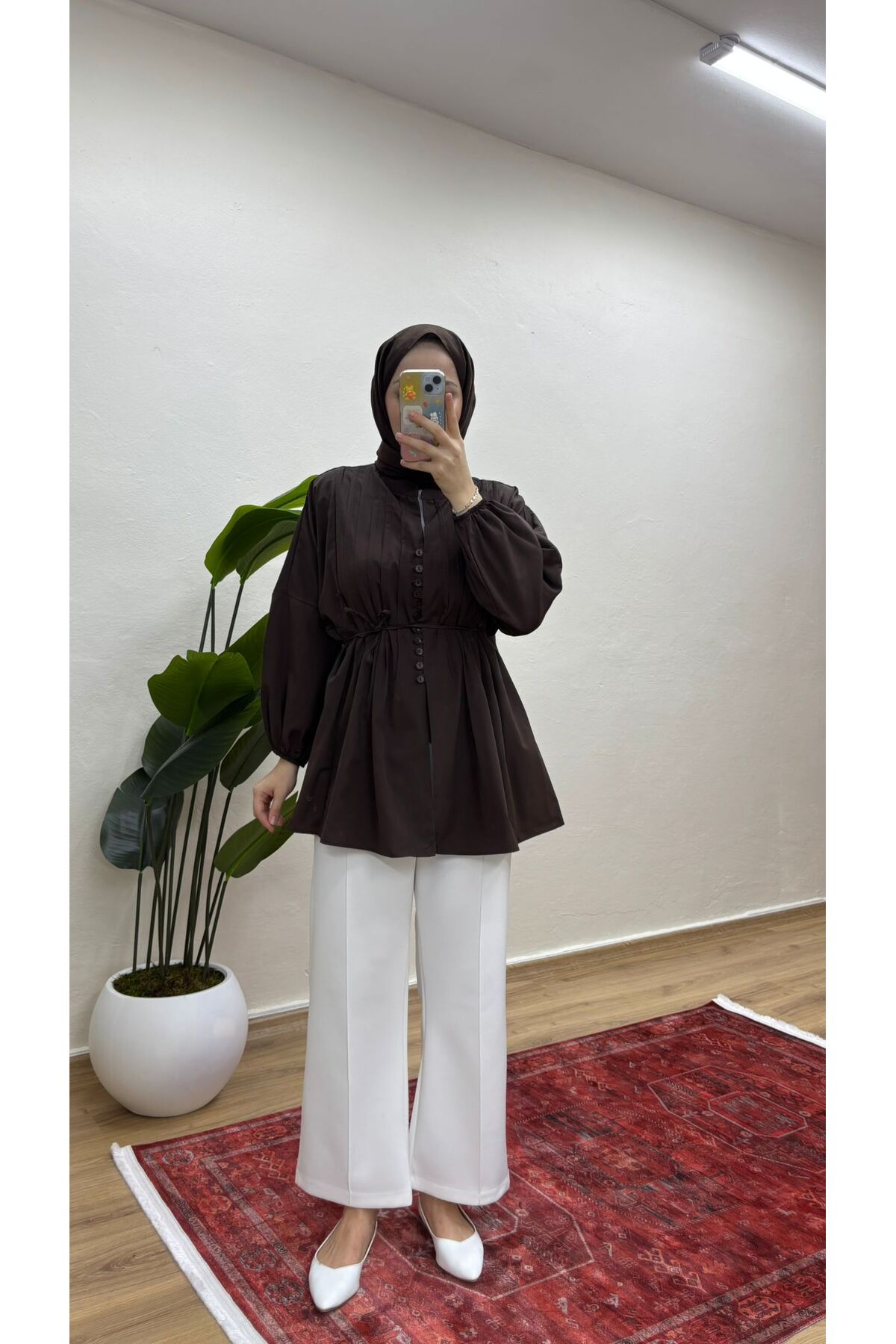 Bayıldım rengi tam bir acı kahve, durulu falan aşırı iyi kumaş da yazlık güzel bir kumaş fav parçam olacak eminim