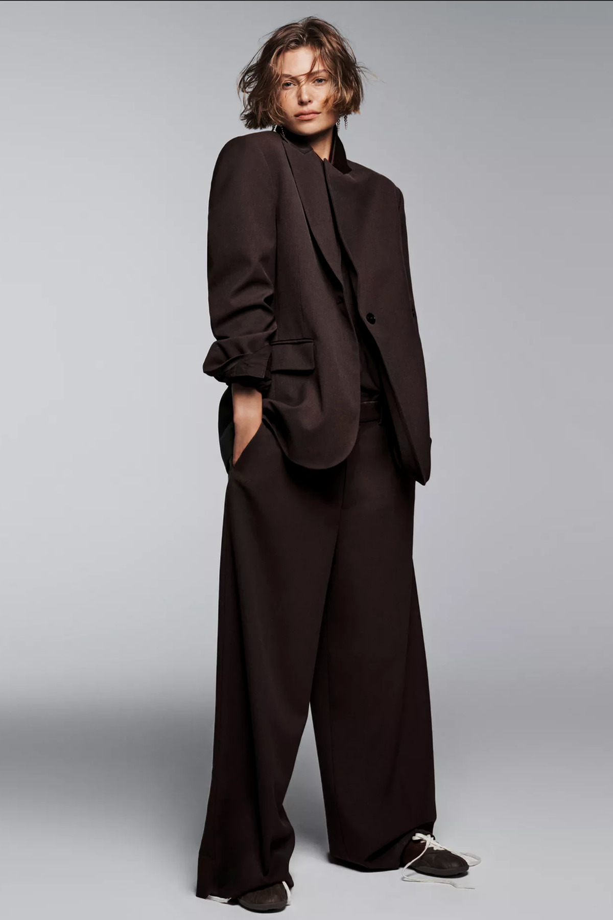 Yes herkesin dediği gibi biraz uzun ve bol ama zaten modeli bu halledilir terzide ya da topuklu botlarla güzel duracagini düşünüyorum en azından tarz bir şey