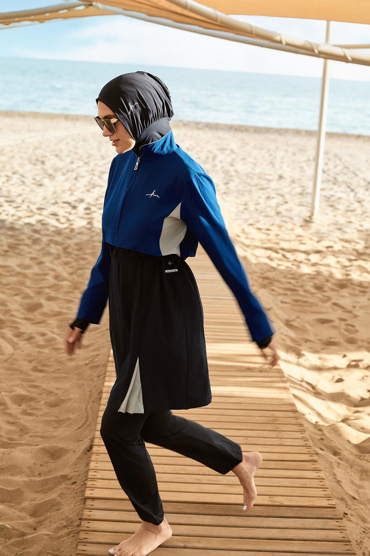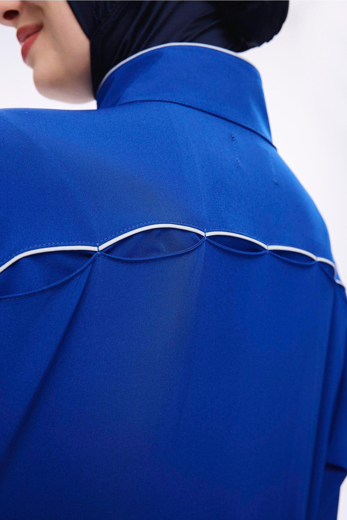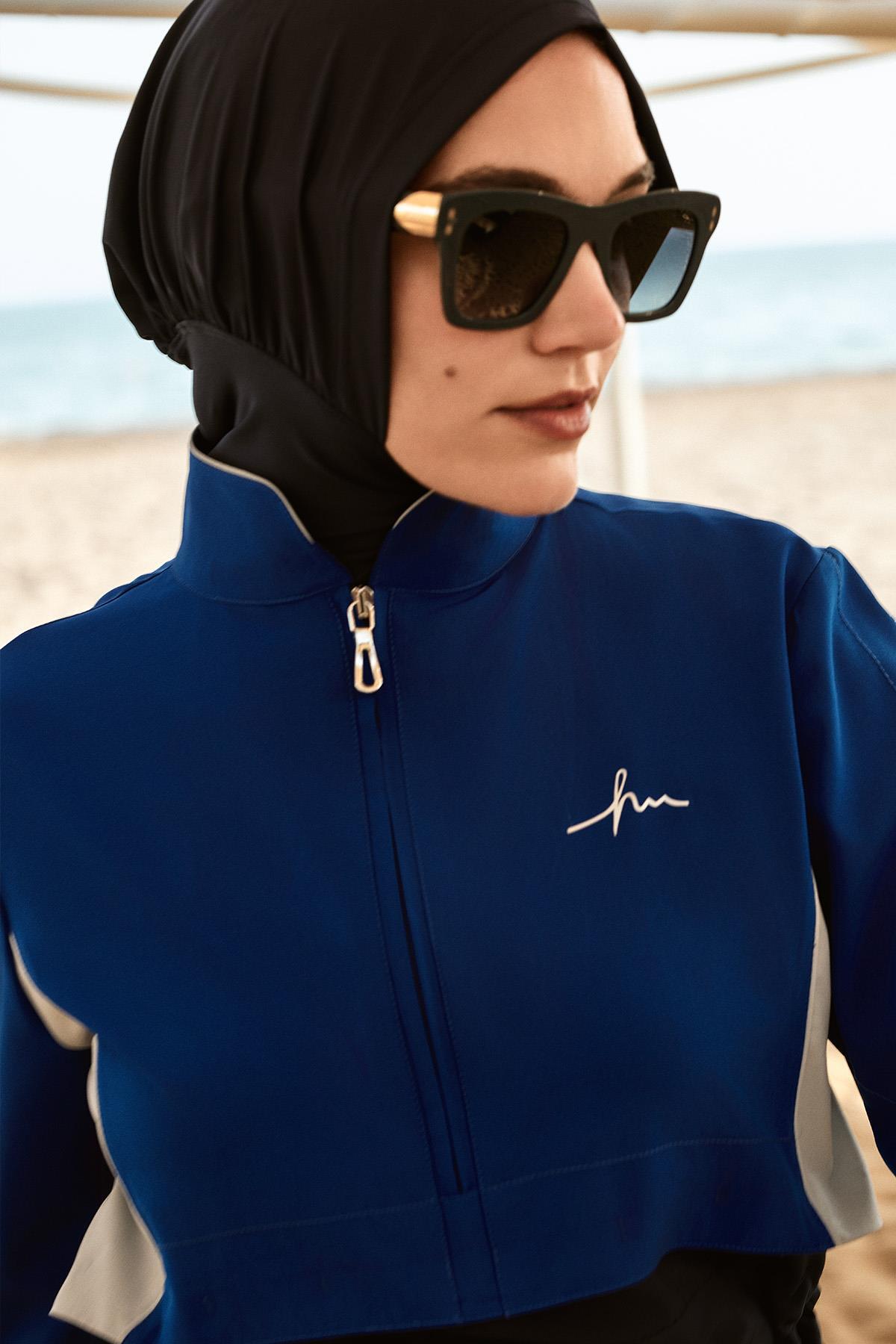 Saks Mavisi 5 Parça Jileli Tam Tesettür Mayo Takımı 5063, modern çizgileri ve şık detaylarıyla gardırobunuzun vazgeçilmezi olacak. Mevsimin en trend renklerinde sunulan bu ürün, farklı kombinlerle kullanılabilir. Kaliteli dikimi ve dayanıklı kumaşıyla uzun süre yeni görünümünü korur. Haşema kalite güvencesiyle sizlere sunulmaktadır.