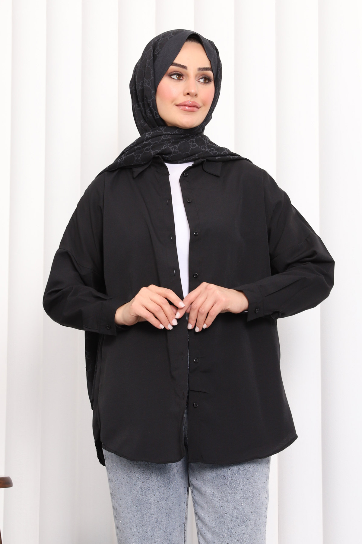 Siyah Düğmeli Salaş Terikoton Gömlek, tesettür modasının en beğenilen parçalarından biri. Vücut hatlarını gizleyen rahat kesimi, nefes alan kumaşı ve özenli dikişleriyle fark yaratıyor. Günlük kullanımdan özel davetlere kadar her ortamda giyebilirsiniz. İmajButik kalite güvencesiyle sizlere sunulmaktadır.