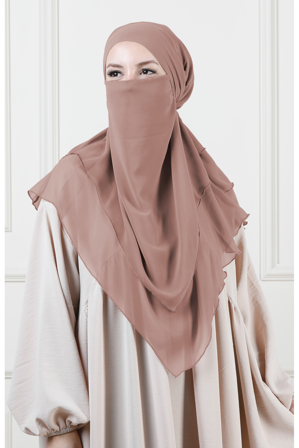 Tesettür Orta Boy Sufle Khimar Peçeli Hazır Şal Bronz, özel dokuma tekniğiyle üretilmiş, kalitesini hissedeceğiniz bir şal. Hafif yapısıyla dört mevsim kullanıma uygun olup, farklı bağlama stillerinde harika görünüm sunar. Ns nowascarf güvencesiyle sunulmaktadır.