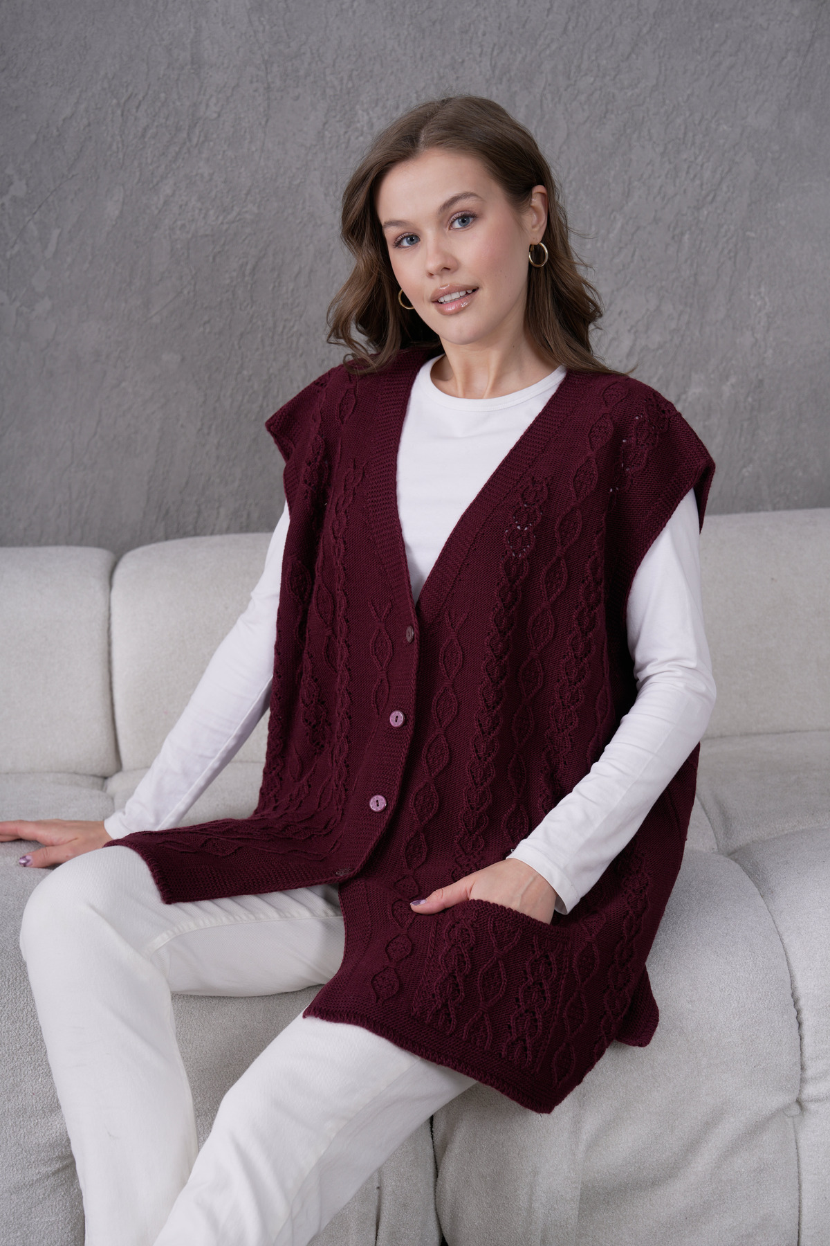 begendim kışın cok üşüyorum guzel anneme de aldim grisini biraz kabarıyor el örgüsü gibi