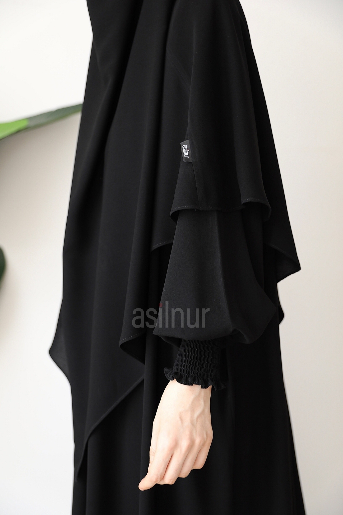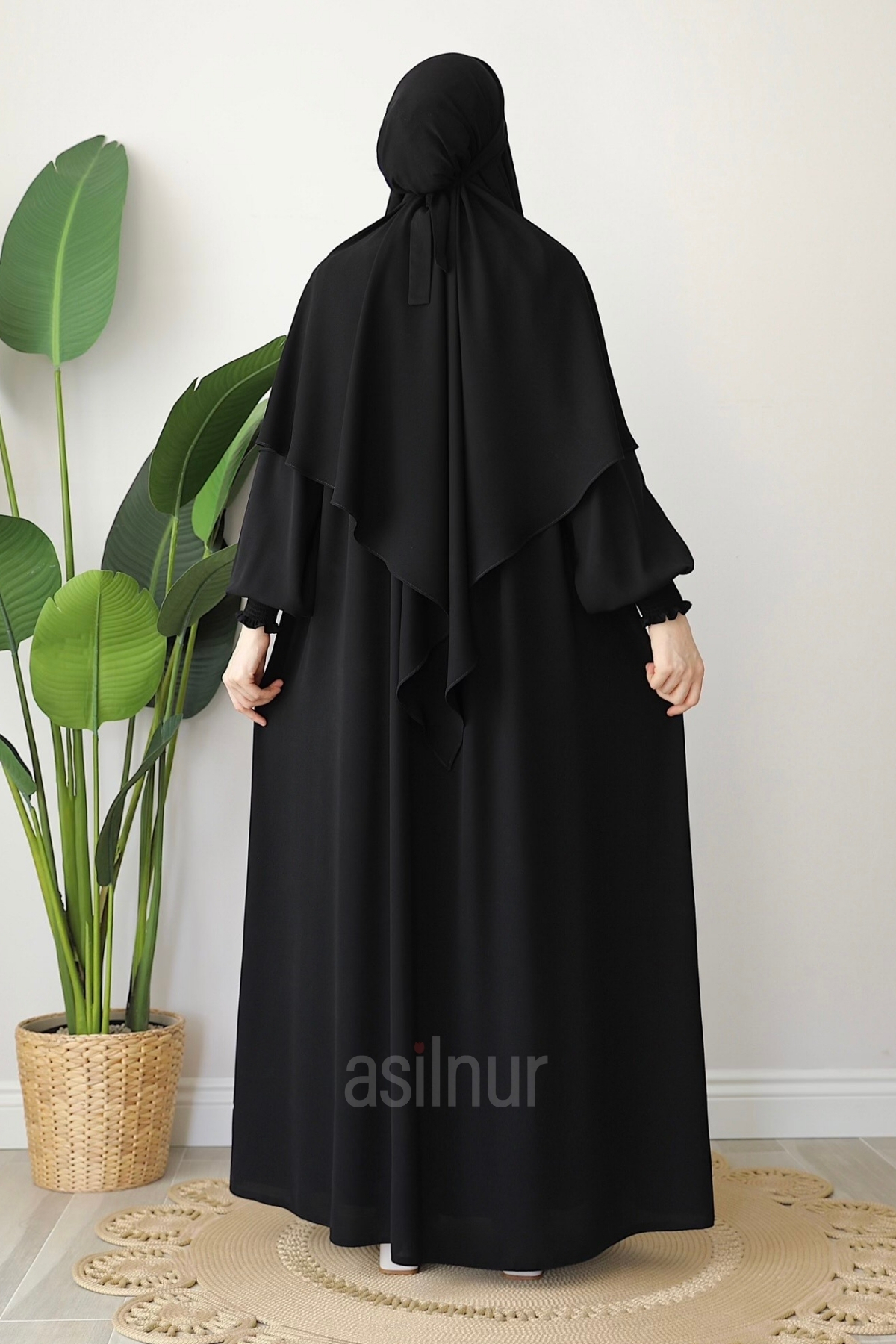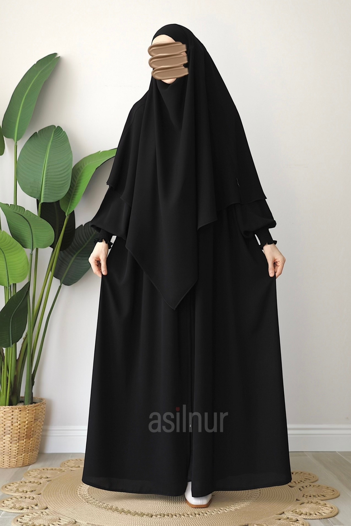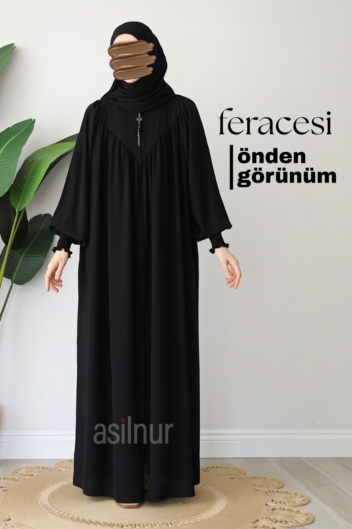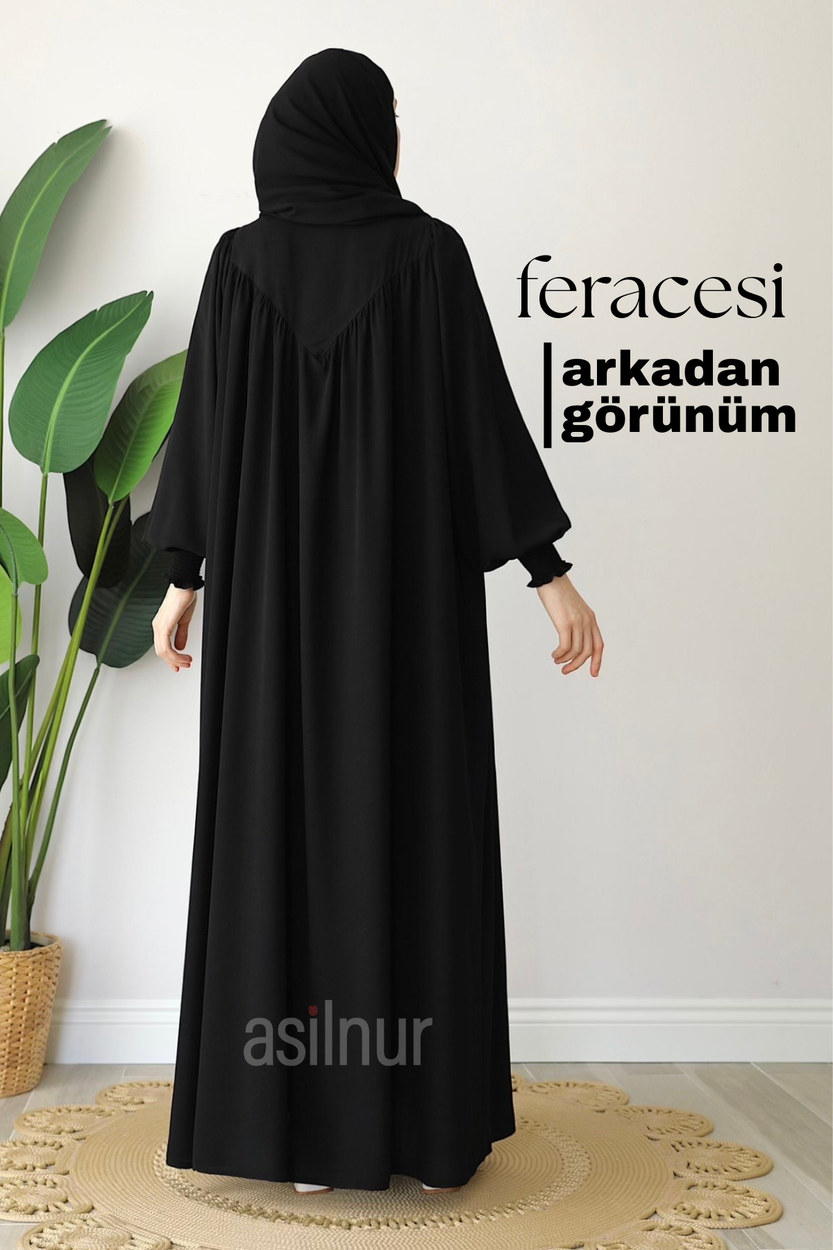 Alya Ferace Sufle Hediyeli Takım Siyah, modern çizgileri ve şık detaylarıyla gardırobunuzun vazgeçilmezi olacak. Mevsimin en trend renklerinde sunulan bu ürün, farklı kombinlerle kullanılabilir. Kaliteli dikimi ve dayanıklı kumaşıyla uzun süre yeni görünümünü korur. ASİLNUR kalite güvencesiyle sizlere sunulmaktadır.
