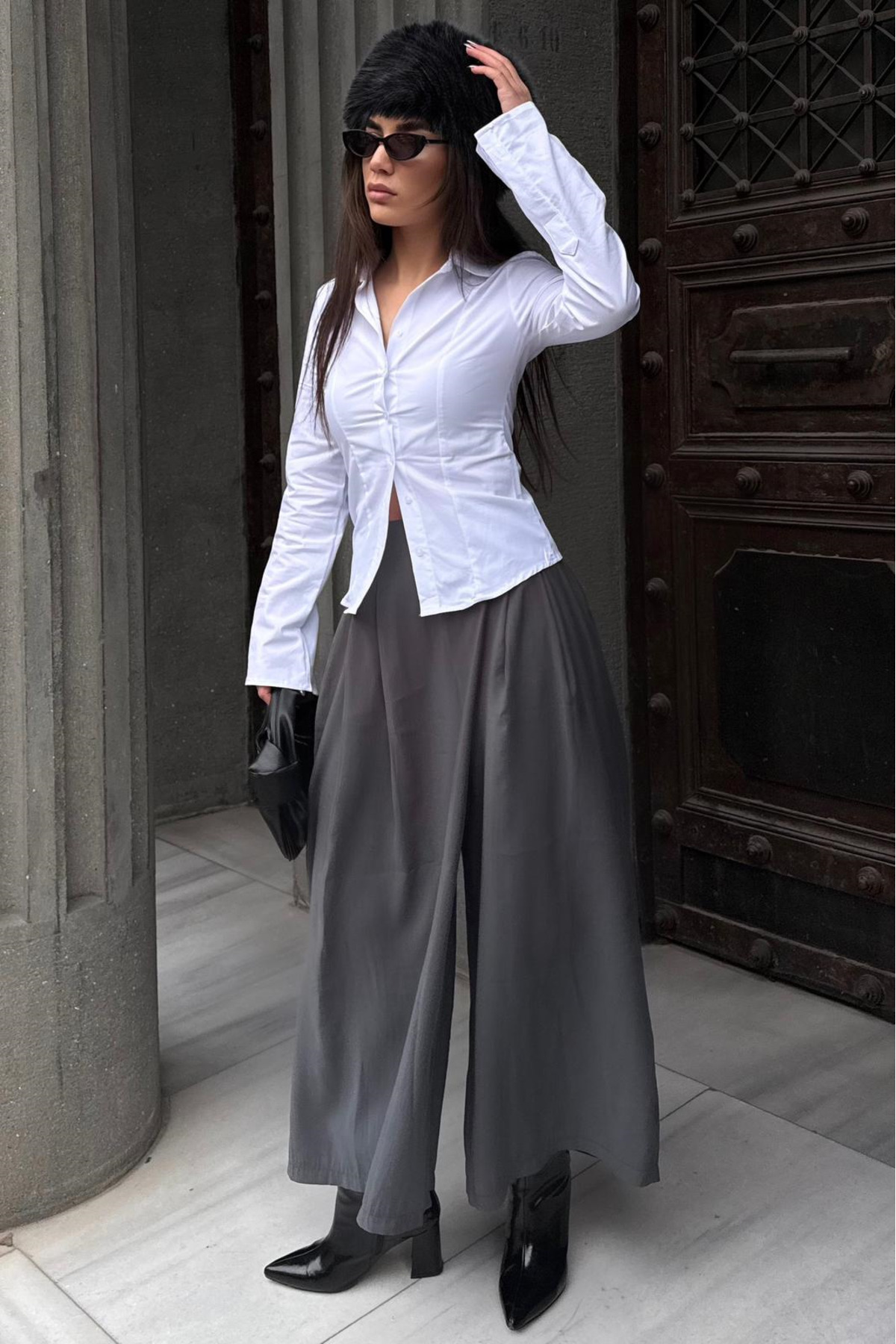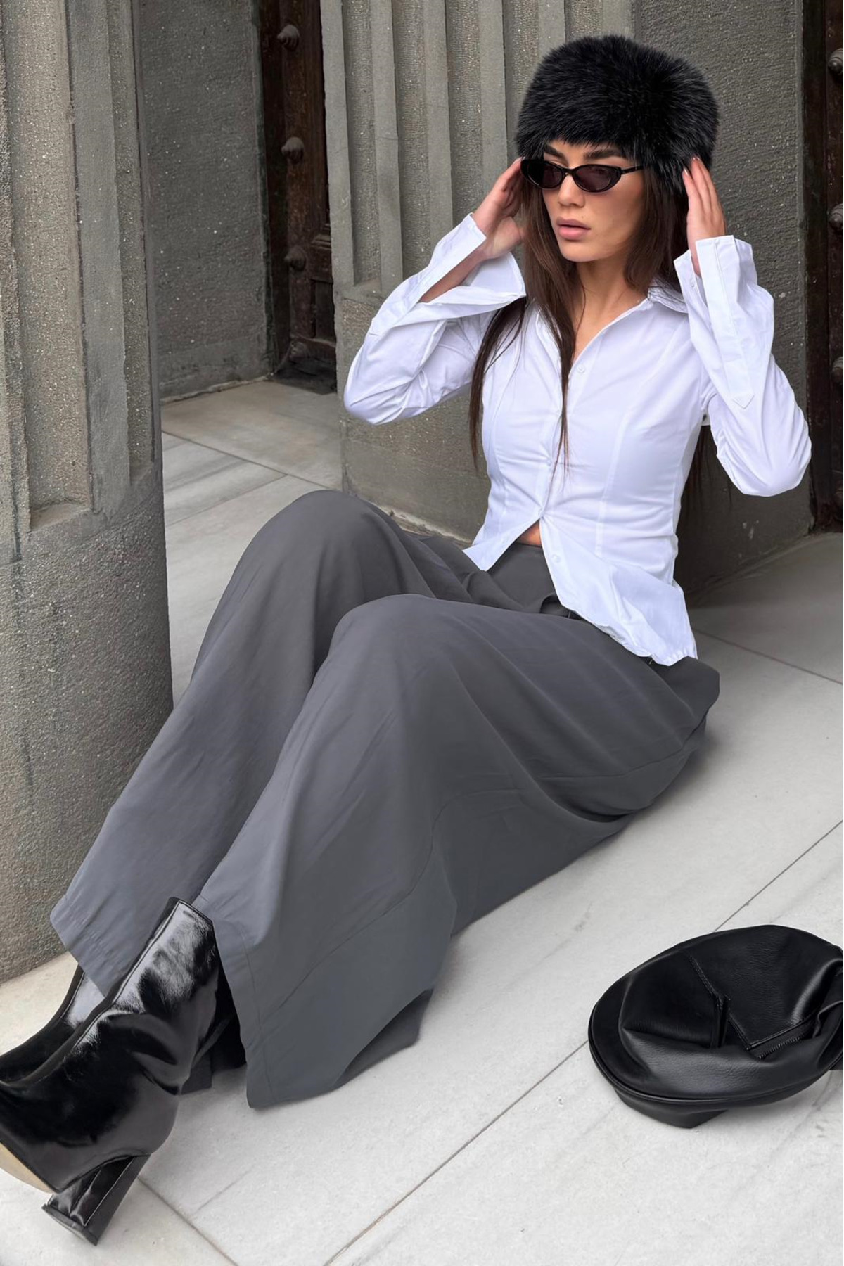 Antrasit Rahat Kesim Pileli Cepli Kadın Etek Pantolon MG2693, tesettür modasının en sevilen parçalarından. Vücut hatlarını gizleyen rahat kesimi, yumuşak dokusu ve özenli dikişleriyle konfor ve şıklığı bir arada sunar. Düğün, nişan, bayram veya günlük kullanım için ideal. Madmext güvencesiyle sunulmaktadır.