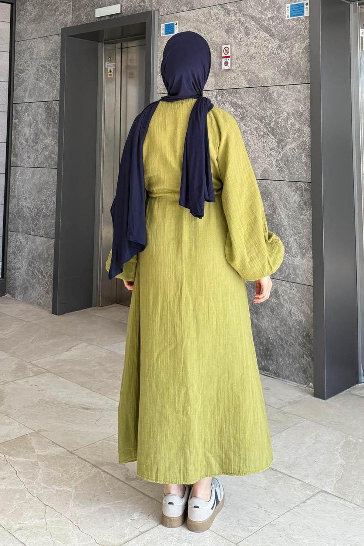 Balon Kol Bağlamalı Tesettür Elbise Yağ Yeşili, özel dikim teknikleriyle üretilmiş, kalitesini her detayda hissedebileceğiniz bir tasarım. Nefes alan kumaş yapısıyla mevsim geçişlerinde ideal bir tercih. Zarif silueti ve ince işçiliğiyle fark yaratacaksınız. Lamelif güvencesiyle sunulmaktadır.