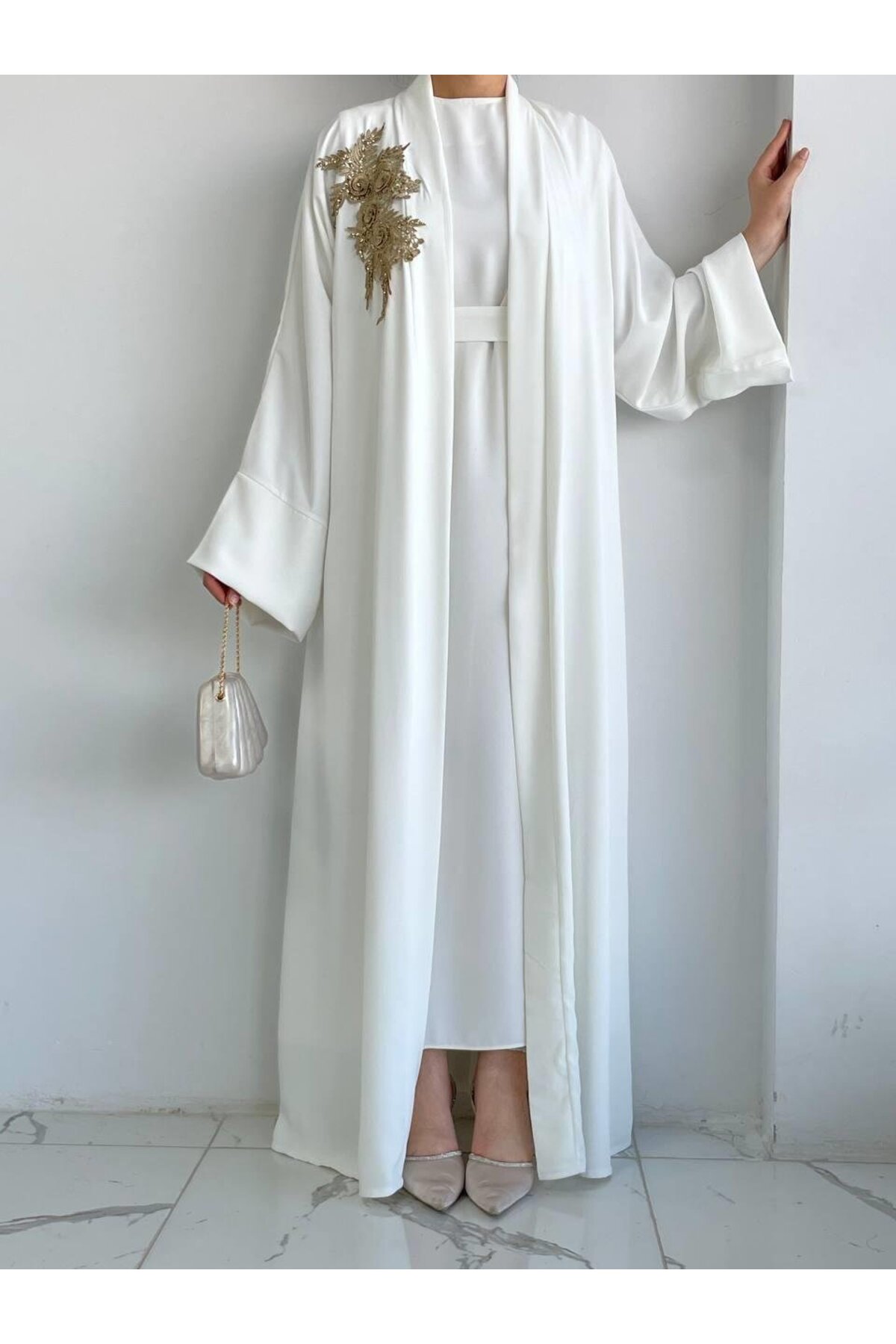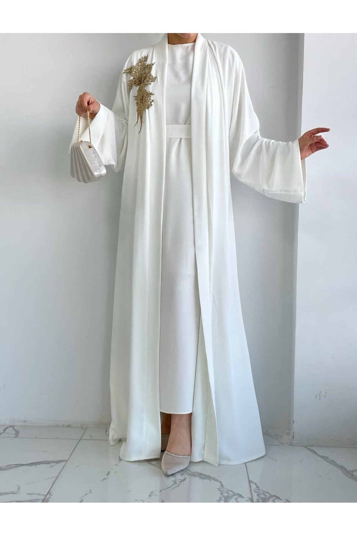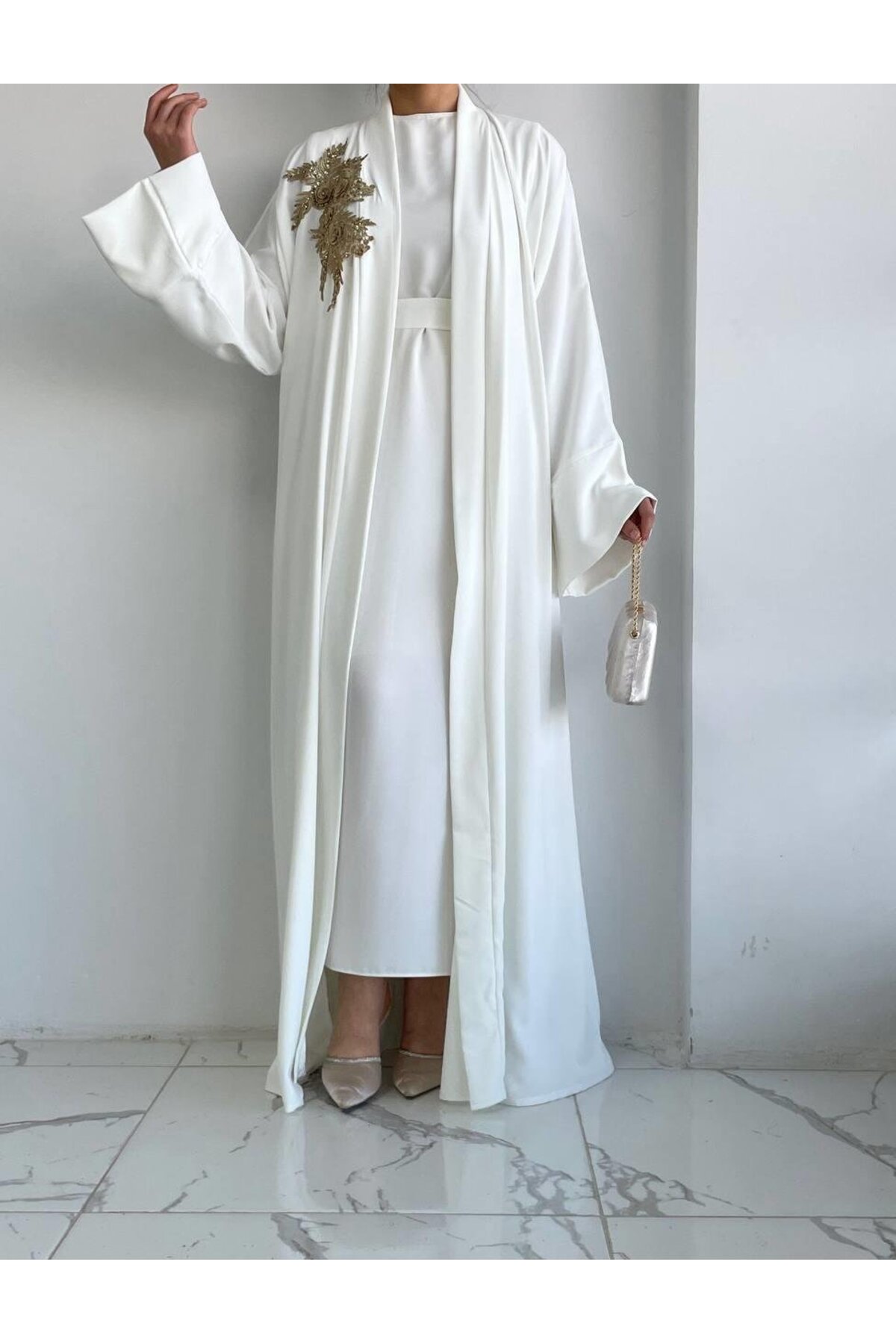 Beyaz Nida Abaya Takım, özel dikim teknikleriyle üretilmiş, kalitesini her detayda hissedebileceğiniz bir tasarım. Nefes alan kumaş yapısıyla mevsim geçişlerinde ideal bir tercih. Zarif silueti ve ince işçiliğiyle fark yaratacaksınız. MELEK ARAZ güvencesiyle sunulmaktadır.