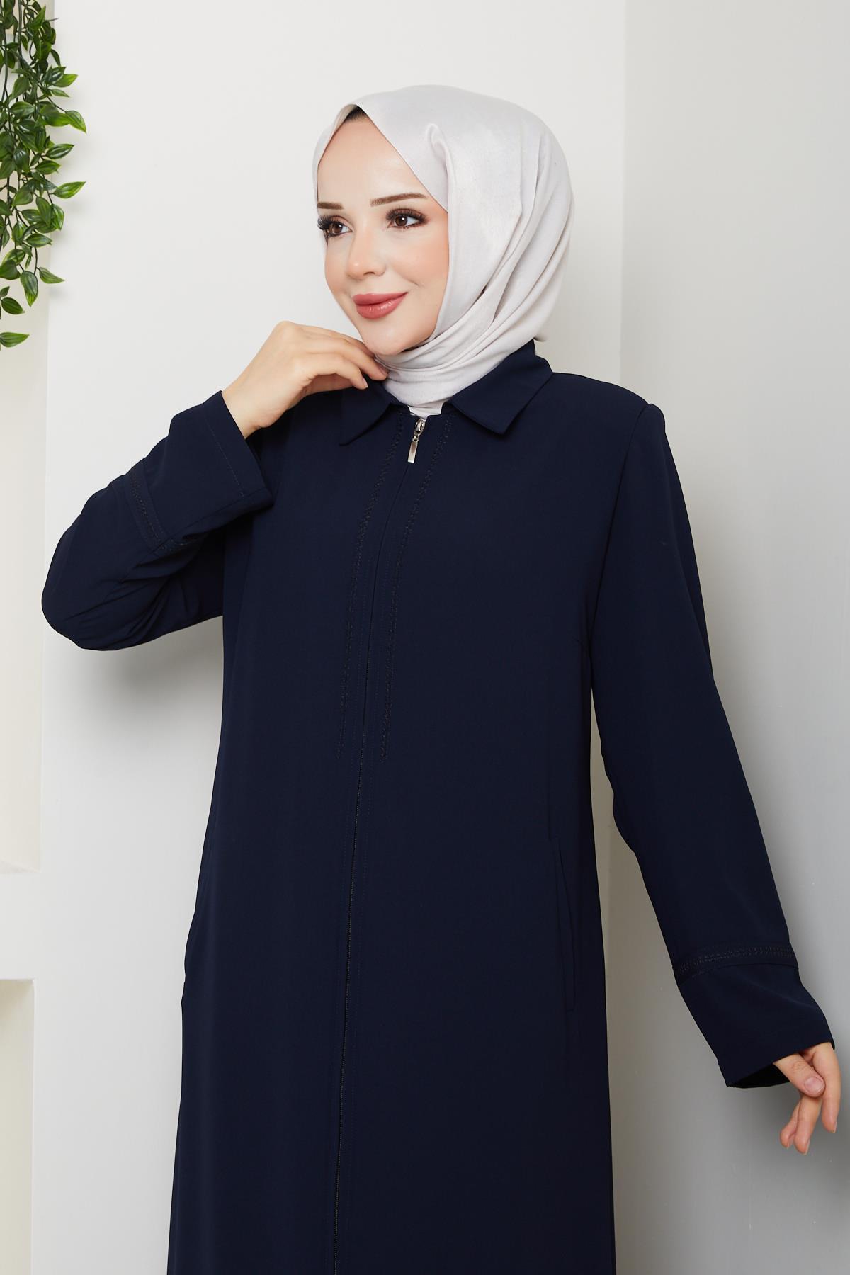 Büyük Beden Ferace Krep Kumaş Yazlık ince Lacivert 2501, modern çizgileri ve sofistike detaylarıyla gardırobunuzun vazgeçilmezi olacak. Özenle seçilmiş kumaşı vücutta rahat durur ve hareket özgürlüğü sağlar. Farklı kombinlerle hem günlük hem de davet stilinizi oluşturabilirsiniz. Günay Karaca güvencesiyle sunulmaktadır.