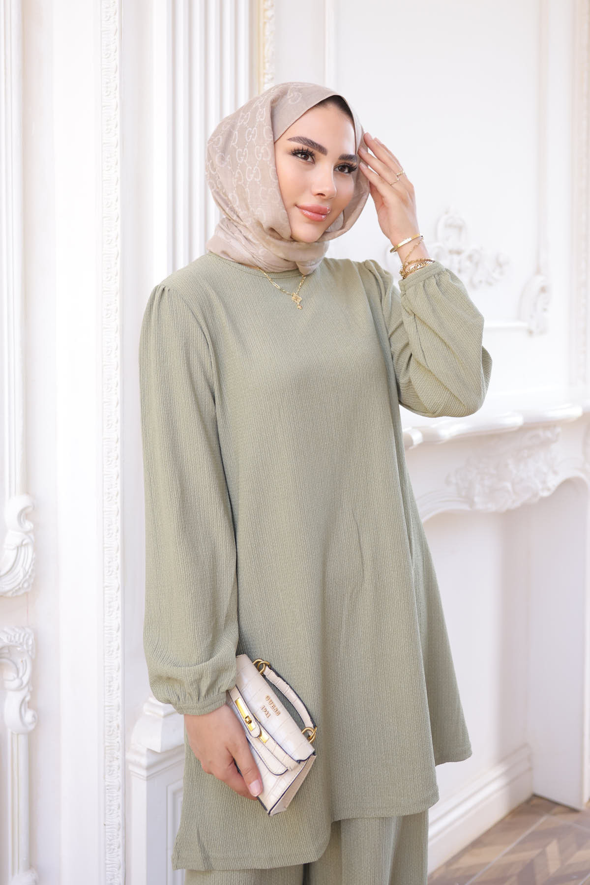 Çağla Bürümcük Tunik Pantolonlu Takım, modern çizgileri ve sofistike detaylarıyla gardırobunuzun vazgeçilmezi olacak. Özenle seçilmiş kumaşı vücutta rahat durur ve hareket özgürlüğü sağlar. Farklı kombinlerle hem günlük hem de davet stilinizi oluşturabilirsiniz. İmajButik güvencesiyle sunulmaktadır.