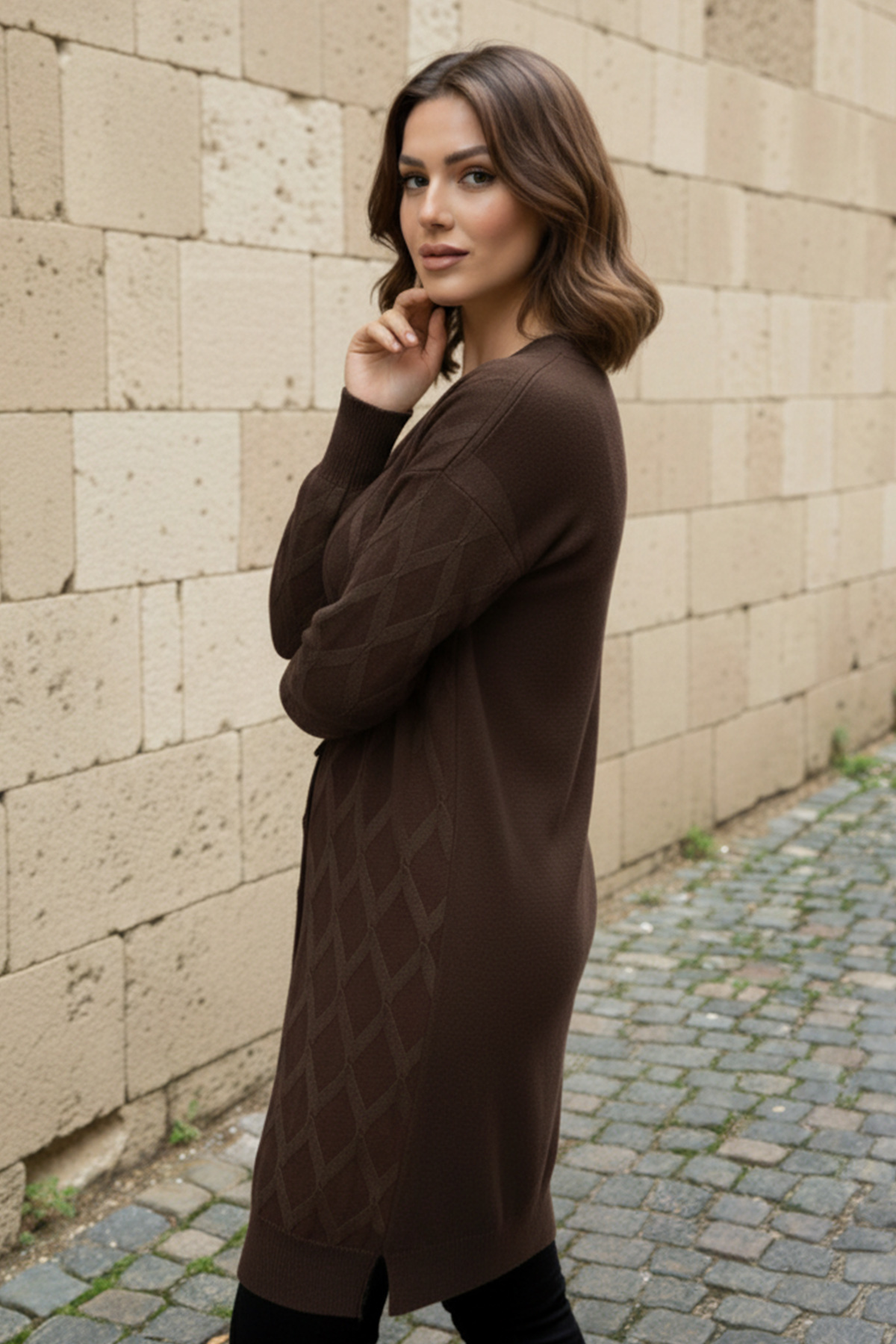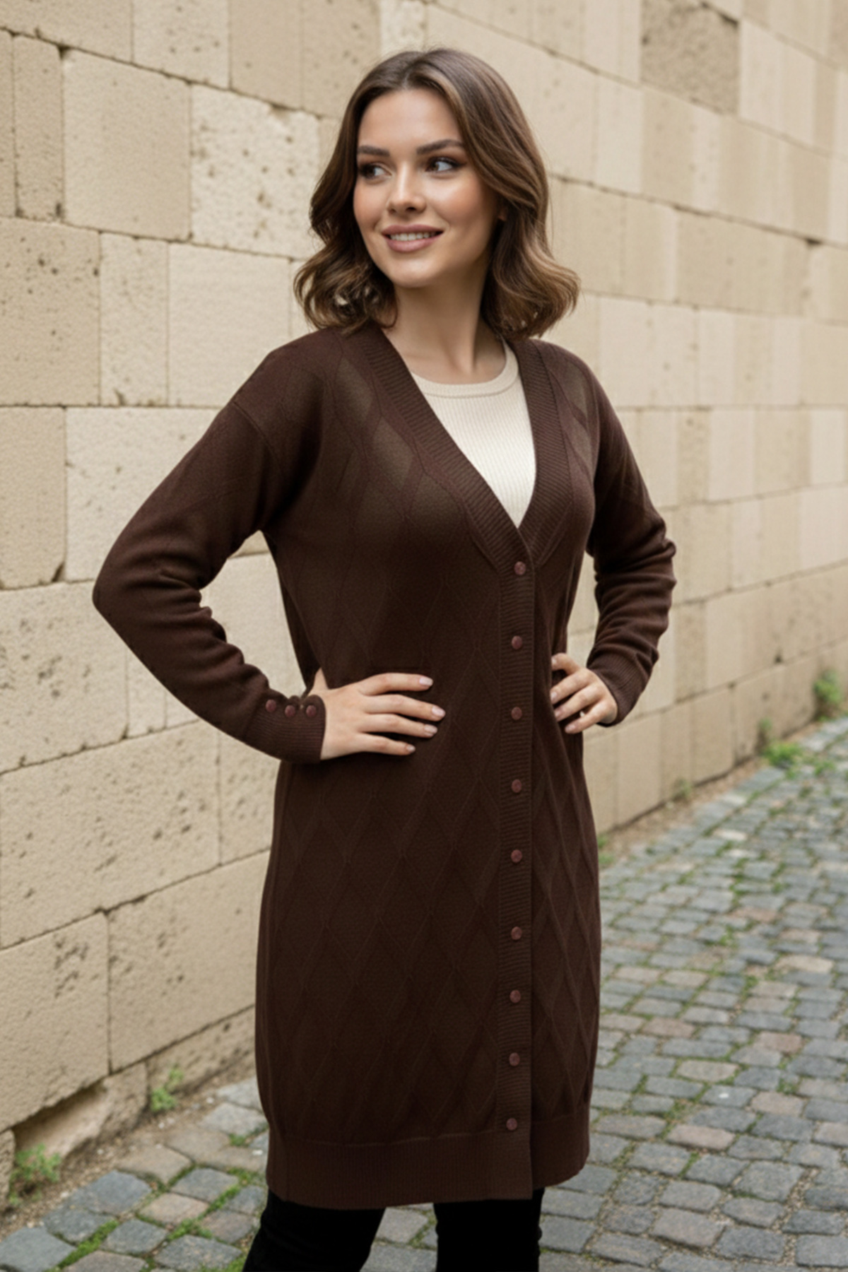 Desenli Hırka N3290 Kahverengi, zarif tasarımı ve kaliteli kumaşıyla günlük ve özel günlerinizde şıklığınızı tamamlayacak bir parça. Rahat kalıbı sayesinde gün boyu konforlu bir kullanım sunar. Tesettüre uygun kesimi ile her yaştan kadının tercih edebileceği bir model. benguen kalite güvencesiyle sizlere sunulmaktadır.