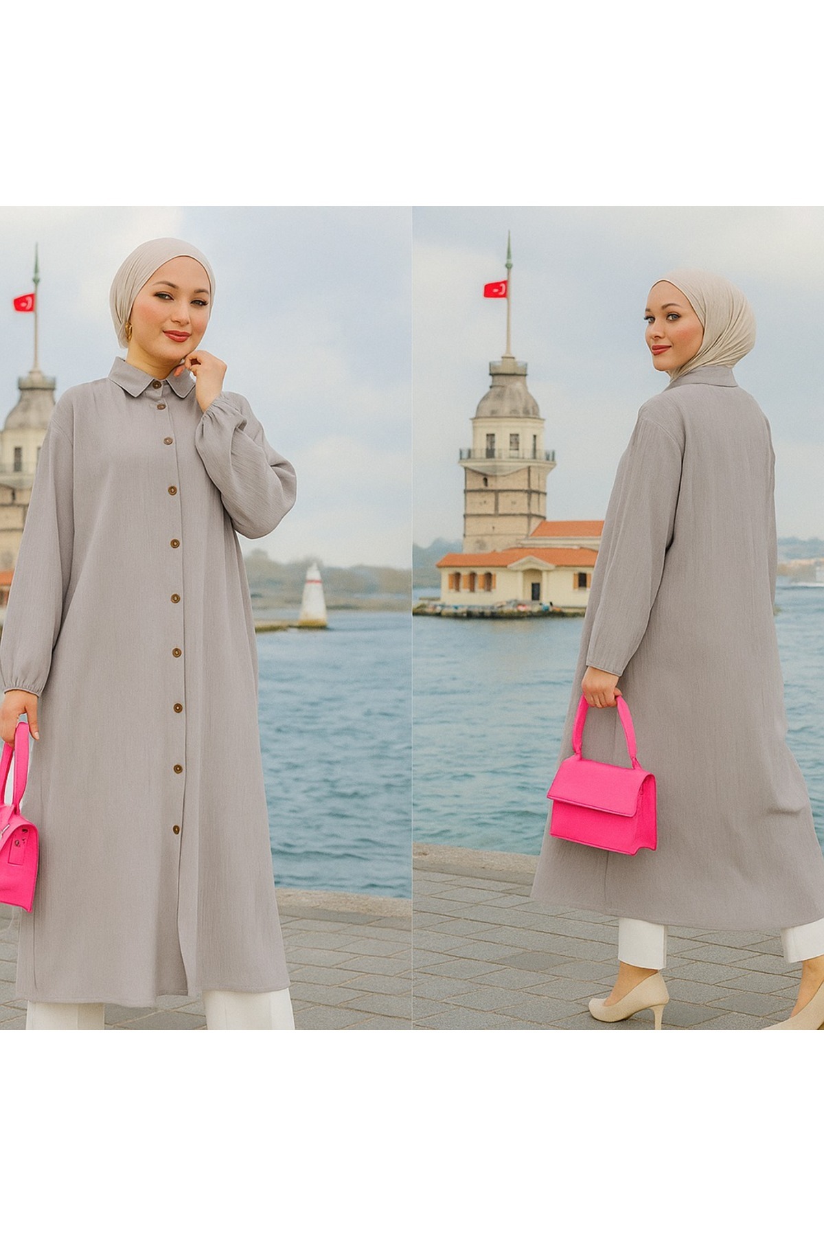 Diz Altı Boy Önden Düğmeli Pamuklu Tunik, zarif tasarımı ve kaliteli kumaşıyla günlük ve özel günlerinizde şıklığınızı tamamlayacak bir parça. Rahat kalıbı sayesinde gün boyu konforlu bir kullanım sunar. Tesettüre uygun kesimi ile her yaştan kadının tercih edebileceği şık bir model. Sas güvencesiyle sunulmaktadır.
