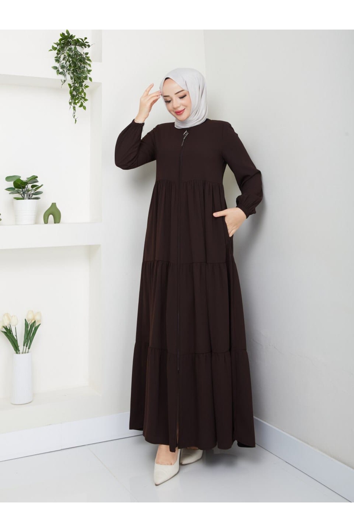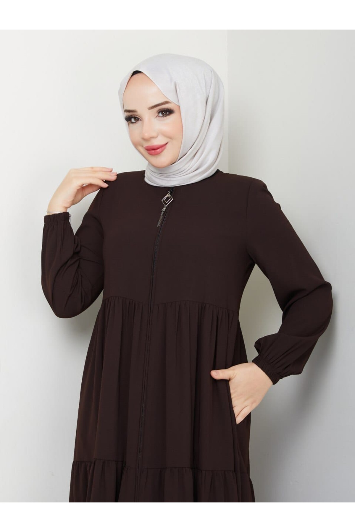 FIRFIR DETAYLI GENÇ TARZ YENİ SEZON RABİA KREP KUMAŞ YAZLIK İNCE FERACE, tesettür modasının en sevilen parçalarından. Vücut hatlarını gizleyen rahat kesimi, yumuşak dokusu ve özenli dikişleriyle konfor ve şıklığı bir arada sunar. Düğün, nişan, bayram veya günlük kullanım için ideal. SG SARİALGİYİM güvencesiyle sunulmaktadır.
