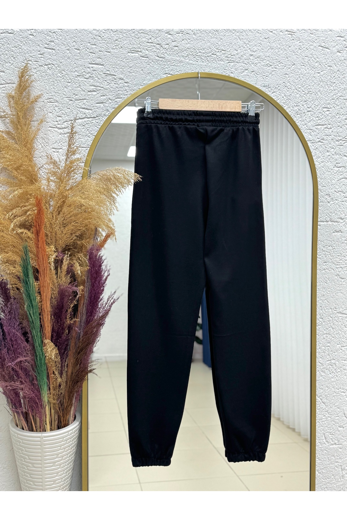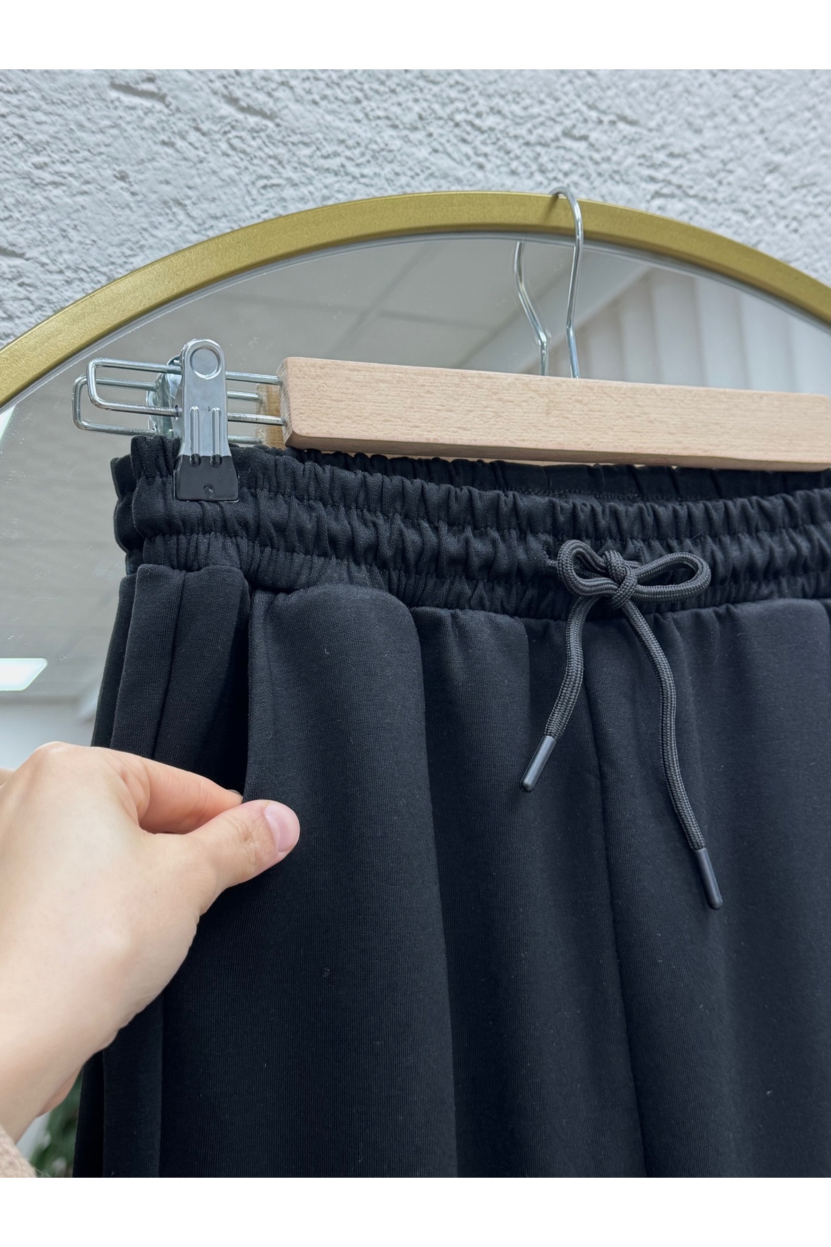 Gavetta Paça Lastikli İki İp Düz Eşofman-Zi4010 Siyah