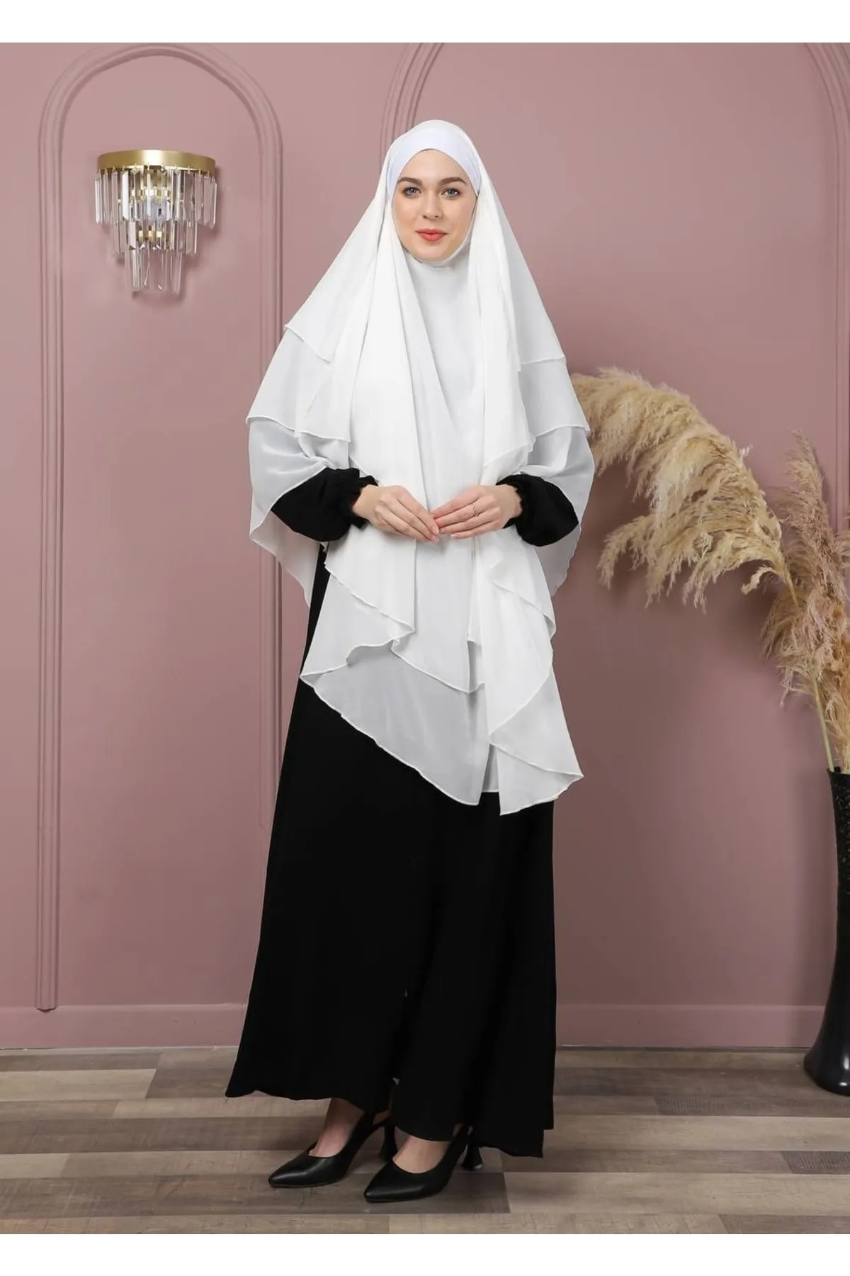 HAZIR BAĞLAMA ÜÇ KATLI ŞİFON HAC UMRE ŞALI SUFLE KHİMAR HİJAB BEYAZ, zengin renk paleti ve şık deseniyle stilinizi yansıtmanın en kolay yolu. İster klasik ister modern tarza sahip olun, bu şal her kıyafetinizle uyum sağlar. Hediye olarak da mükemmel bir tercih. Luna Nueva güvencesiyle sunulmaktadır.