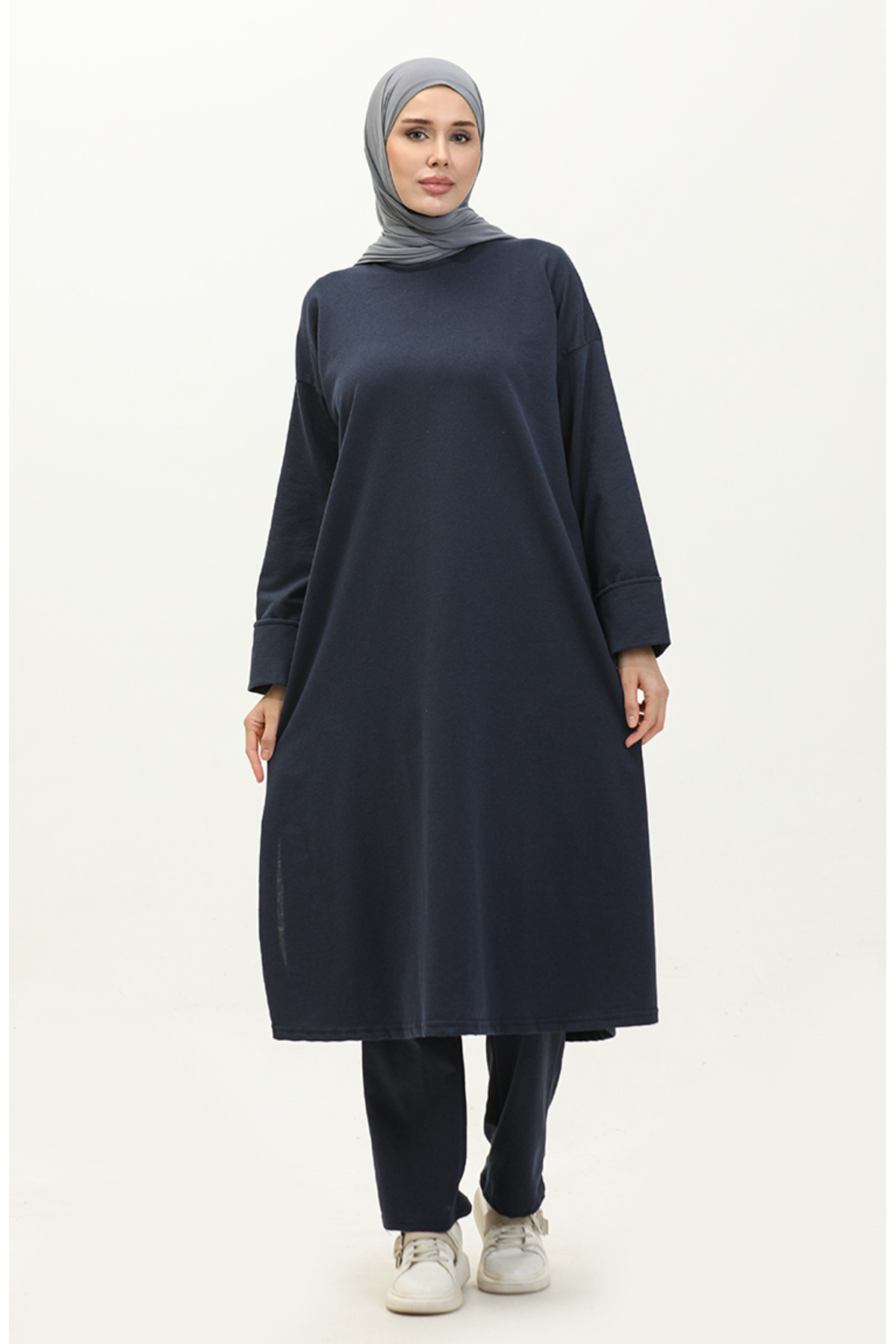 İki İplik Eşofman Takım 3040-01 Lacivert, zarif tasarımı ve kaliteli kumaşıyla günlük ve özel günlerinizde şıklığınızı tamamlayacak bir parça. Rahat kalıbı sayesinde gün boyu konforlu bir kullanım sunar. Tesettüre uygun kesimi ile her yaştan kadının tercih edebileceği şık bir model. sefamerve güvencesiyle sunulmaktadır.