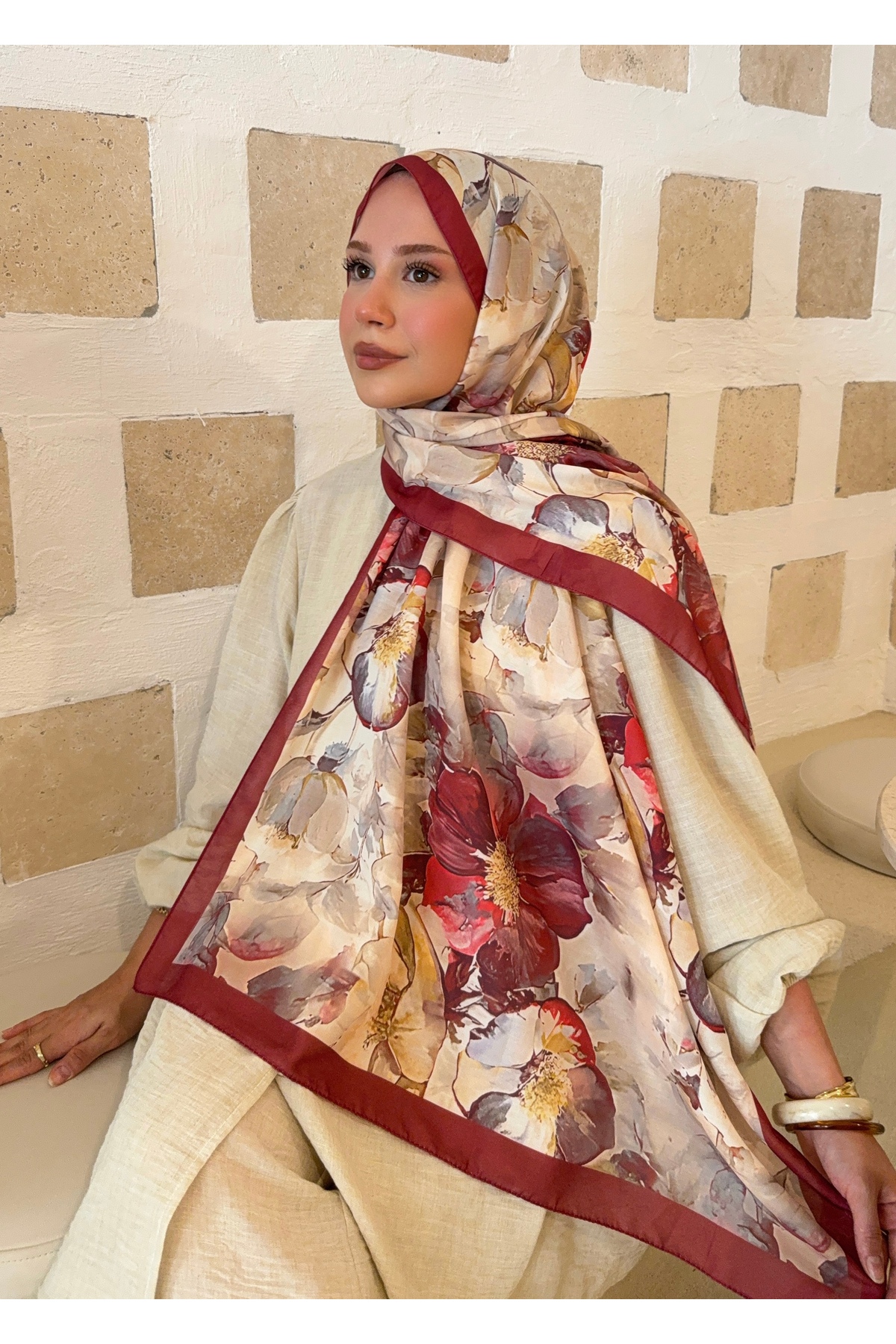 İlham Serisi Yumuşak Pamuklu Etnik Desenli Bordo Kenarlı Şal ps33, özel dokuma tekniğiyle üretilmiş, kalitesini hissedeceğiniz bir şal. Hafif yapısıyla dört mevsim kullanıma uygun olup, farklı bağlama stillerinde harika görünüm sunar. Mira İpek güvencesiyle sunulmaktadır.