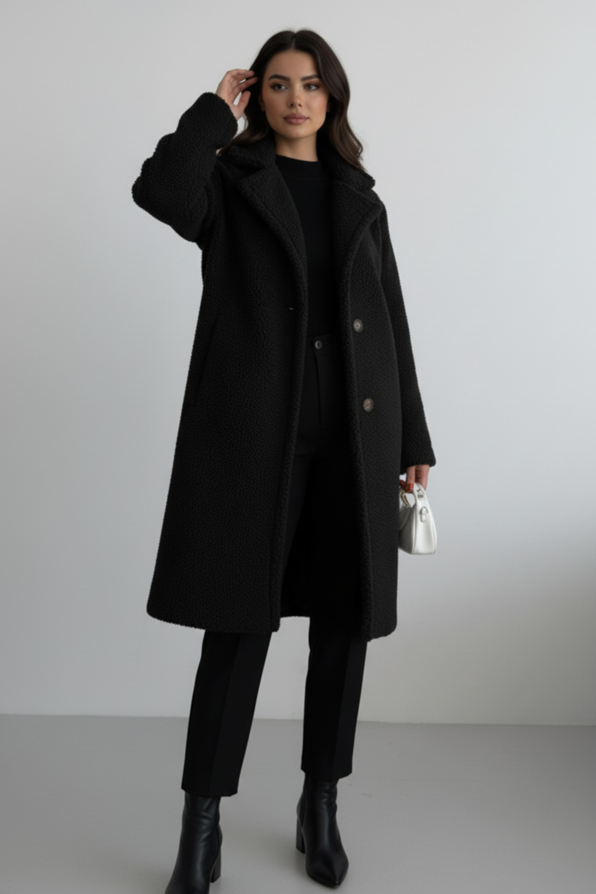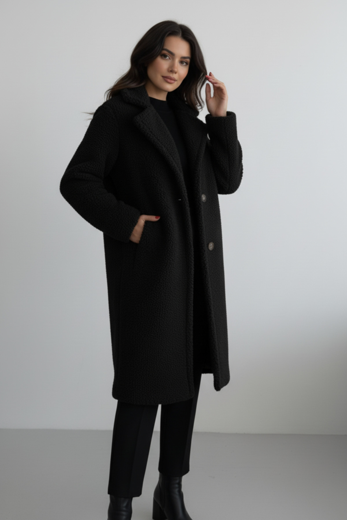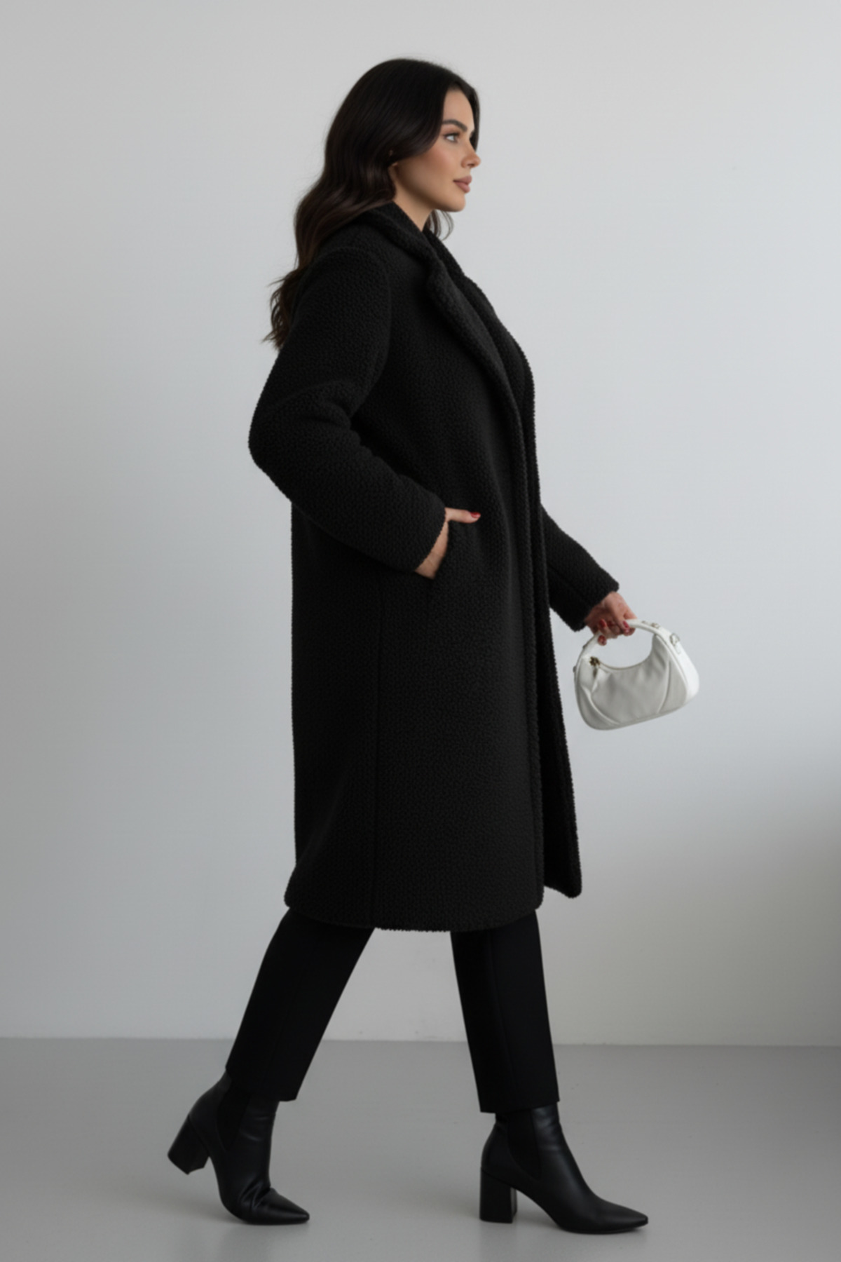 Kadın Astarlı Ceplı Peluş Kışlık Siyah Kaban, özel dikim teknikleriyle üretilmiş, kalitesini her detayda hissedebileceğiniz bir tasarım. Nefes alan kumaş yapısıyla mevsim geçişlerinde ideal bir tercih. Zarif silueti ve ince işçiliğiyle fark yaratacaksınız. ALFUDO Moda Collection güvencesiyle sunulmaktadır.
