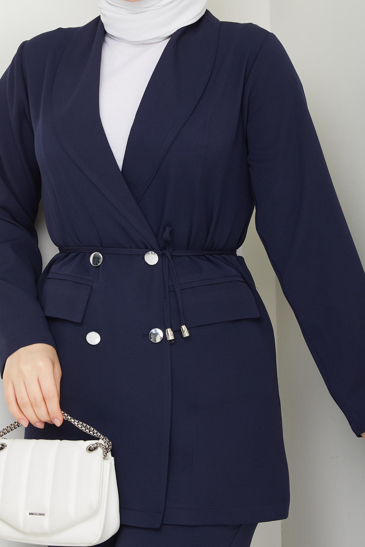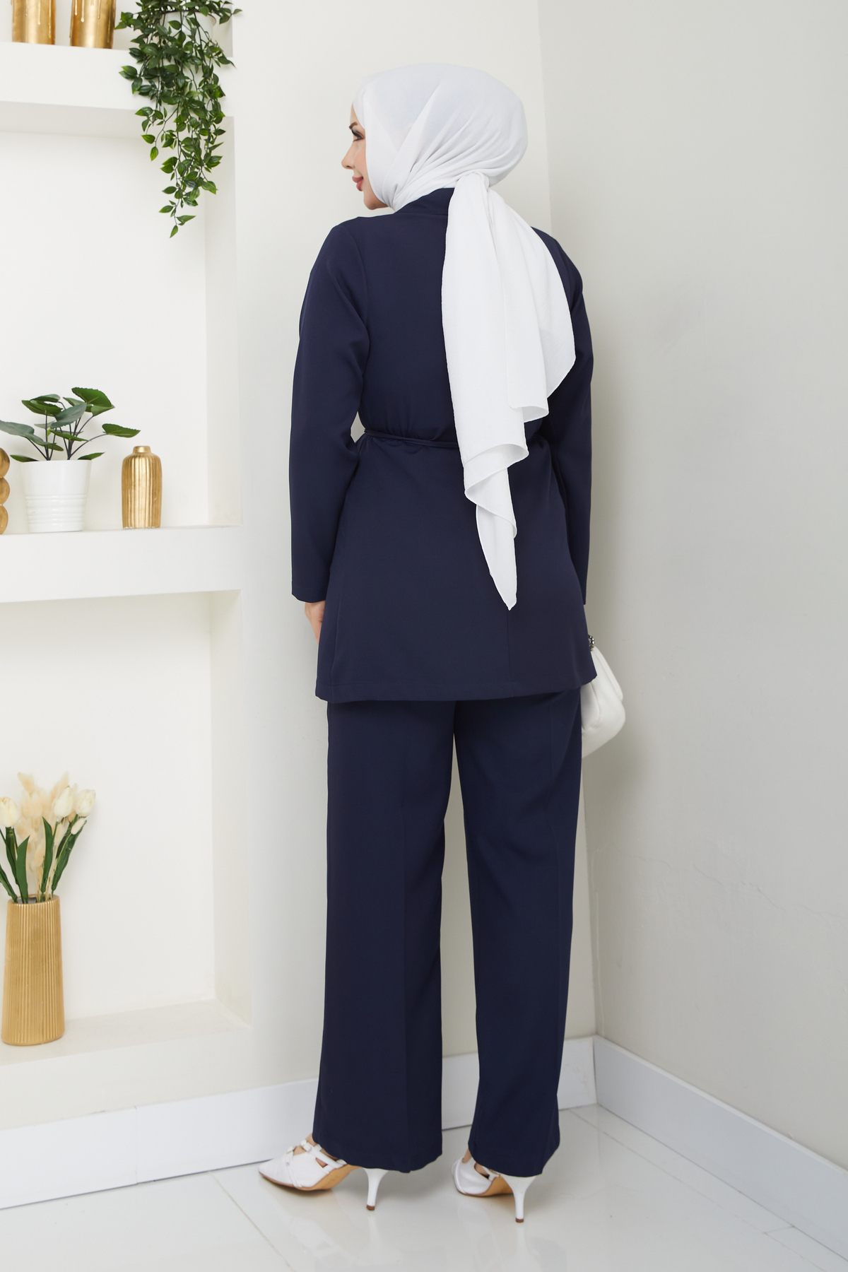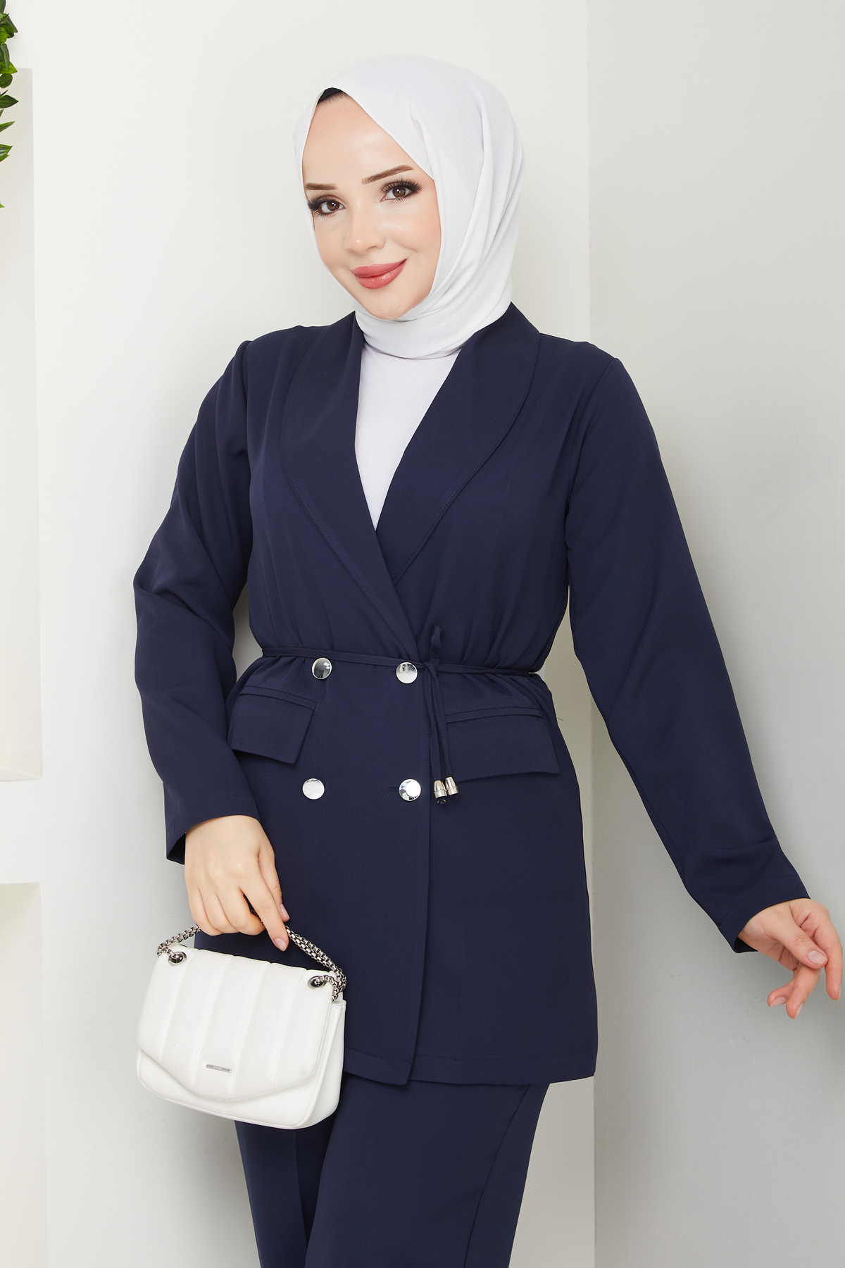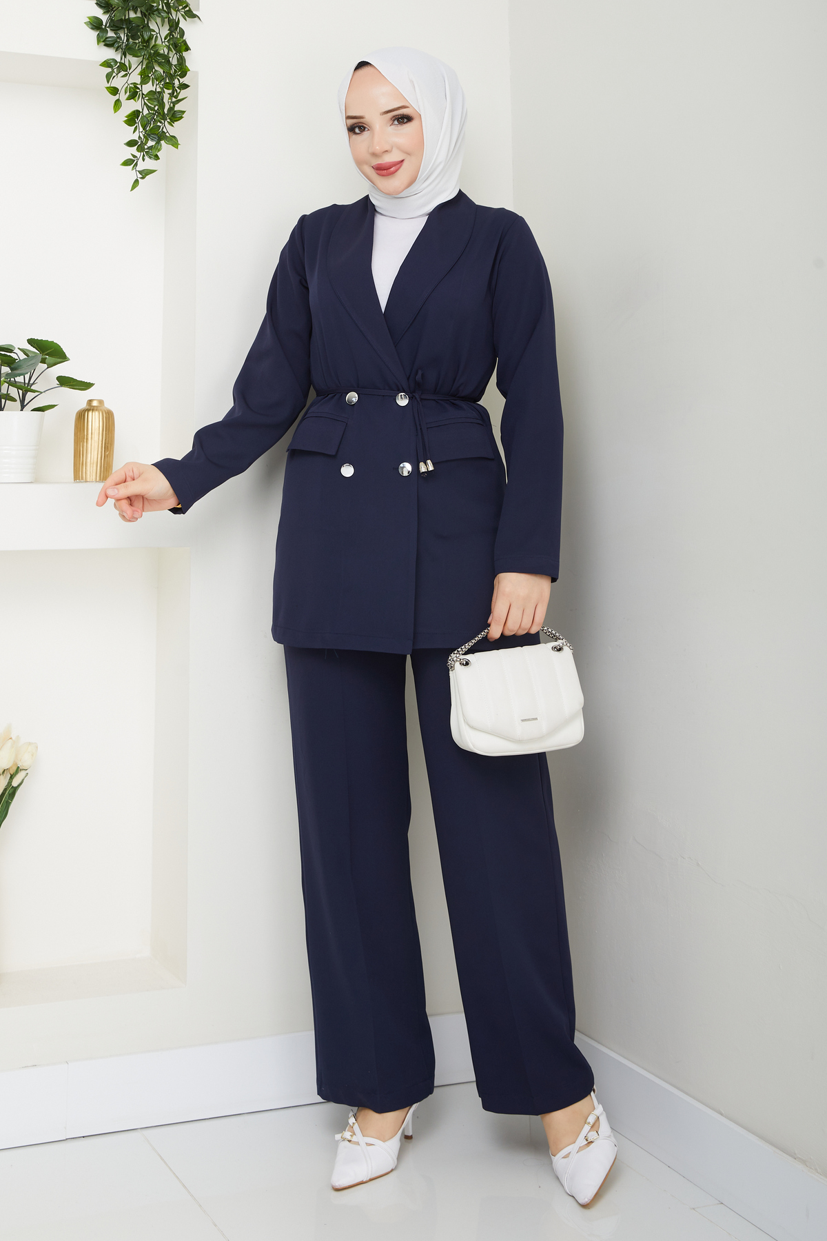 Kadın Bağlamalı Blazer Ceket Pantolonlu Takım, tesettür modasının en sevilen parçalarından. Vücut hatlarını gizleyen rahat kesimi, yumuşak dokusu ve özenli dikişleriyle konfor ve şıklığı bir arada sunar. Düğün, nişan, bayram veya günlük kullanım için ideal. modapark.ist güvencesiyle sunulmaktadır.