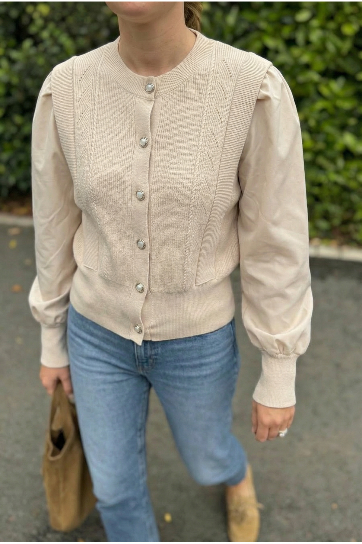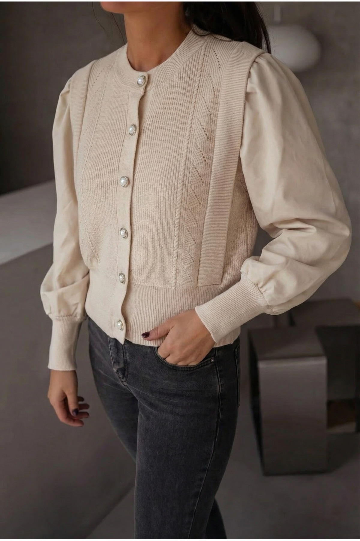 Kadın Bej Bilekleri Triko Kolları Kumaş Düğmeli Triko Hırka, özel dikim teknikleriyle üretilmiş, kalitesini her detayda hissedebileceğiniz bir tasarım. Nefes alan kumaş yapısıyla mevsim geçişlerinde ideal bir tercih. Zarif silueti ve ince işçiliğiyle fark yaratacaksınız. FEMELLE güvencesiyle sunulmaktadır.