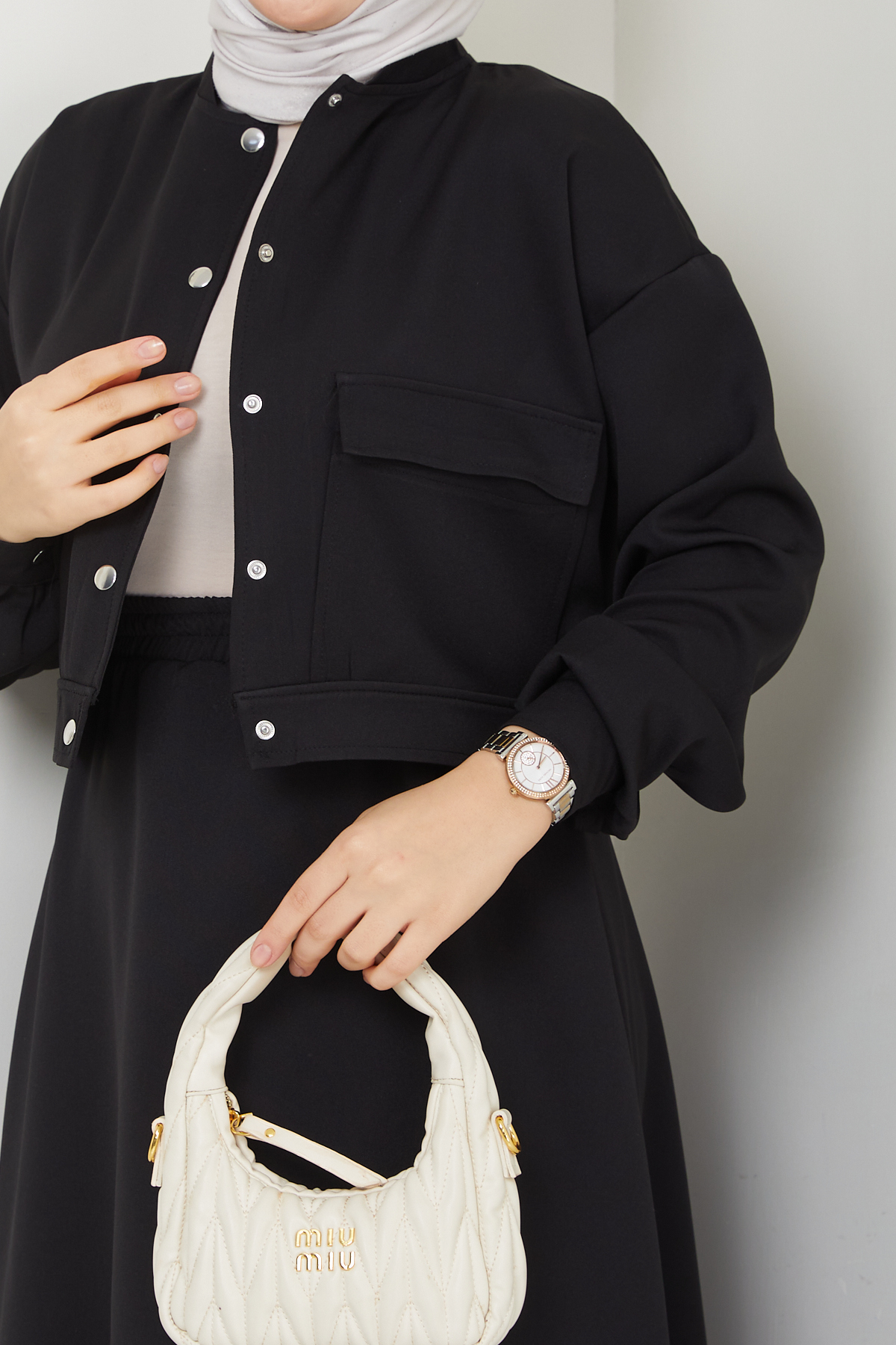 Kadın Çıtçıt Düğmeli Cepli Etekli Takım, özel dikim teknikleriyle üretilmiş, kalitesini her detayda hissedebileceğiniz bir tasarım. Nefes alan kumaş yapısıyla mevsim geçişlerinde ideal bir tercih. Zarif silueti ve ince işçiliğiyle fark yaratacaksınız. modapark.ist güvencesiyle sunulmaktadır.