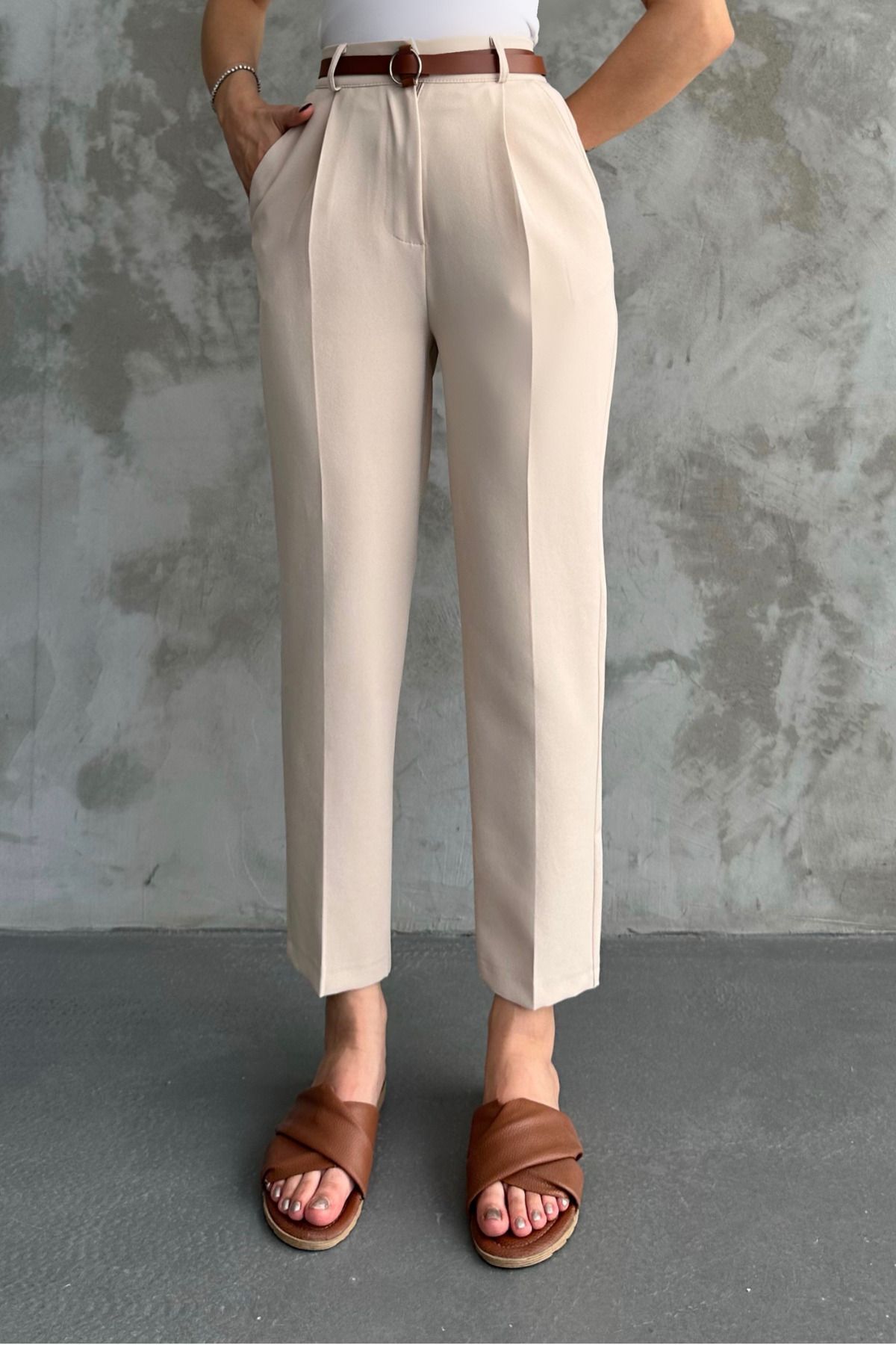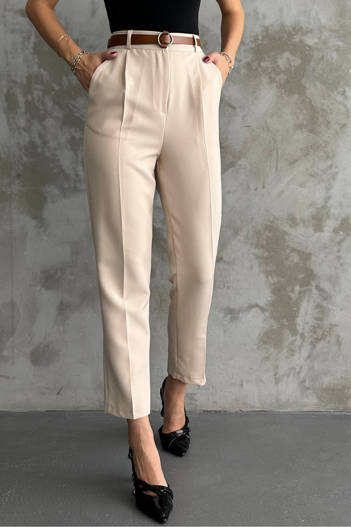Kadın Dar Paça Pileli Kemerli Mevsimlik Kumaş Pantolon Krem, şık tasarımı ve dayanıklı malzemesiyle günlük kullanımdan özel günlere kadar her anınıza eşlik edecek. Detaylı işçiliği ve modern çizgileriyle tarzınızı tamamlayan bir aksesuar. macharel jeans güvencesiyle sunulmaktadır.