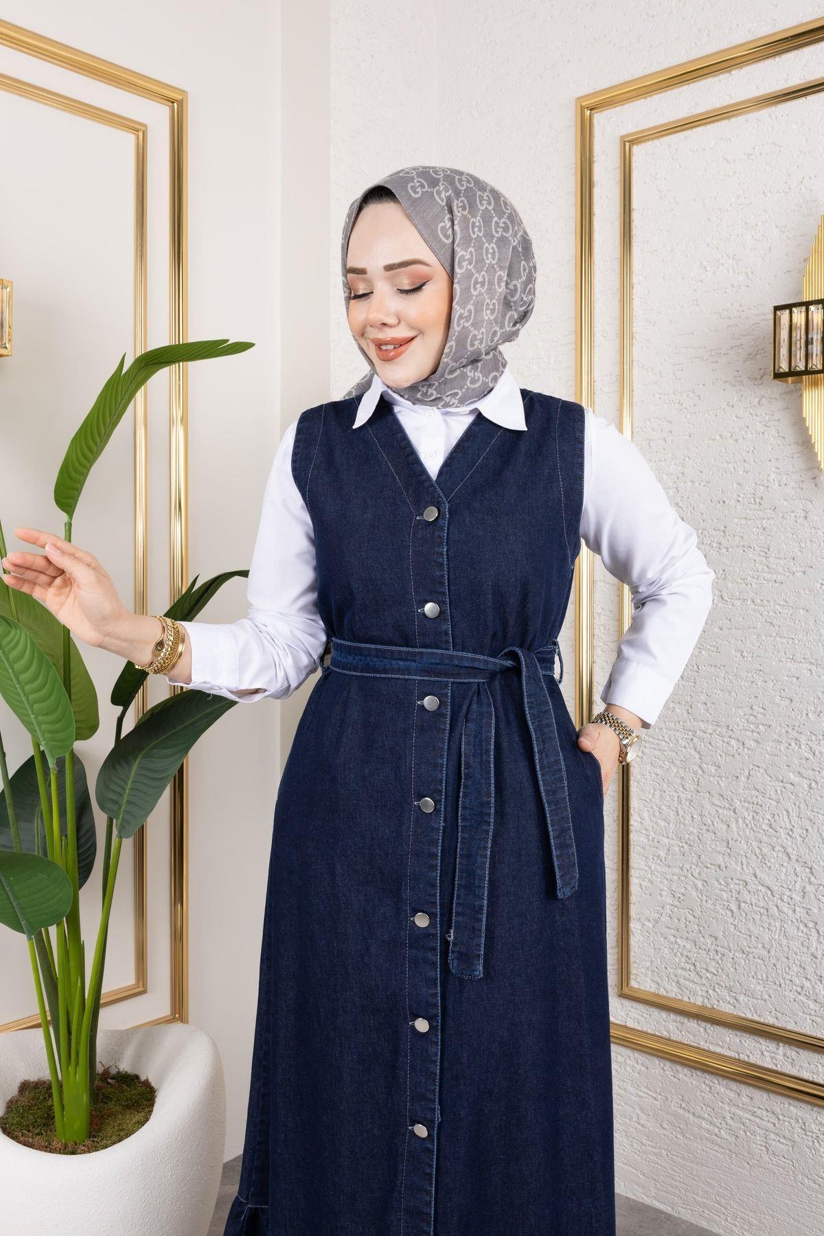 KADIN DÜĞMELİ KUŞAKLI KOT JİLE, tesettür modasının en beğenilen parçalarından biri. Vücut hatlarını gizleyen rahat kesimi, nefes alan kumaşı ve özenli dikişleriyle fark yaratıyor. Günlük kullanımdan özel davetlere kadar her ortamda giyebilirsiniz. HARMAN BUTİK kalite güvencesiyle sizlere sunulmaktadır.