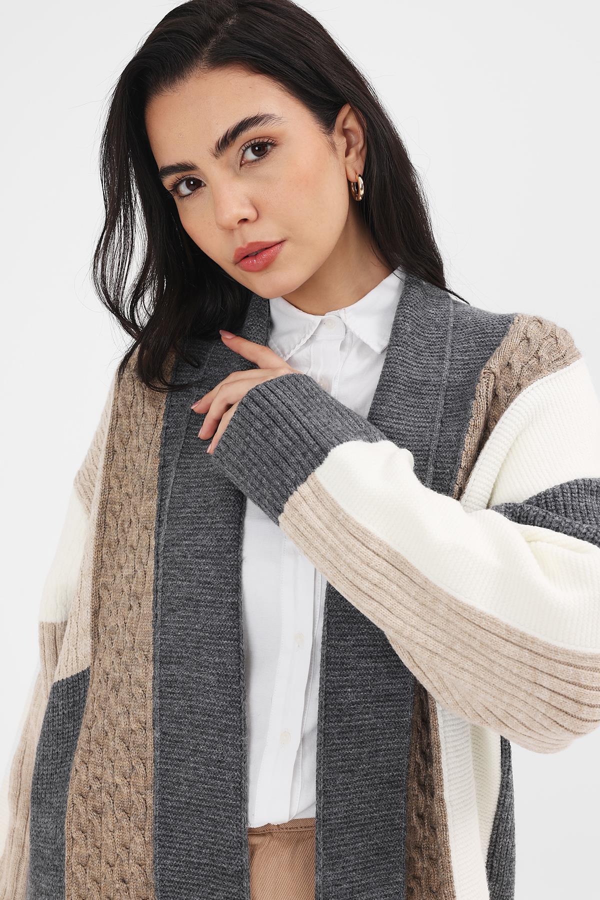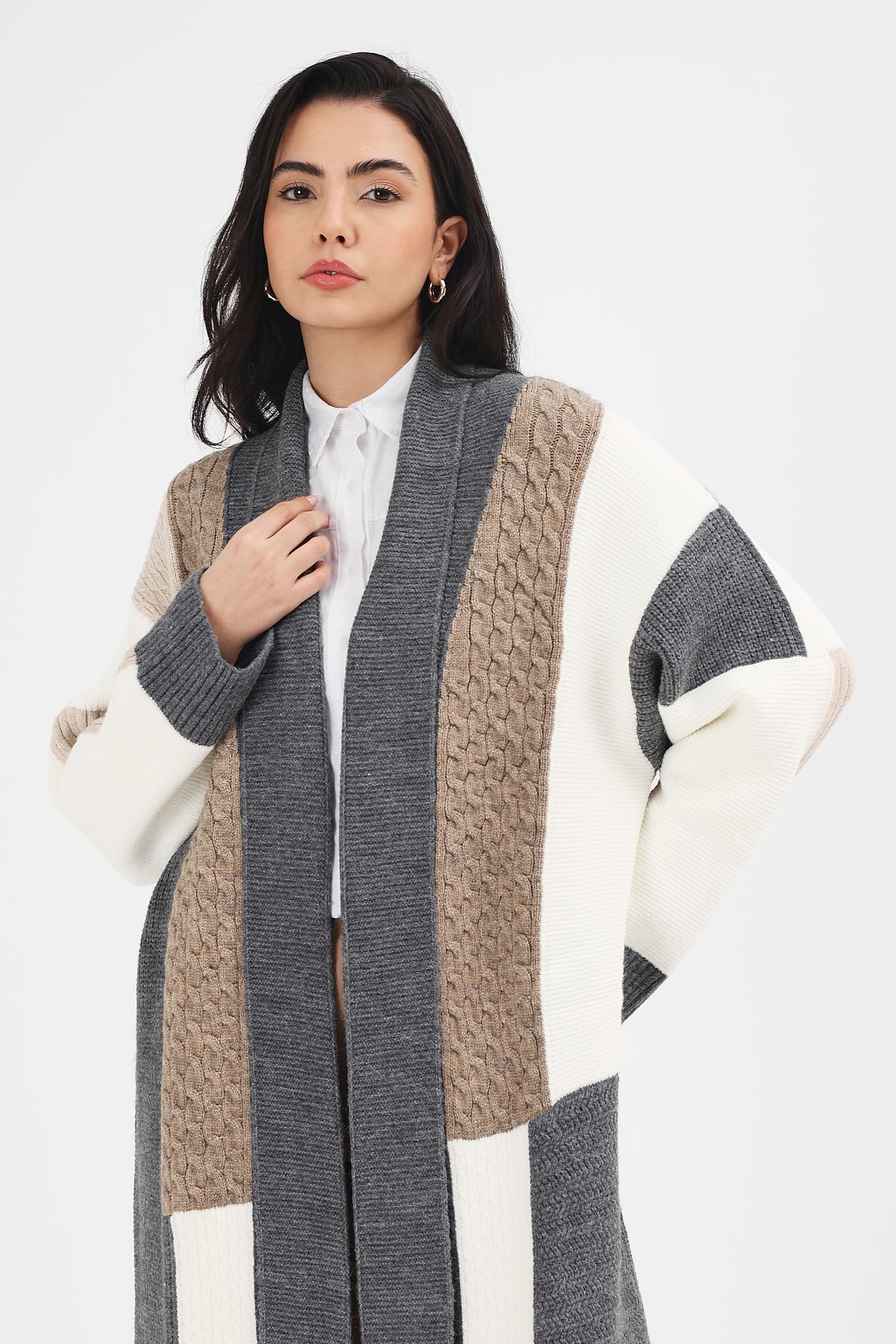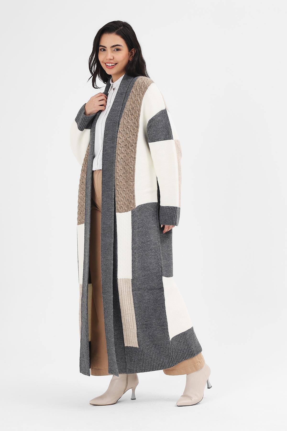 Kadın Füme Patchwork Desenli Kimono, tesettür modasının en sevilen parçalarından. Vücut hatlarını gizleyen rahat kesimi, yumuşak dokusu ve özenli dikişleriyle konfor ve şıklığı bir arada sunar. Düğün, nişan, bayram veya günlük kullanım için ideal. Uludağ Triko güvencesiyle sunulmaktadır.