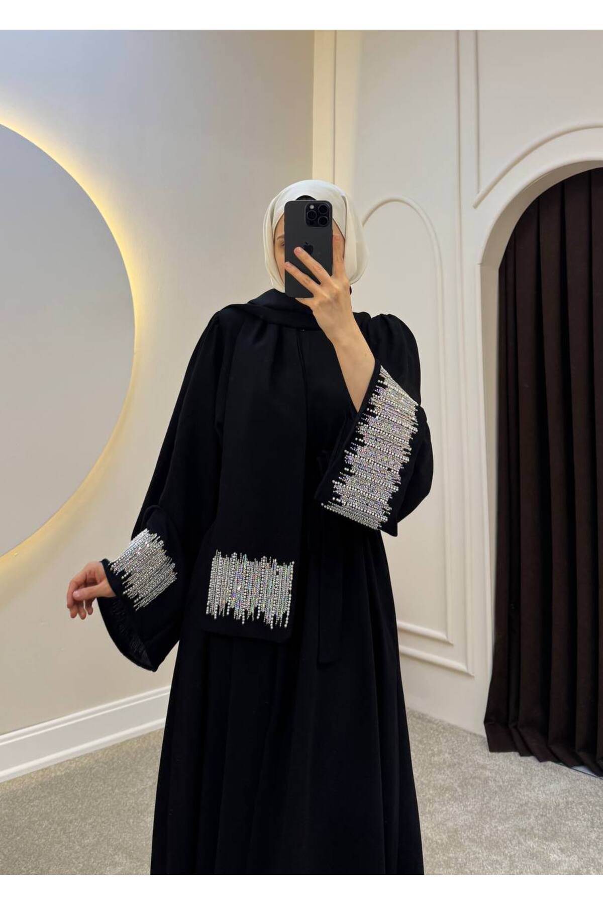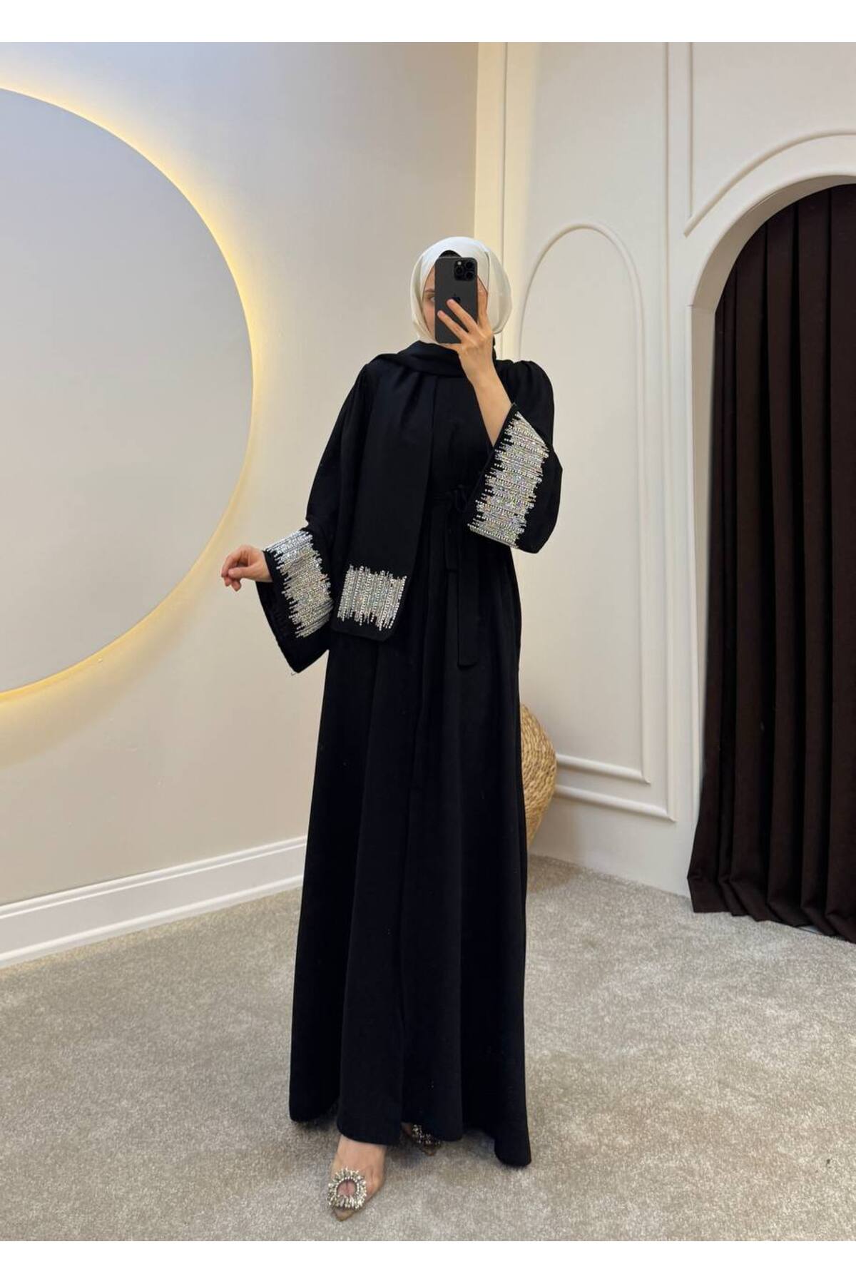 Kadın Uzun Kolları Taş Detaylı Kuşaklı Krep Abaya, zarif tasarımı ve kaliteli kumaşıyla günlük ve özel günlerinizde şıklığınızı tamamlayacak bir parça. Rahat kalıbı sayesinde gün boyu konforlu bir kullanım sunar. Tesettüre uygun kesimi ile her yaştan kadının tercih edebileceği şık bir model. Molly Nelly güvencesiyle sunulmaktadır.