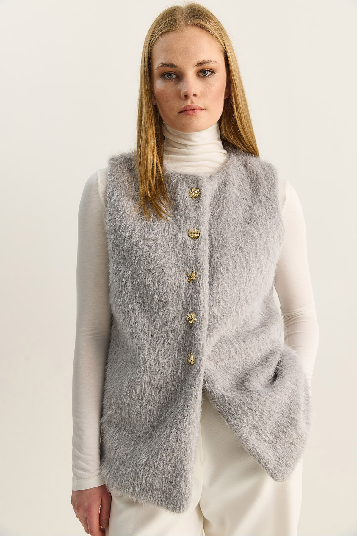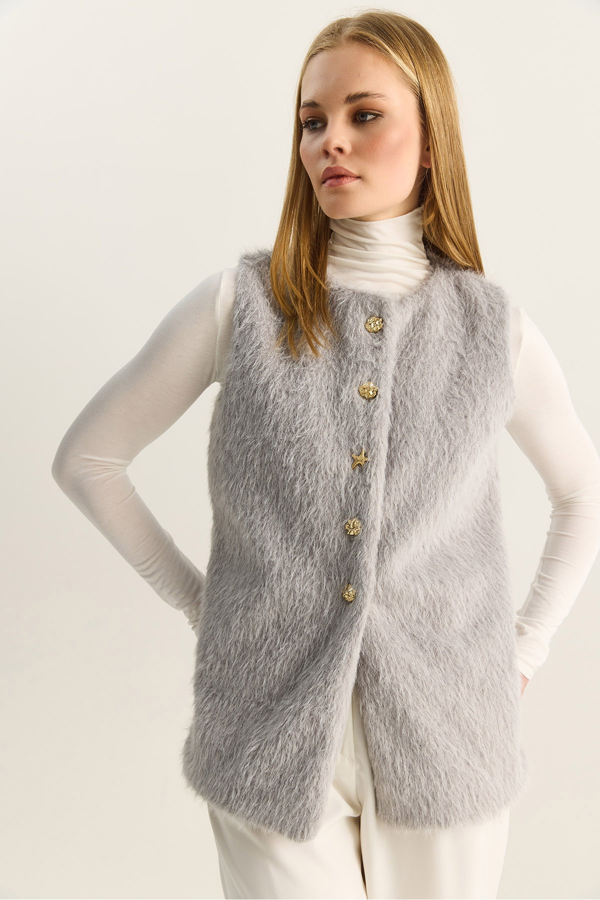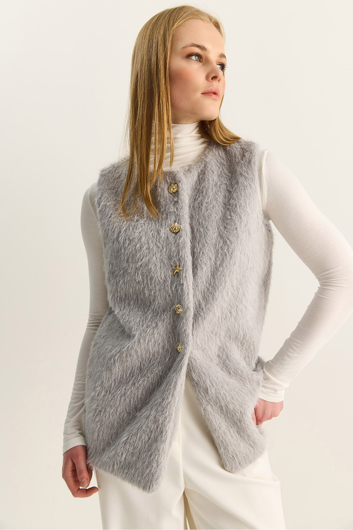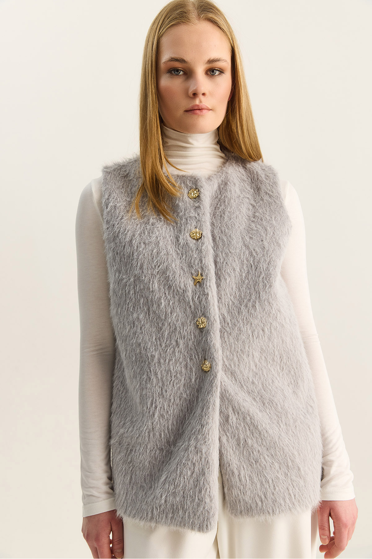 Kadın Yumuşak Dokulu Sakallı Düğme Detaylı Astarlı Yelek 60282043, tesettür modasının en sevilen parçalarından. Vücut hatlarını gizleyen rahat kesimi, yumuşak dokusu ve özenli dikişleriyle konfor ve şıklığı bir arada sunar. Düğün, nişan, bayram veya günlük kullanım için ideal. Bianco Lucci güvencesiyle sunulmaktadır.
