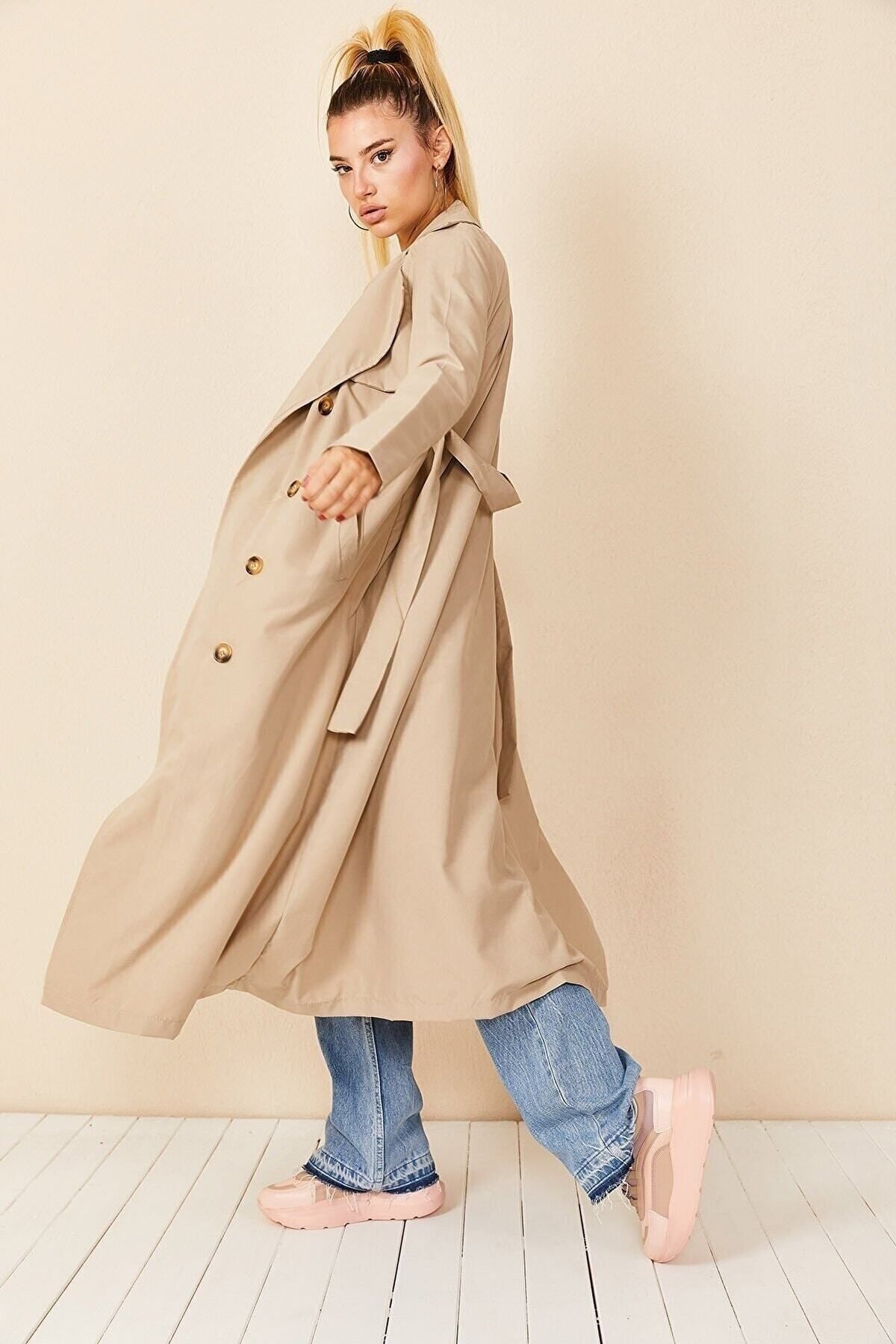 Kruvaze Yaka Trençkot, tesettür modasının en sevilen parçalarından. Vücut hatlarını gizleyen rahat kesimi, yumuşak dokusu ve özenli dikişleriyle konfor ve şıklığı bir arada sunar. Düğün, nişan, bayram veya günlük kullanım için ideal. HAKKE güvencesiyle sunulmaktadır.