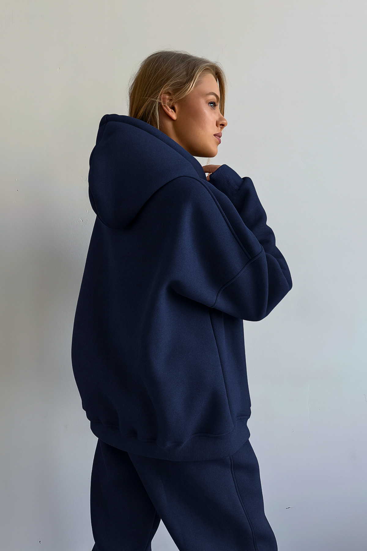 Lacivert Unisex Yumuşak Kumaş Oversize Fit Kapüşonlu Sweatshirt İçi Polarlı Kapüşonlu Sweatshirt, modern çizgileri ve sofistike detaylarıyla gardırobunuzun vazgeçilmezi olacak. Özenle seçilmiş kumaşı vücutta rahat durur ve hareket özgürlüğü sağlar. Farklı kombinlerle hem günlük hem de davet stilinizi oluşturabilirsiniz. GUARAZ güvencesiyle sunulmaktadır.