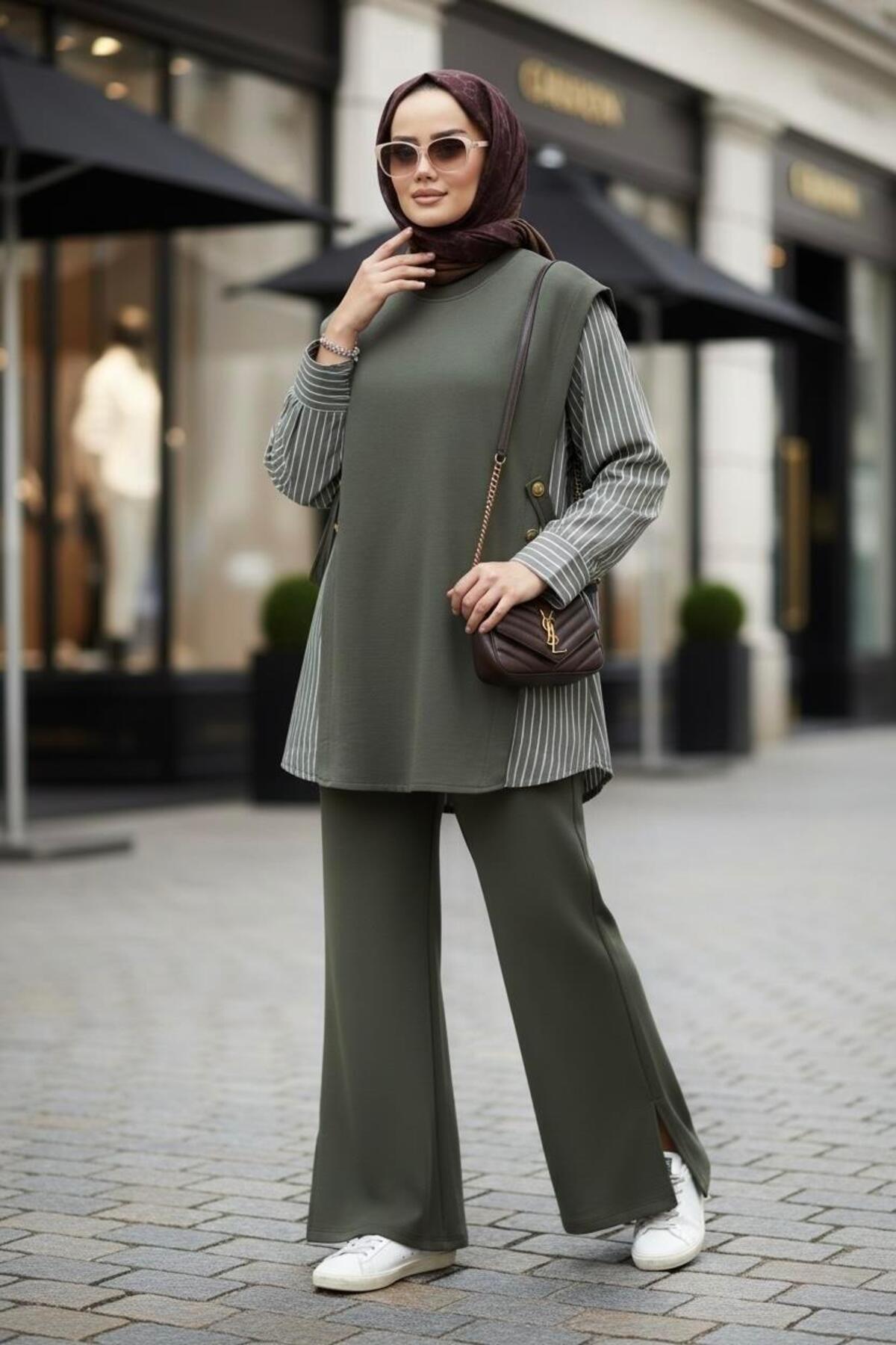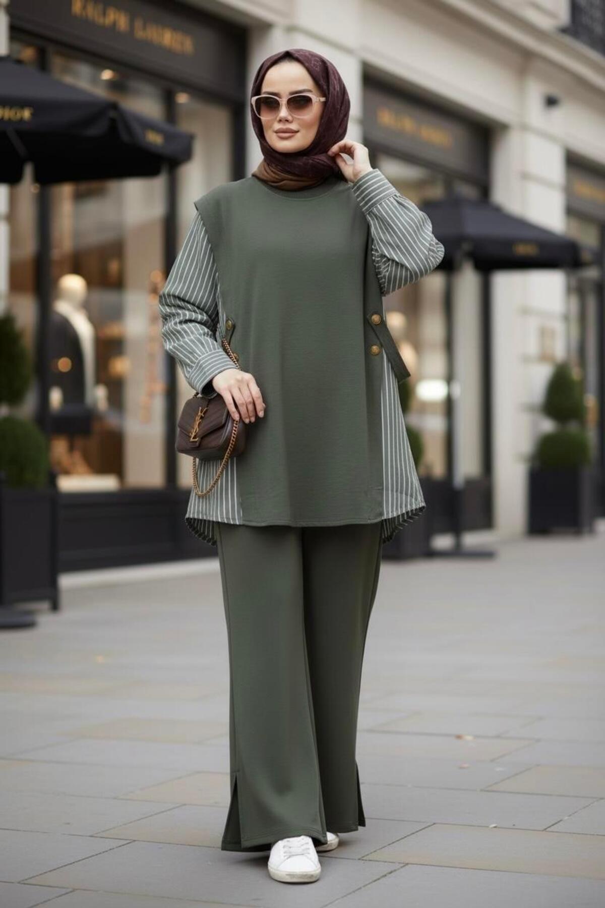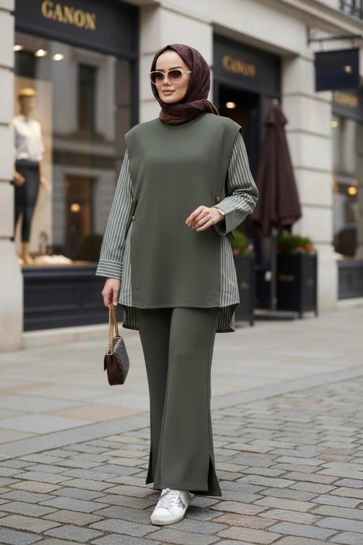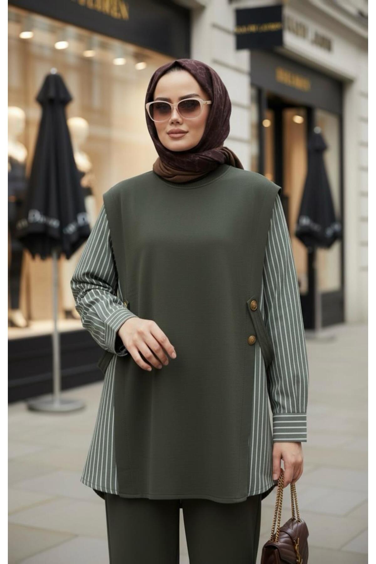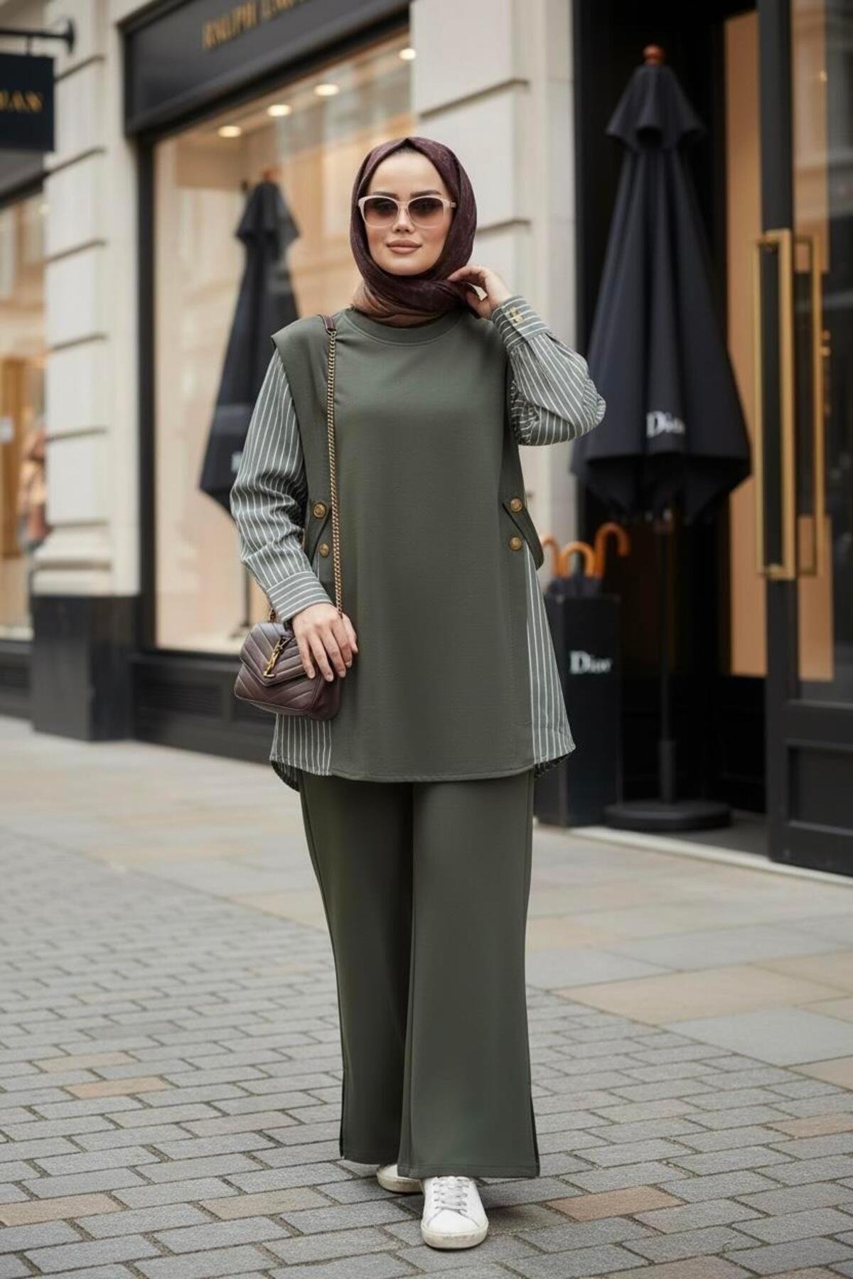 Liora Kadın Tesettür İkili Takım – Pamuklu İki İplik Gömlek Detaylı- Hakiyeşil, zarif tasarımı ve kaliteli kumaşıyla günlük ve özel günlerinizde şıklığınızı tamamlayacak bir parça. Rahat kalıbı sayesinde gün boyu konforlu bir kullanım sunar. Tesettüre uygun kesimi ile her yaştan kadının tercih edebileceği şık bir model. Aselim Hijap Moda güvencesiyle sunulmaktadır.