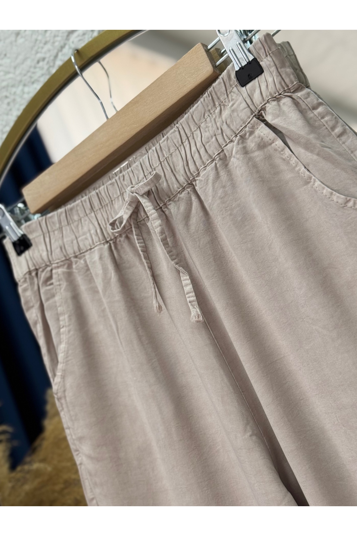 Lunora Beli Lastikli Bol Paça Pantolon-MA3204 Taş