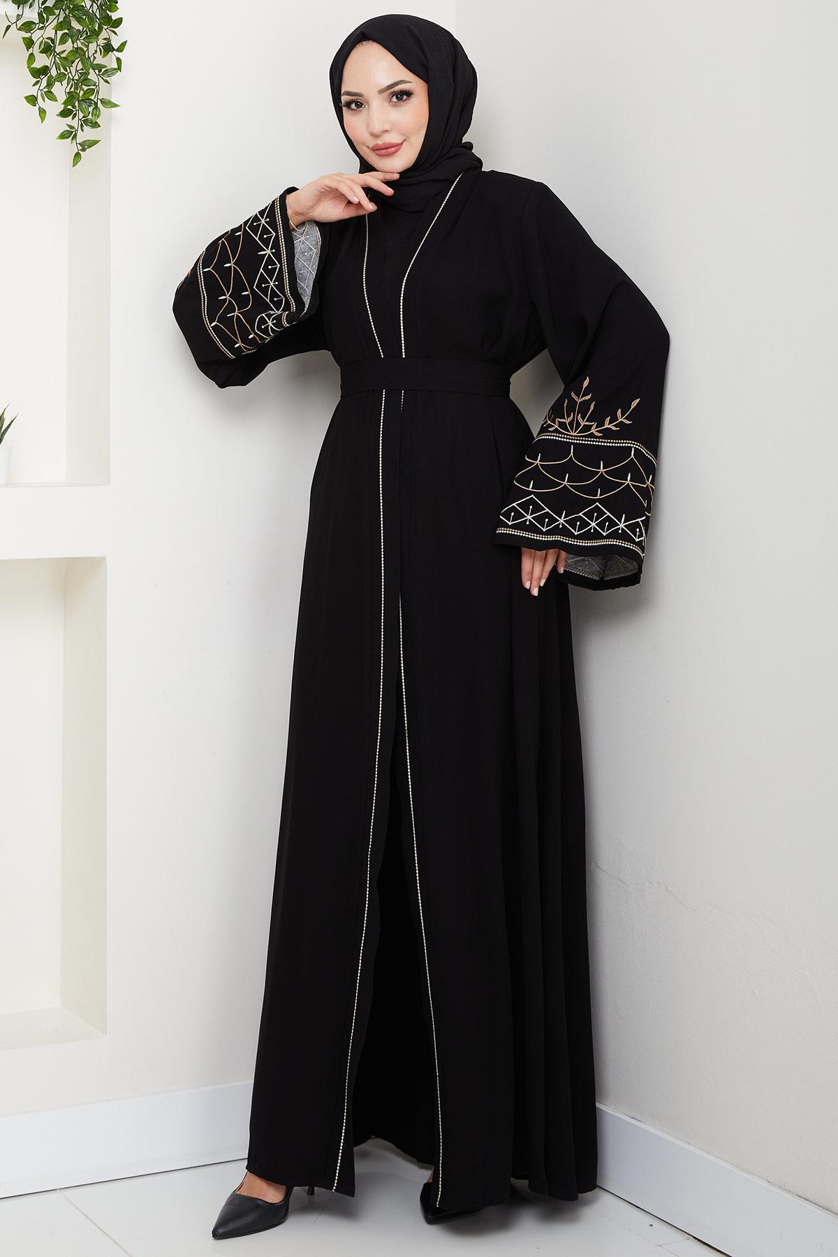 Nakışlı Kuşaklı Abaya Siyah HM2852, tesettür modasının en sevilen parçalarından. Vücut hatlarını gizleyen rahat kesimi, yumuşak dokusu ve özenli dikişleriyle konfor ve şıklığı bir arada sunar. Düğün, nişan, bayram veya günlük kullanım için ideal. hafsamina güvencesiyle sunulmaktadır.