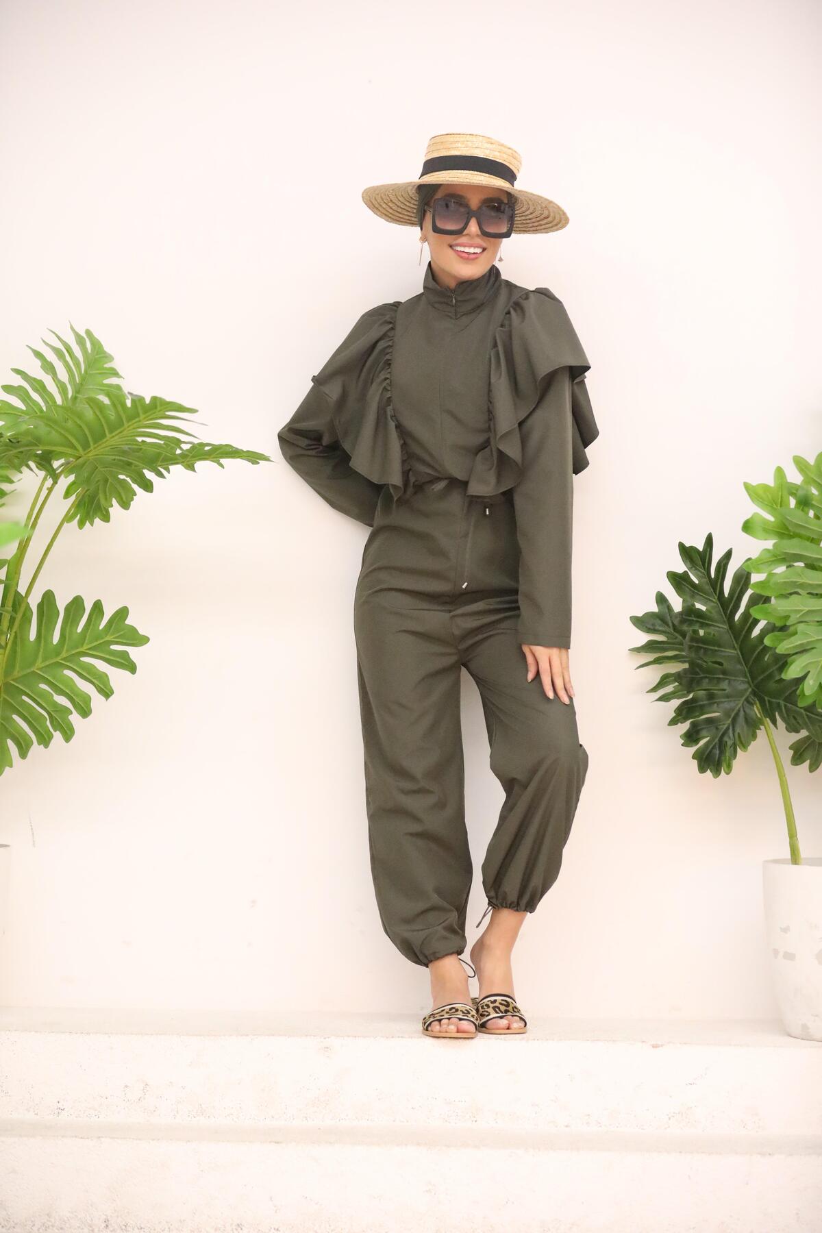 Omuzu Farbelalı Haki Tasarım Tesettür Paraşüt Kumaş Tulum Mayo, özel dikim teknikleriyle üretilmiş, kalitesini her detayda hissedebileceğiniz bir tasarım. Nefes alan kumaş yapısıyla mevsim geçişlerinde ideal bir tercih. Zarif silueti ve ince işçiliğiyle fark yaratacaksınız. NS TASARIM MAYO güvencesiyle sunulmaktadır.
