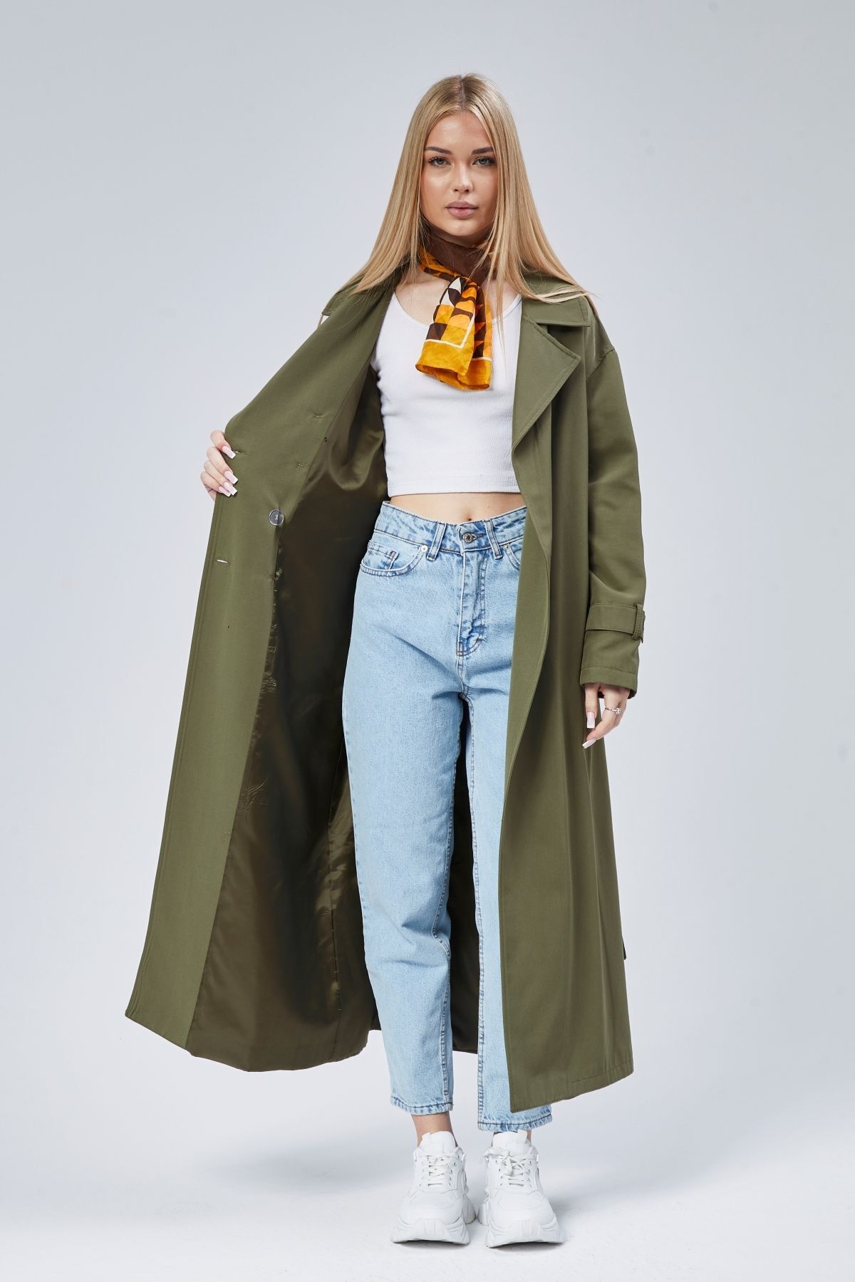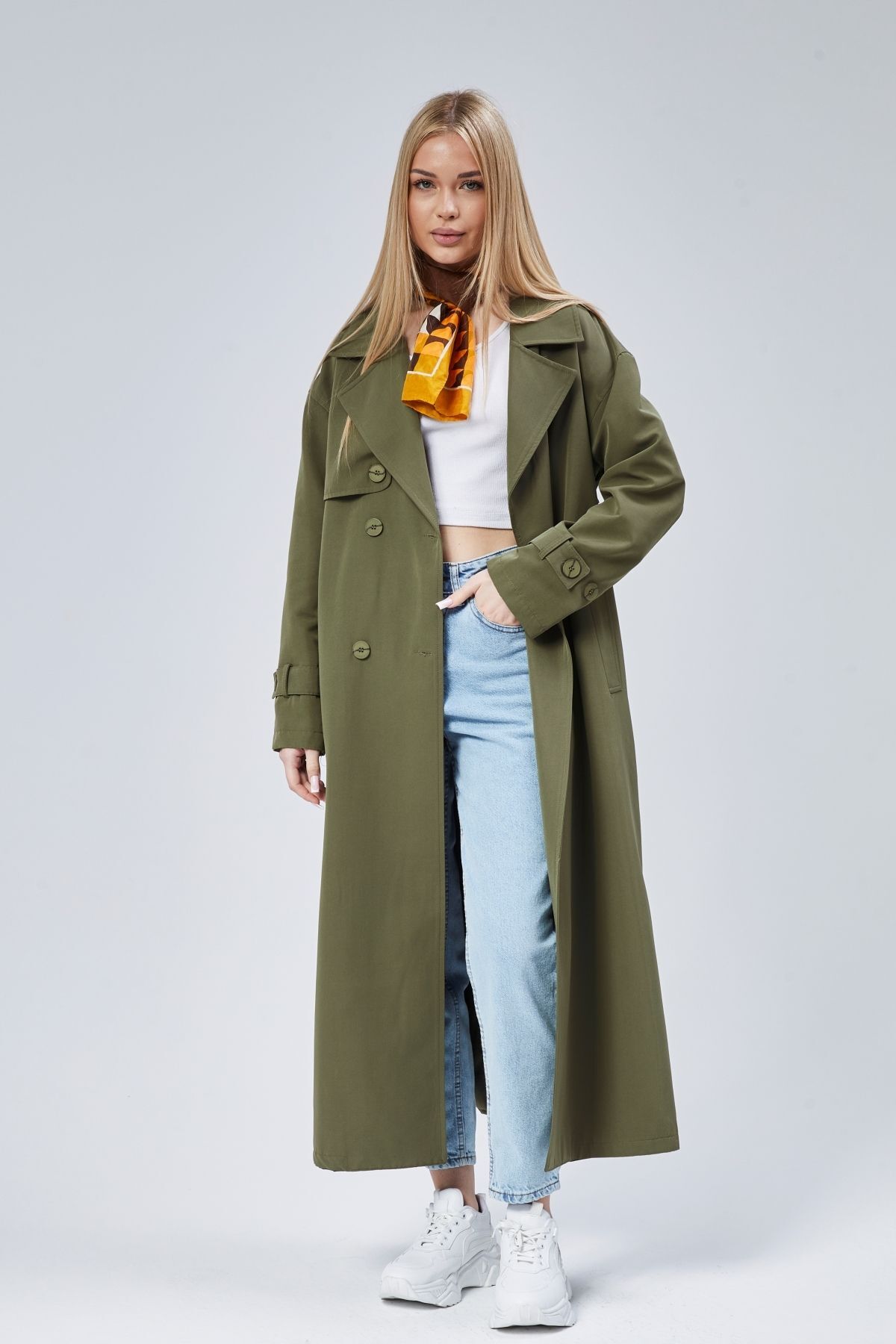 Oversize Rüzgarlık Detaylı Trençkot, modern çizgileri ve sofistike detaylarıyla gardırobunuzun vazgeçilmezi olacak. Özenle seçilmiş kumaşı vücutta rahat durur ve hareket özgürlüğü sağlar. Farklı kombinlerle hem günlük hem de davet stilinizi oluşturabilirsiniz. Bolivente güvencesiyle sunulmaktadır.