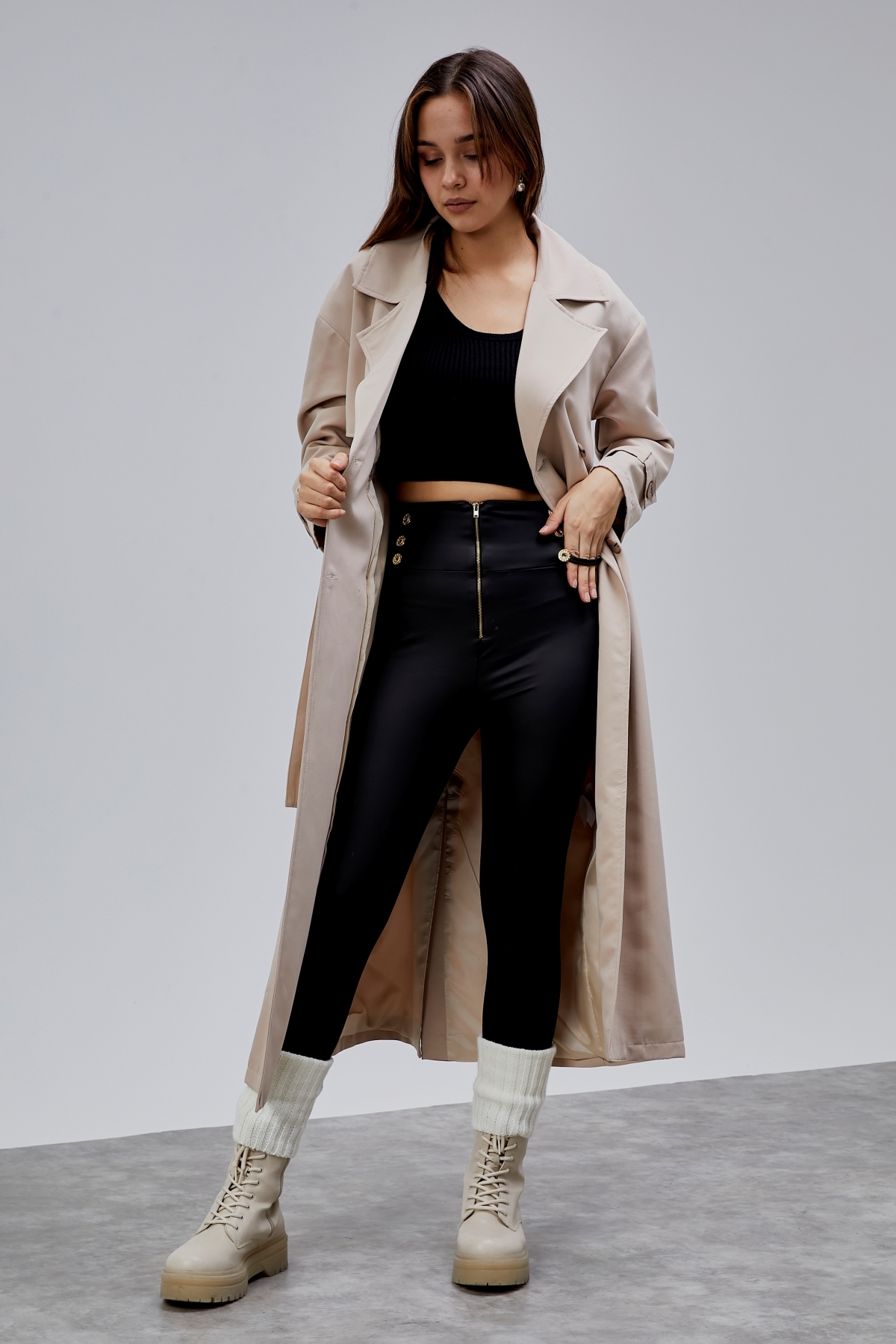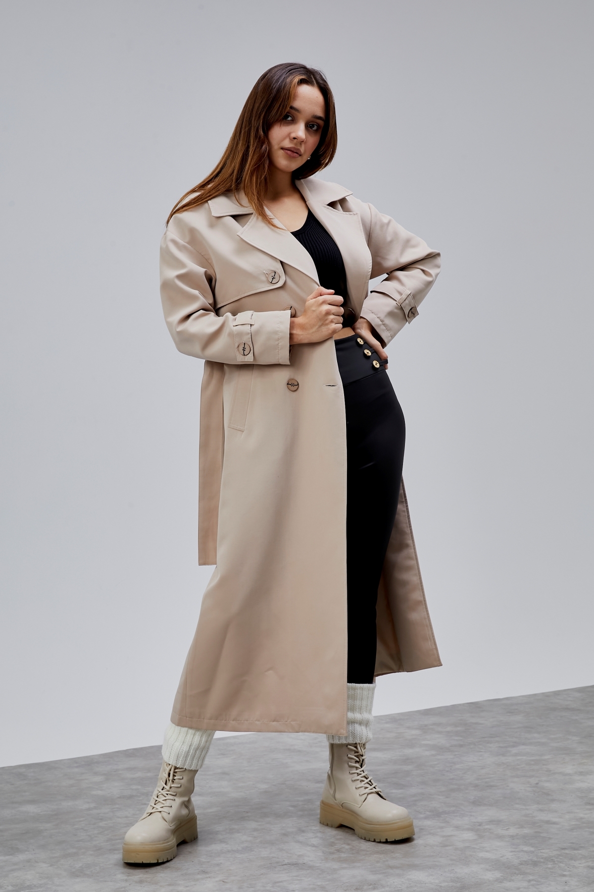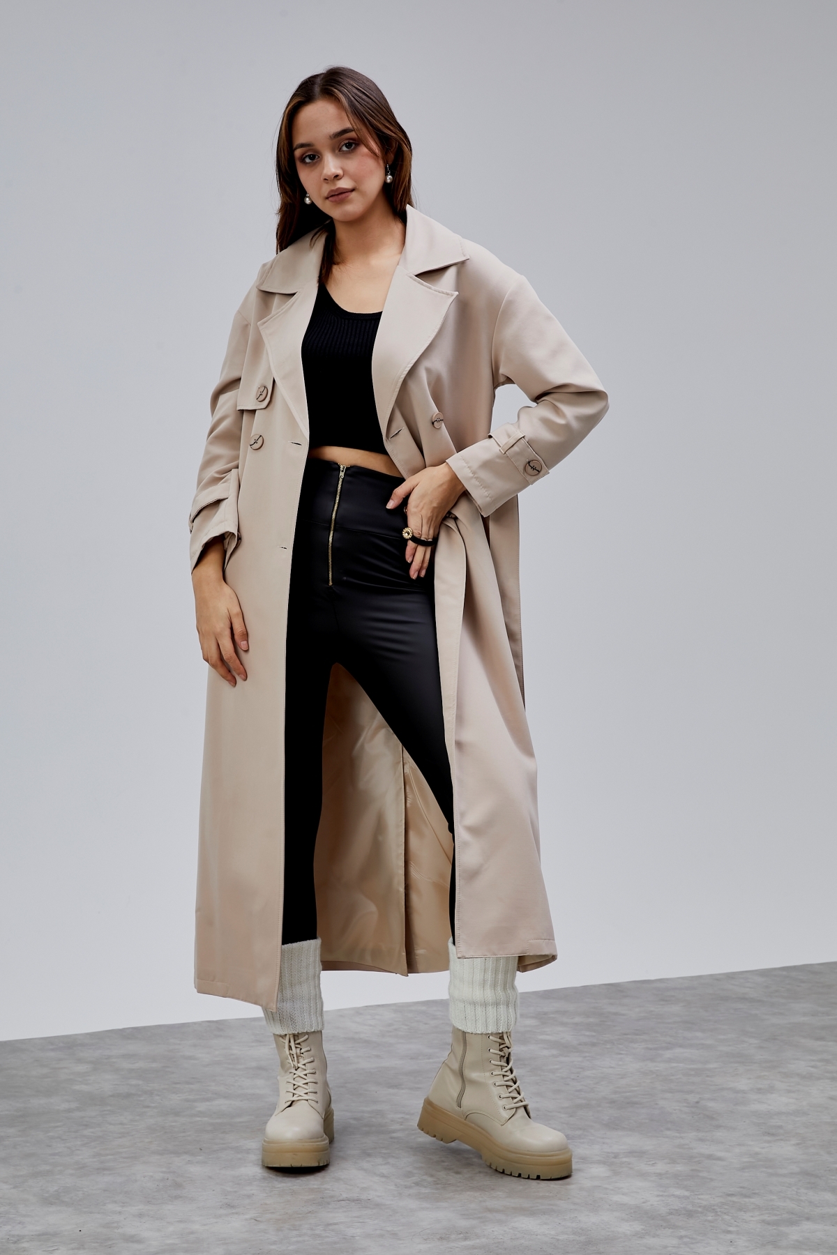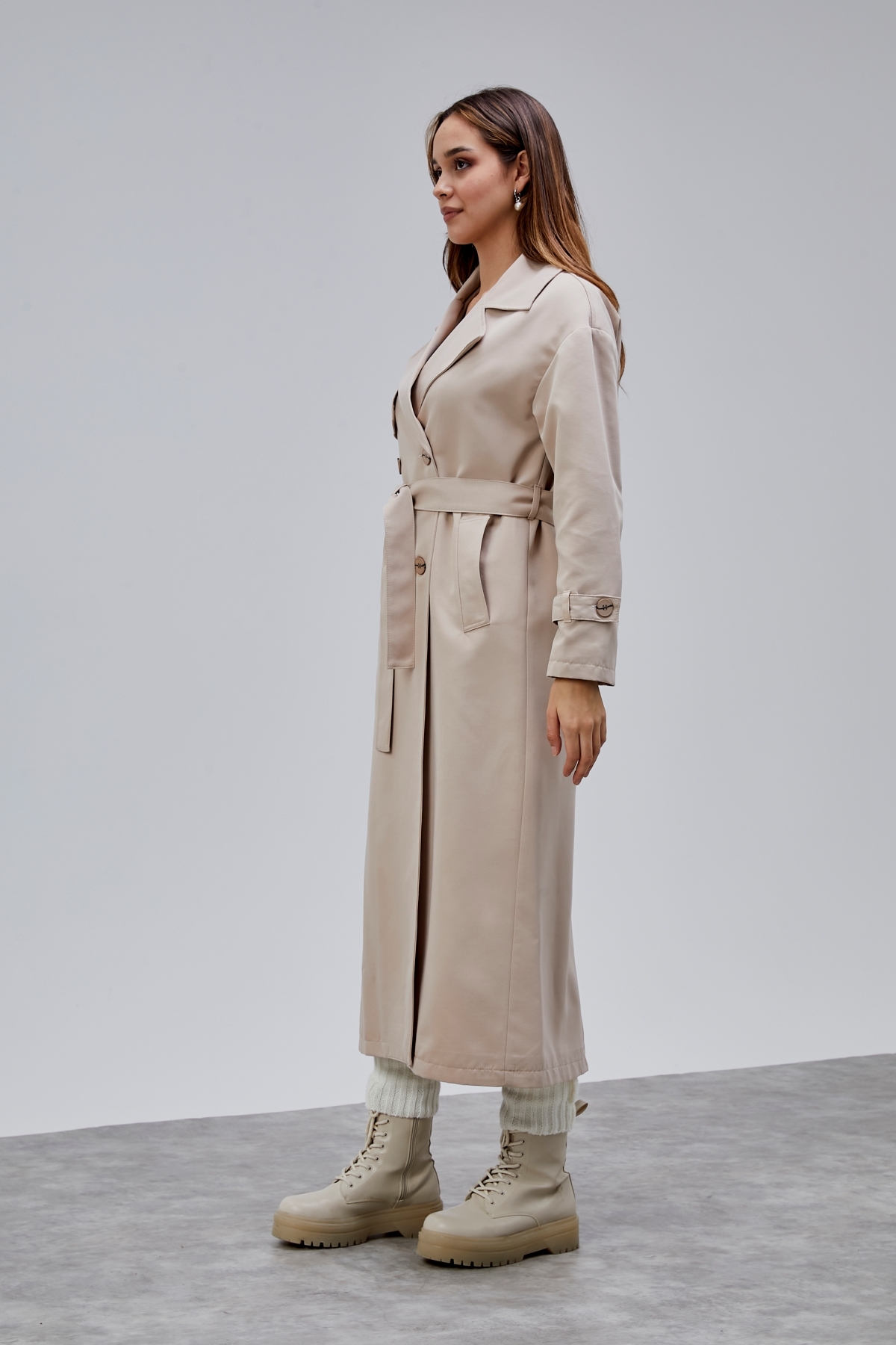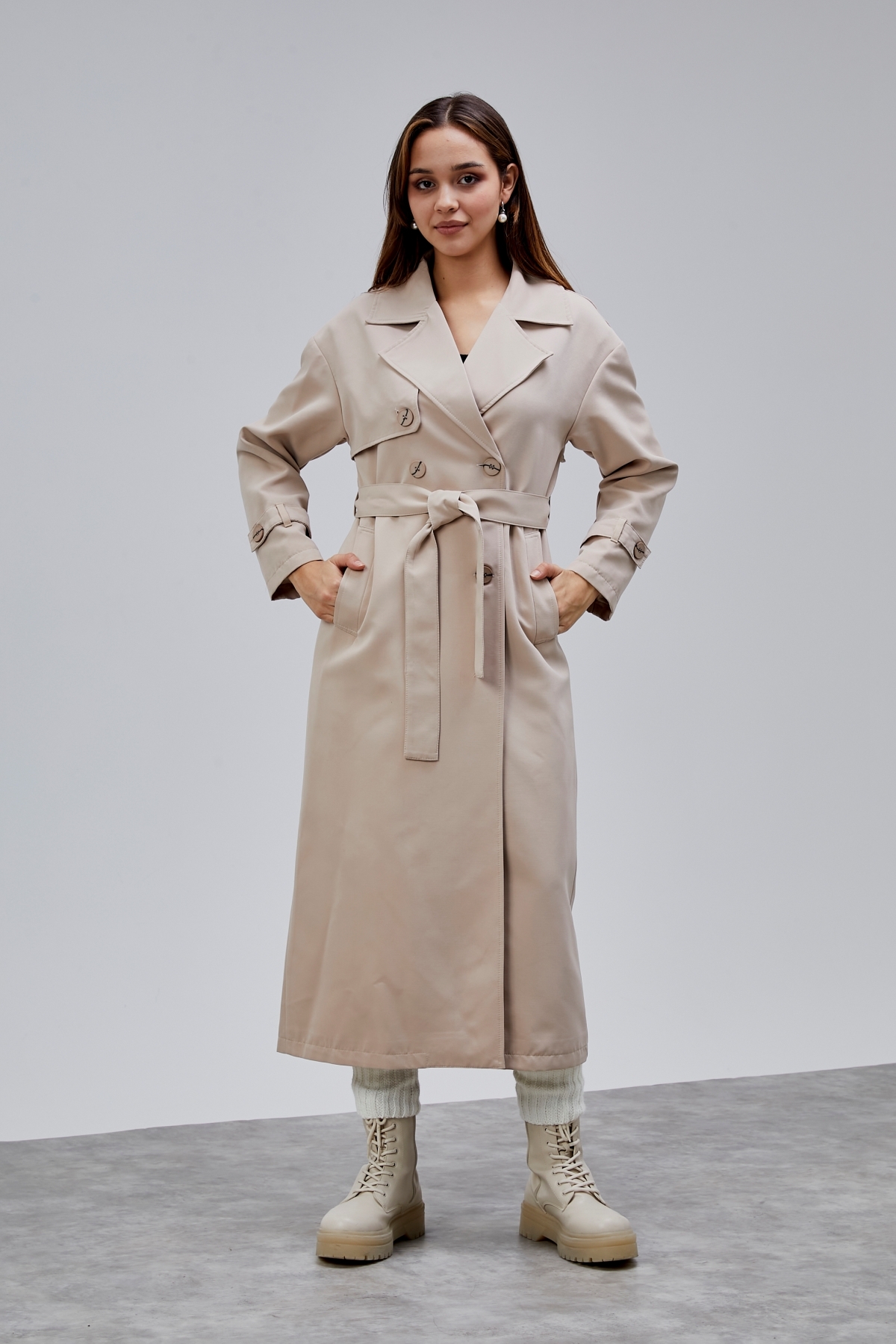 Oversize Rüzgarlık Detaylı Trençkot, zarif tasarımı ve kaliteli kumaşıyla günlük ve özel günlerinizde şıklığınızı tamamlayacak bir parça. Rahat kalıbı sayesinde gün boyu konforlu bir kullanım sunar. Tesettüre uygun kesimi ile her yaştan kadının tercih edebileceği şık bir model. Bolivente güvencesiyle sunulmaktadır.